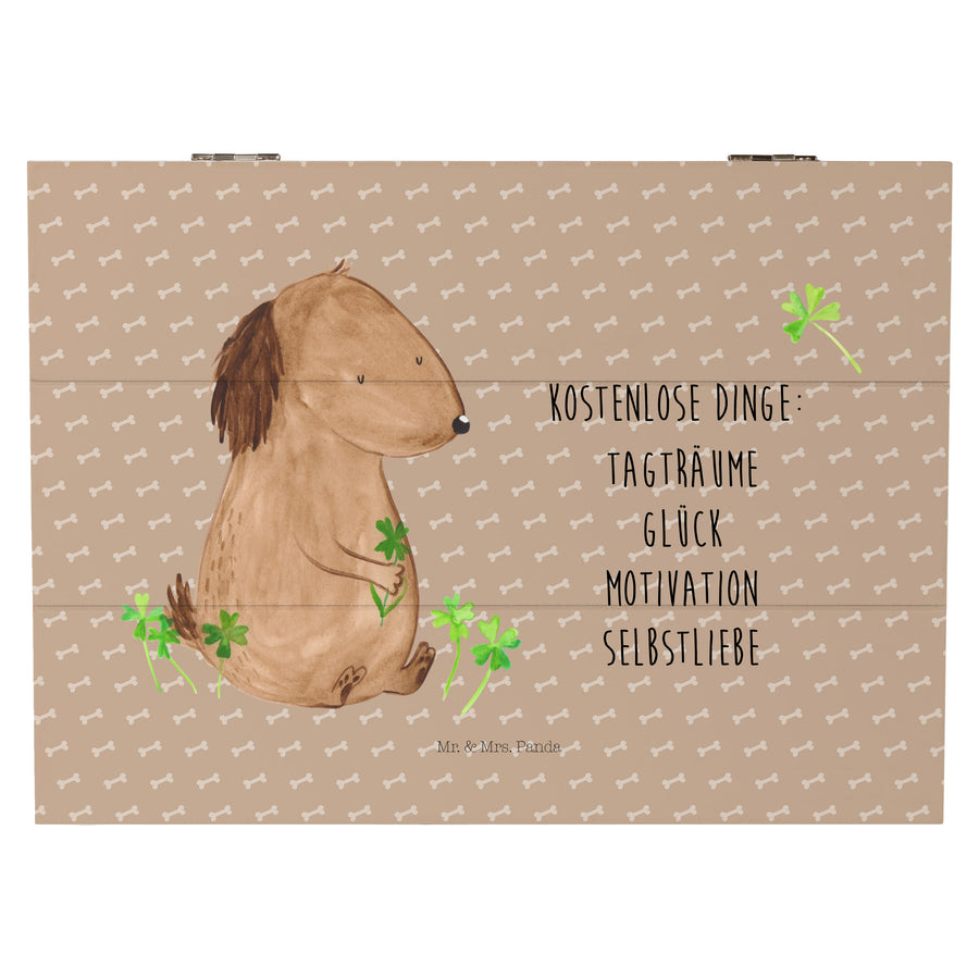 Holzkiste Hund Kleeblatt - 25 x 18 cm - mit Spruch - Hundeglück