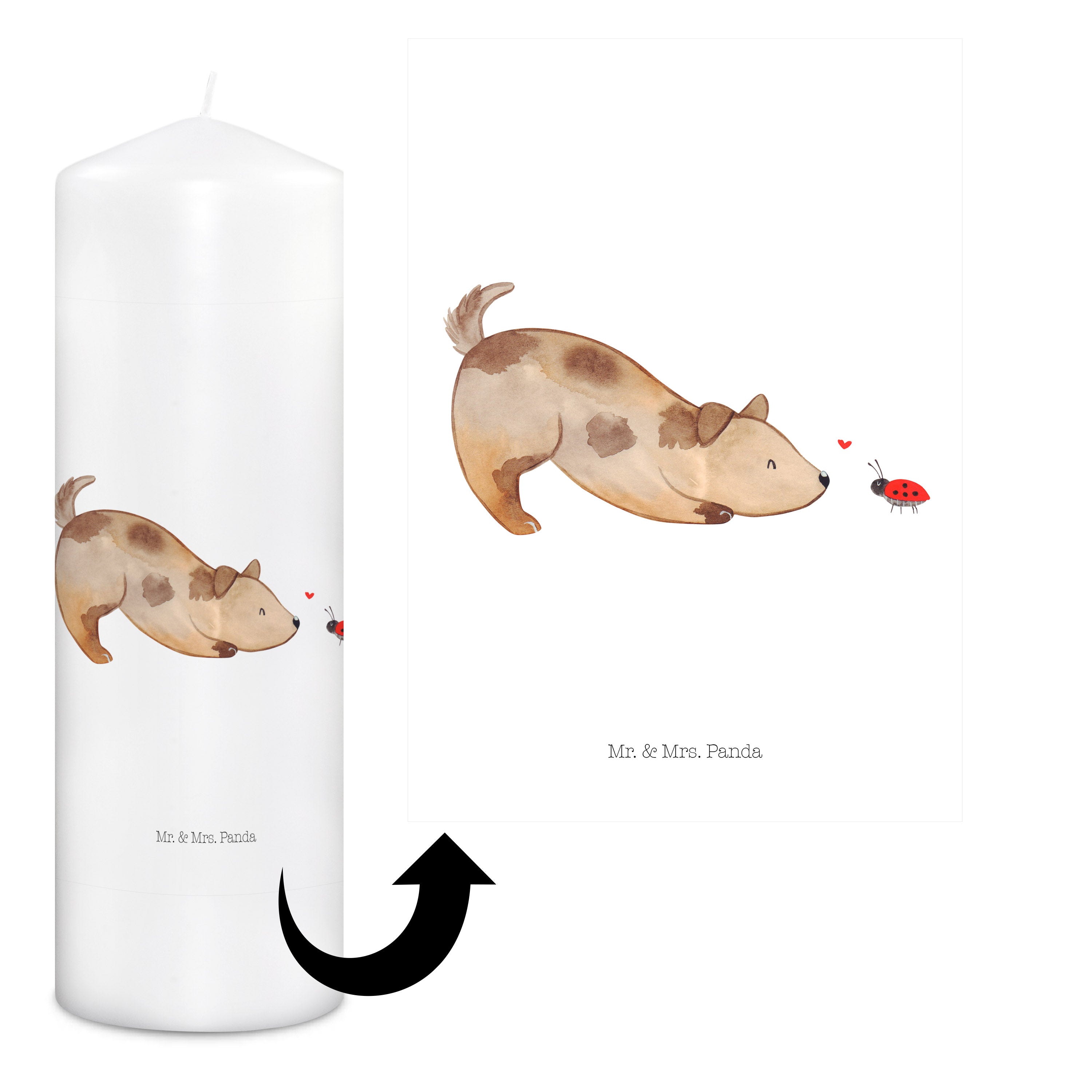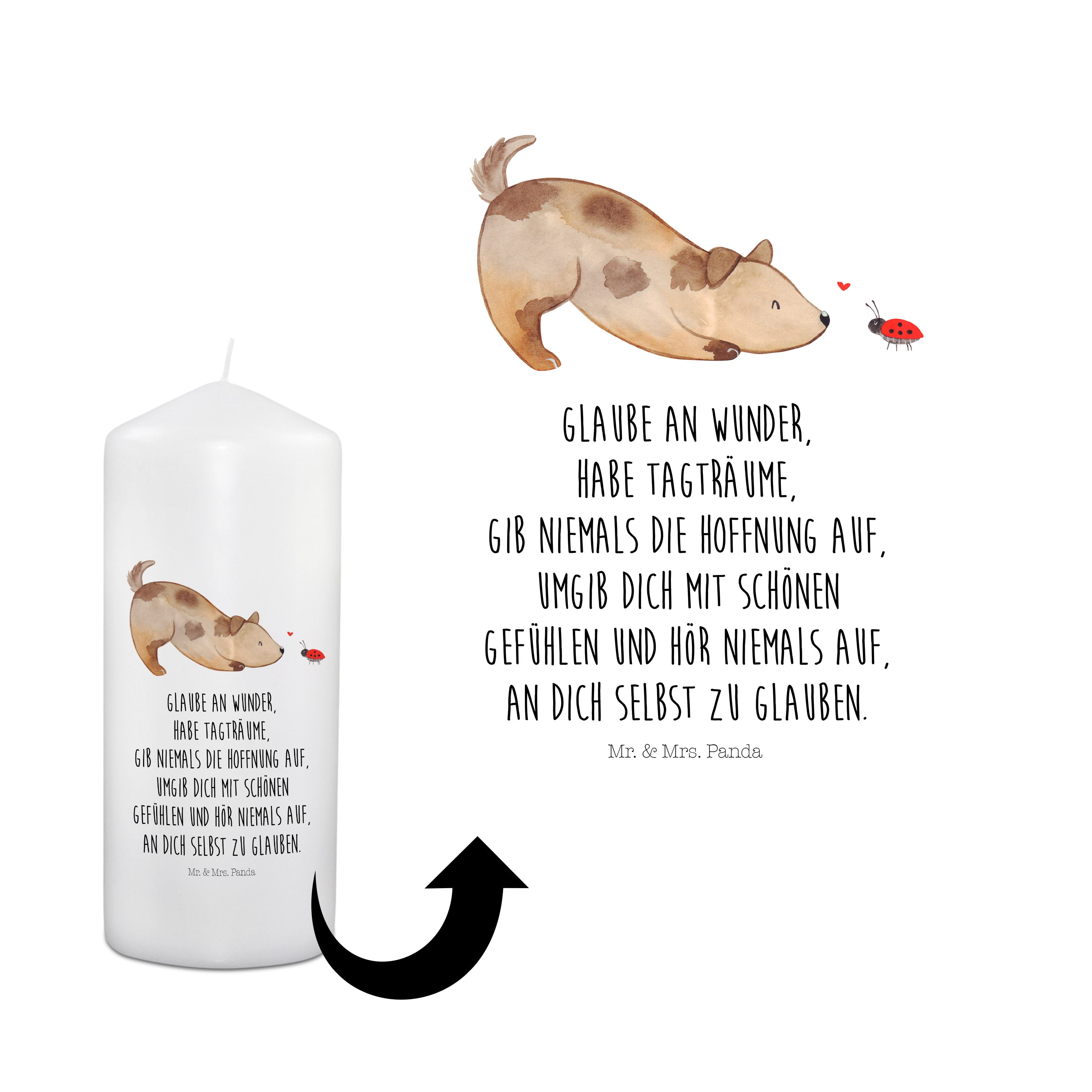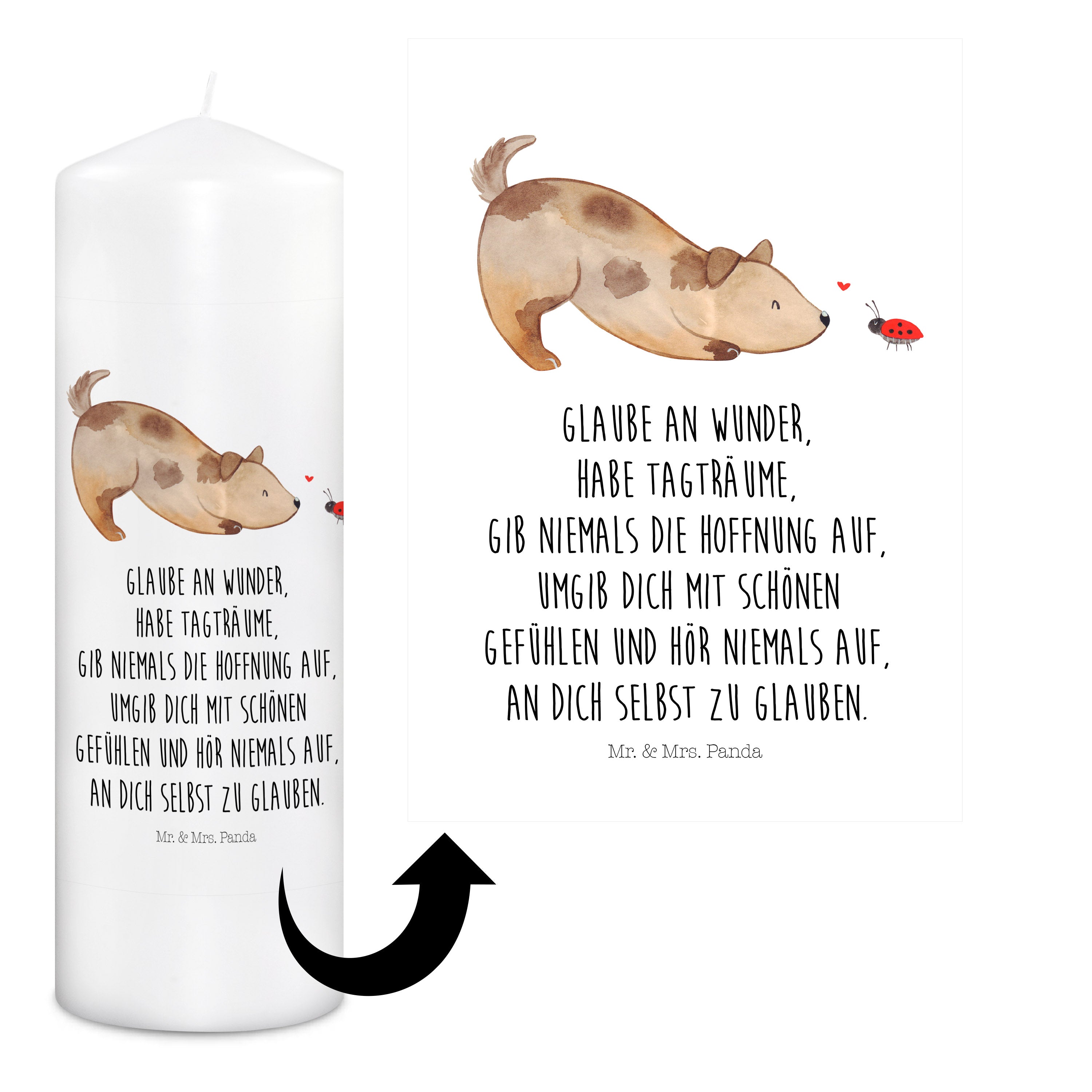 Kerze Hund Marienkäfer - 15 x 7 cm - mit Spruch