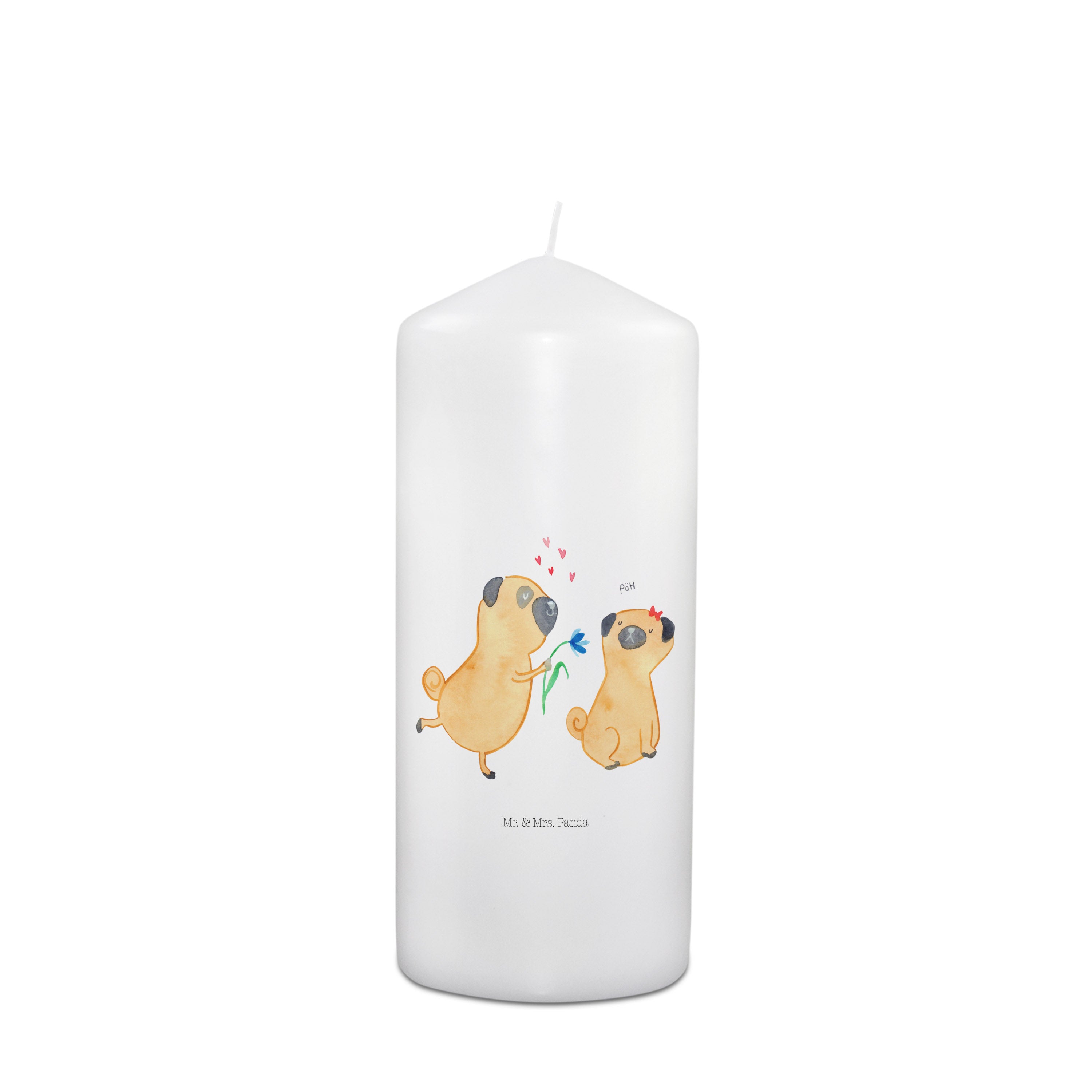 Kerze Mops verliebt - 15 x 7 cm - mit Spruch