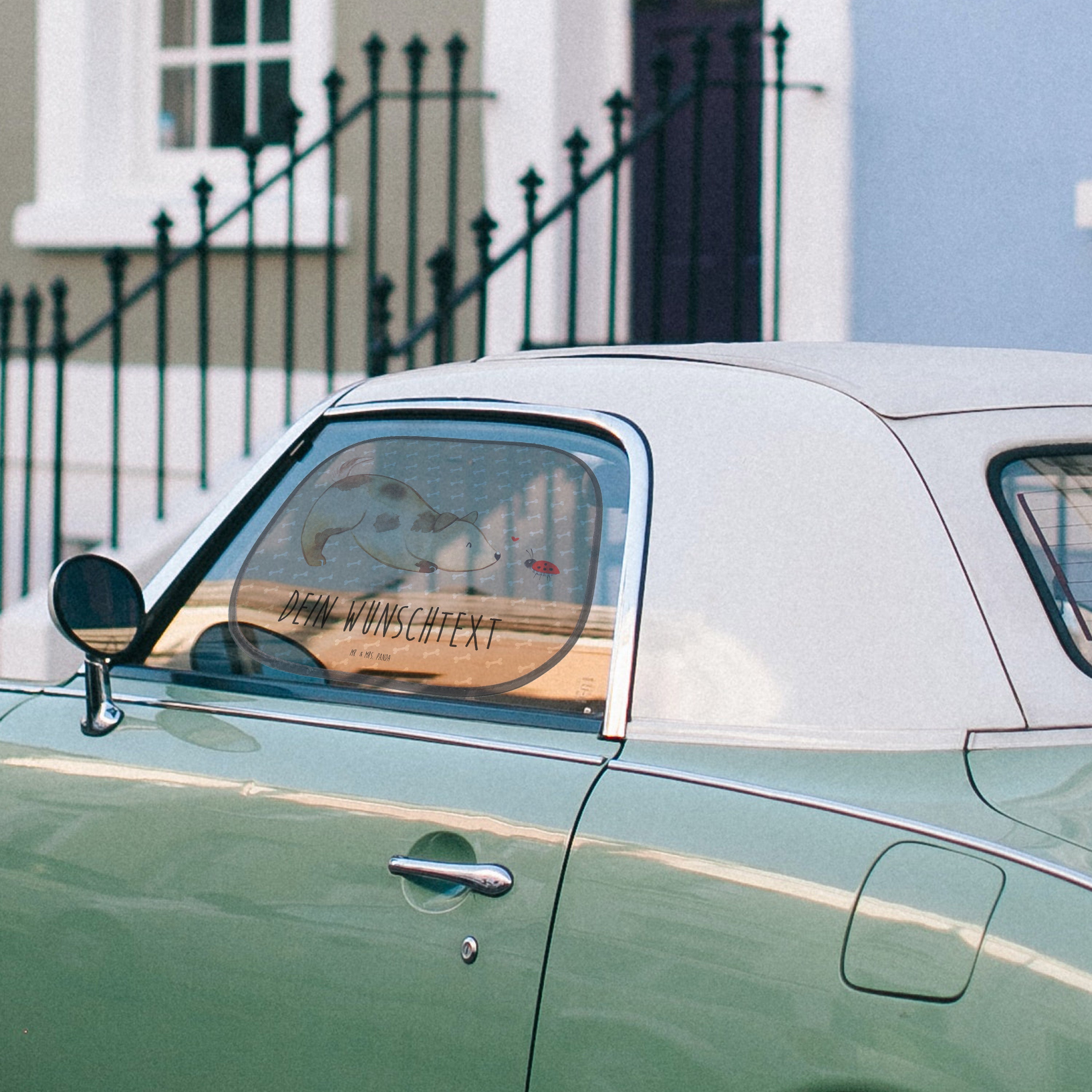 Personalisierbarer Sonnenschutz Hund Marienkäfer