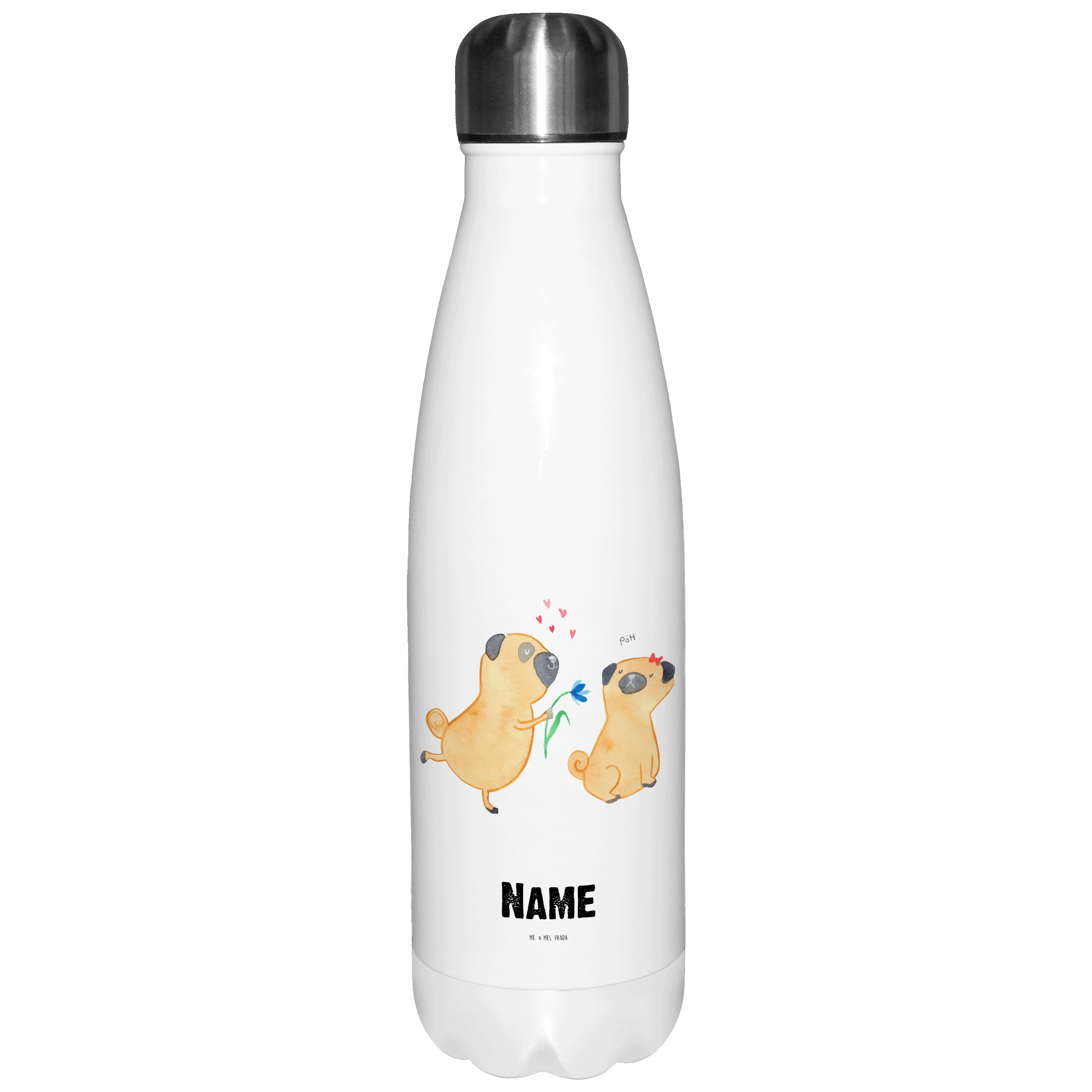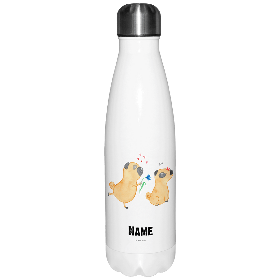 Personalisierte Thermosflasche Mops verliebt Personalisierte Isolierflasche, Personalisierte Thermoflasche, Personalisierte Trinkflasche, Trinkflasche Mit Namen, Wunschname, Bedrucken, Namensflasche, Hund, Hundemotiv, Haustier, Hunderasse, Tierliebhaber, Hundebesitzer, Sprüche, Mops, Möpse, Hundeliebe, verliebt, Liebe, Liebesspruch. Verlobt, Geschenk Freund, Partner