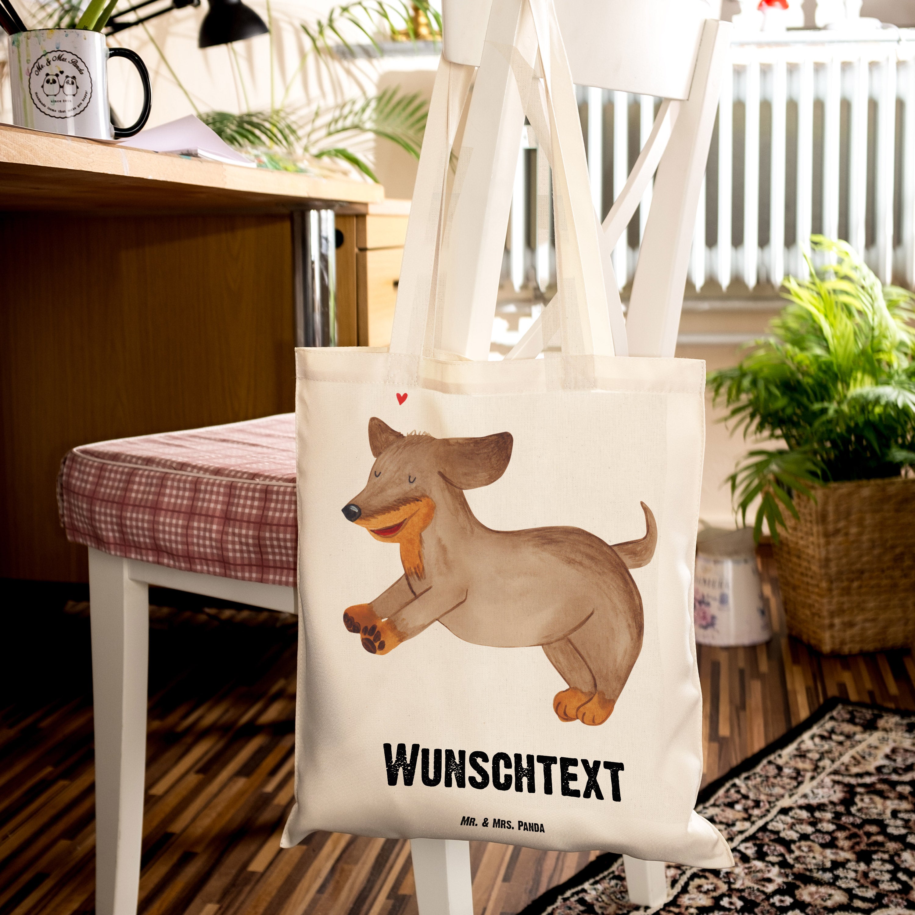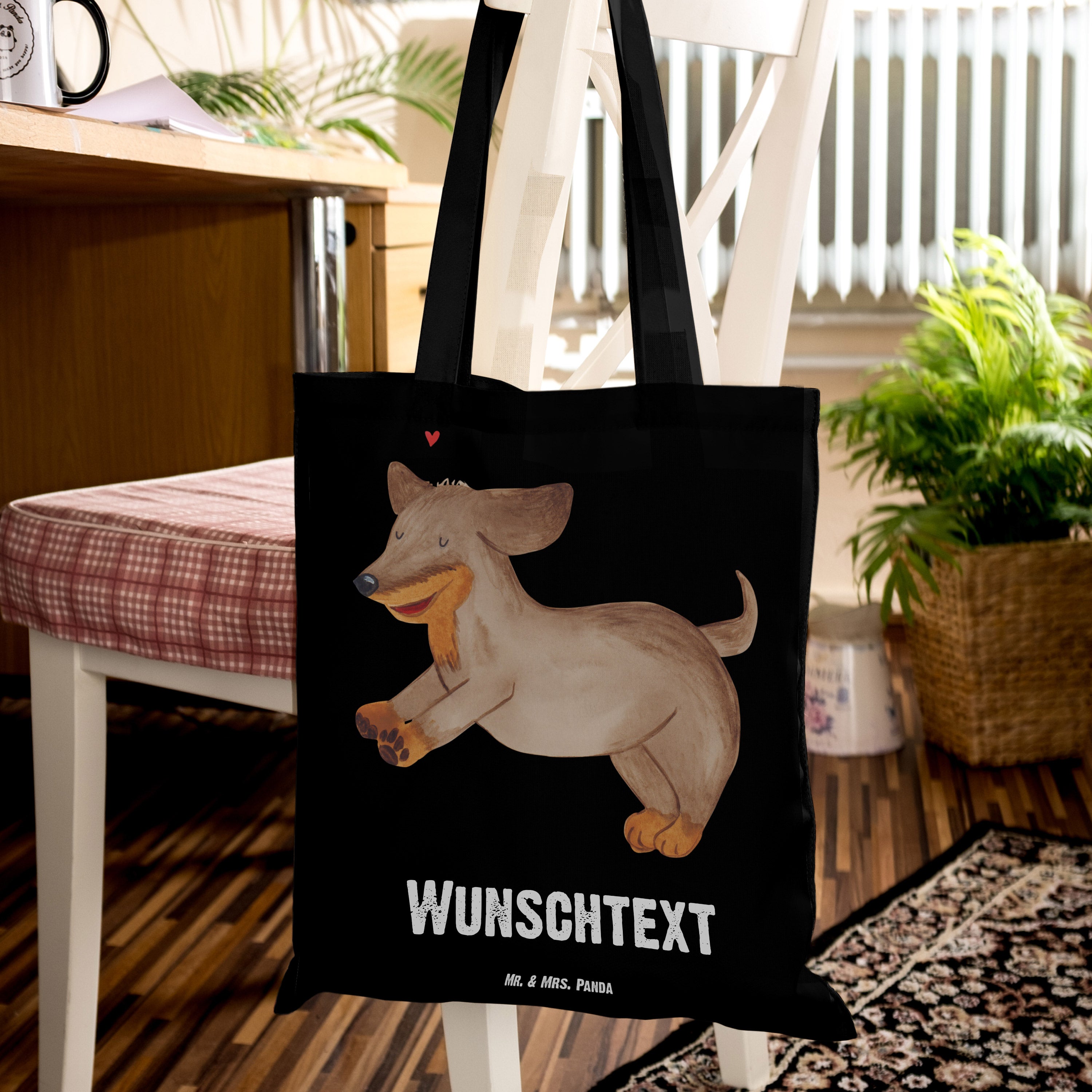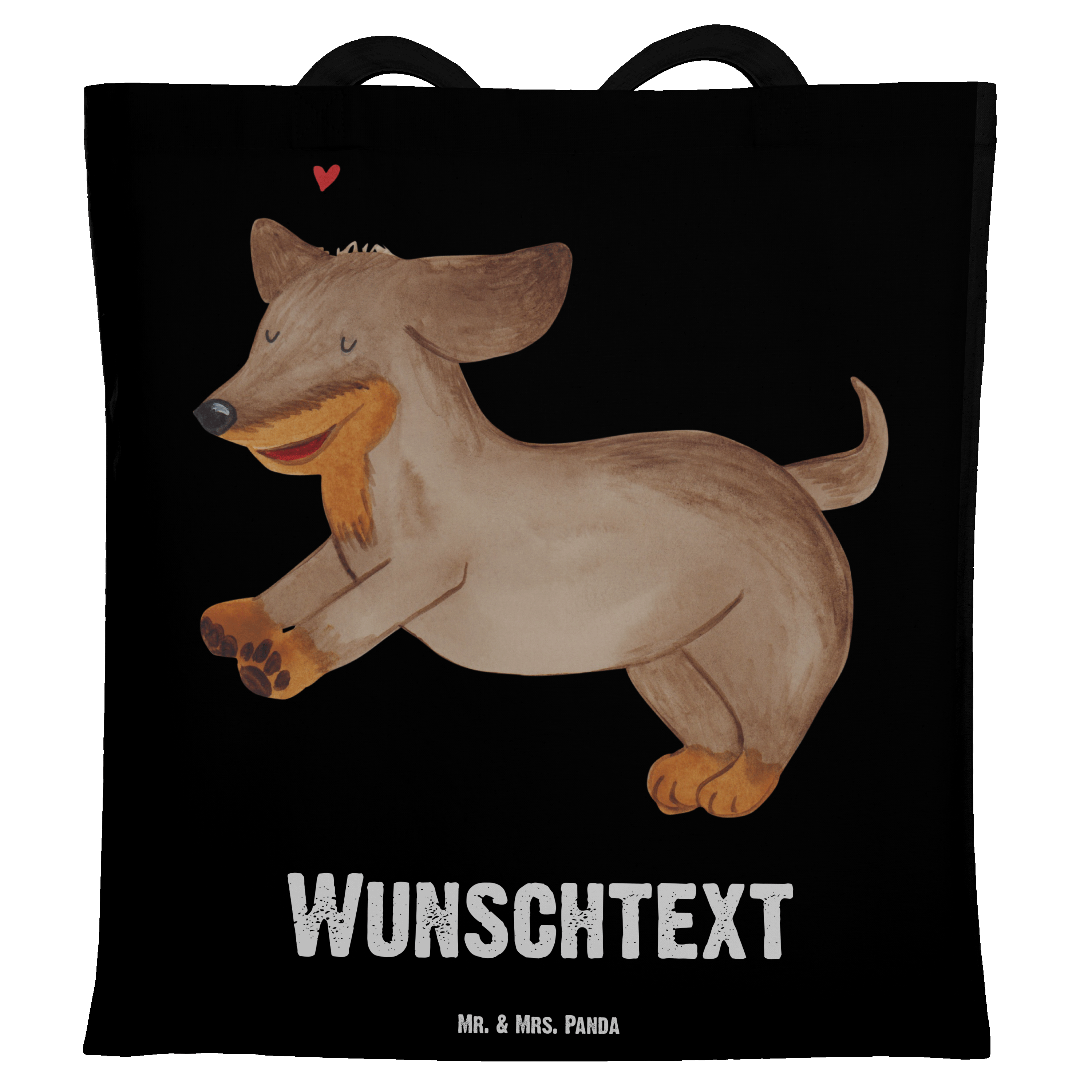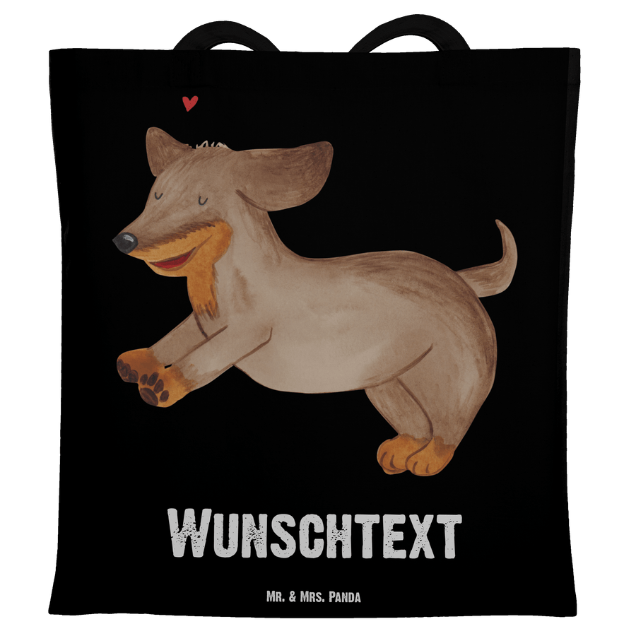 Personalisierte Tragetasche Hund Dackel fröhlich - Schwarz