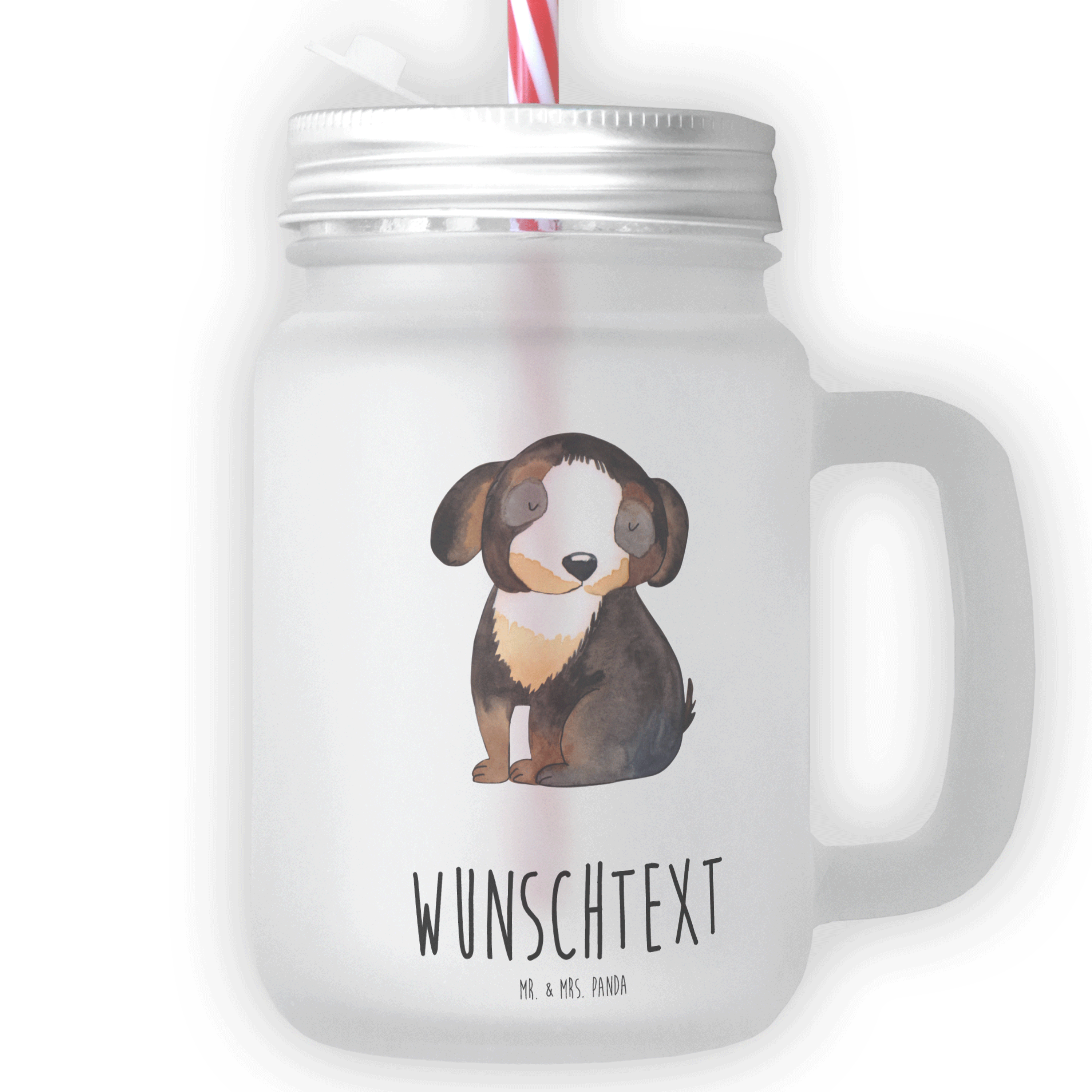 Personalisiertes Trinkglas Mason Jar Hund entspannt