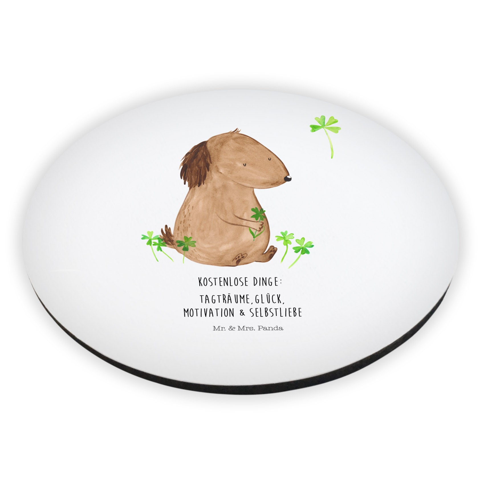 Rund Magnet Hund Kleeblatt - mit Spruch - Weiß