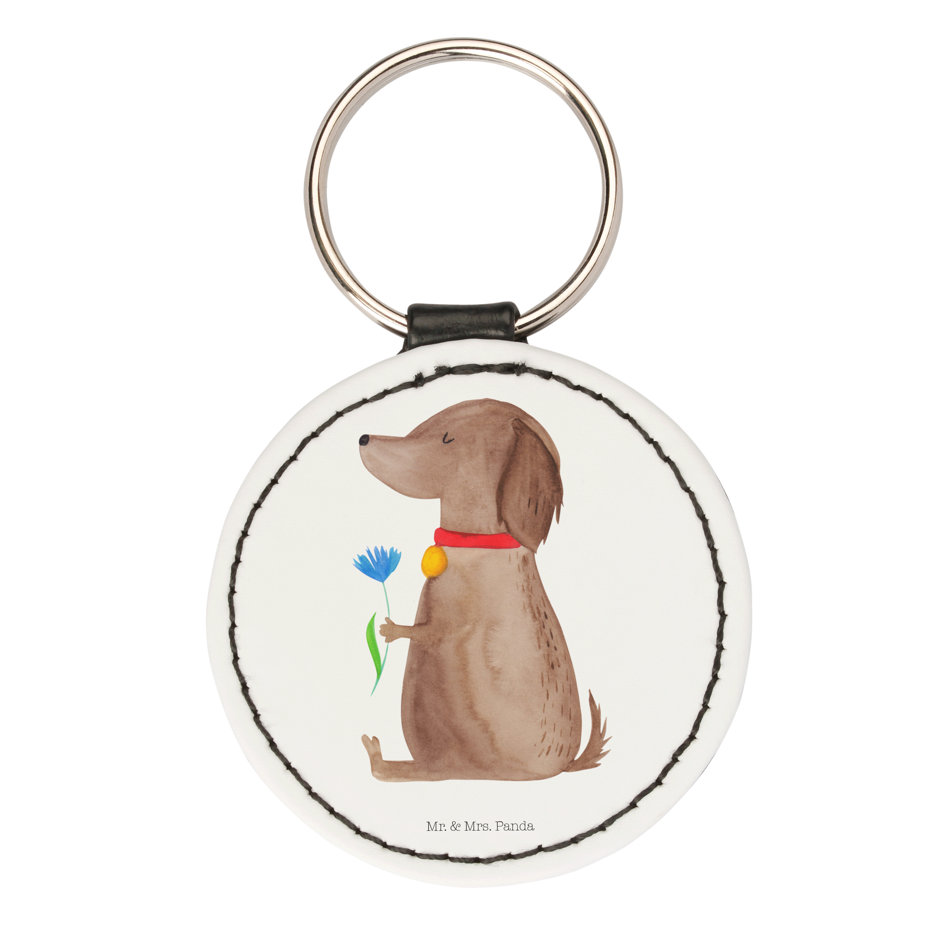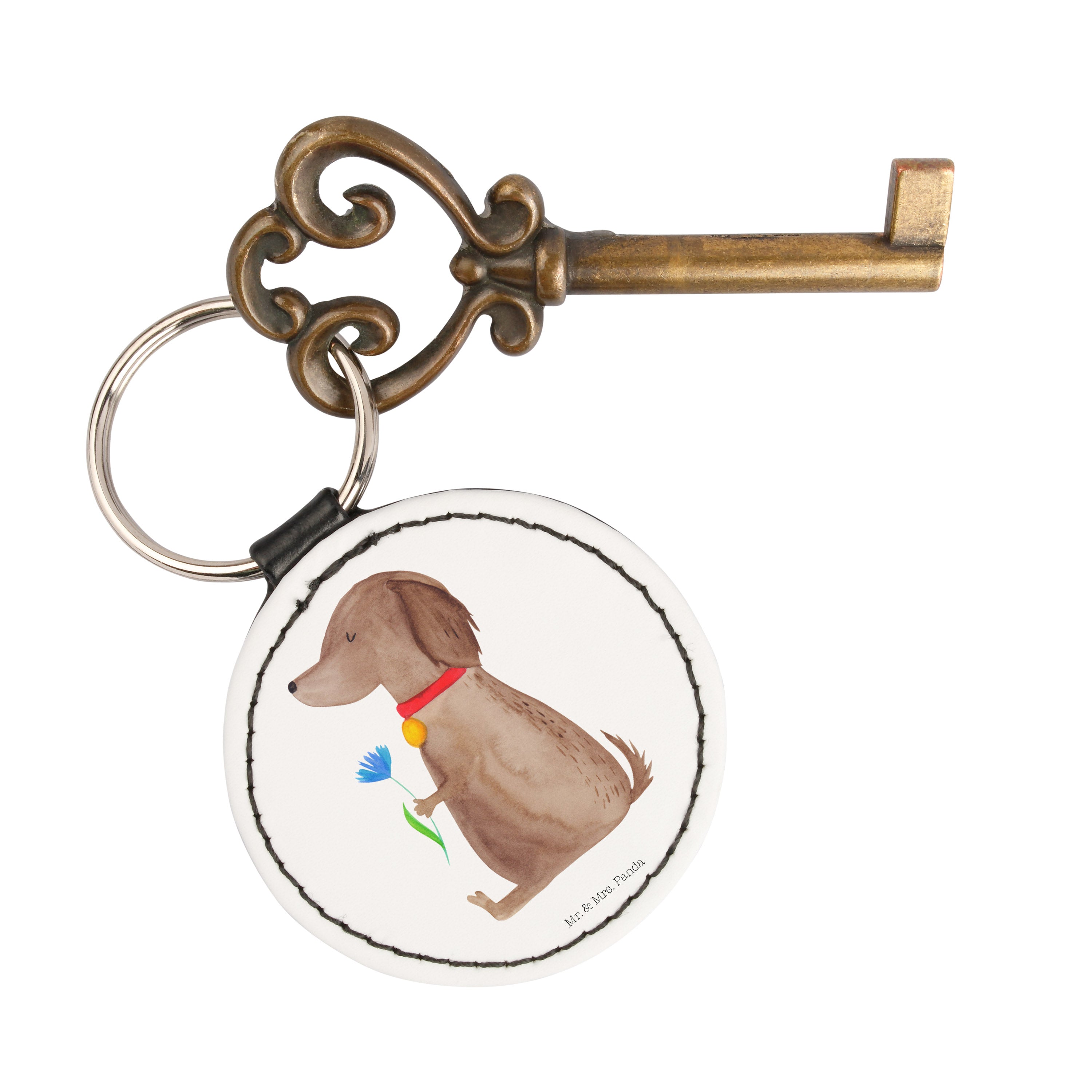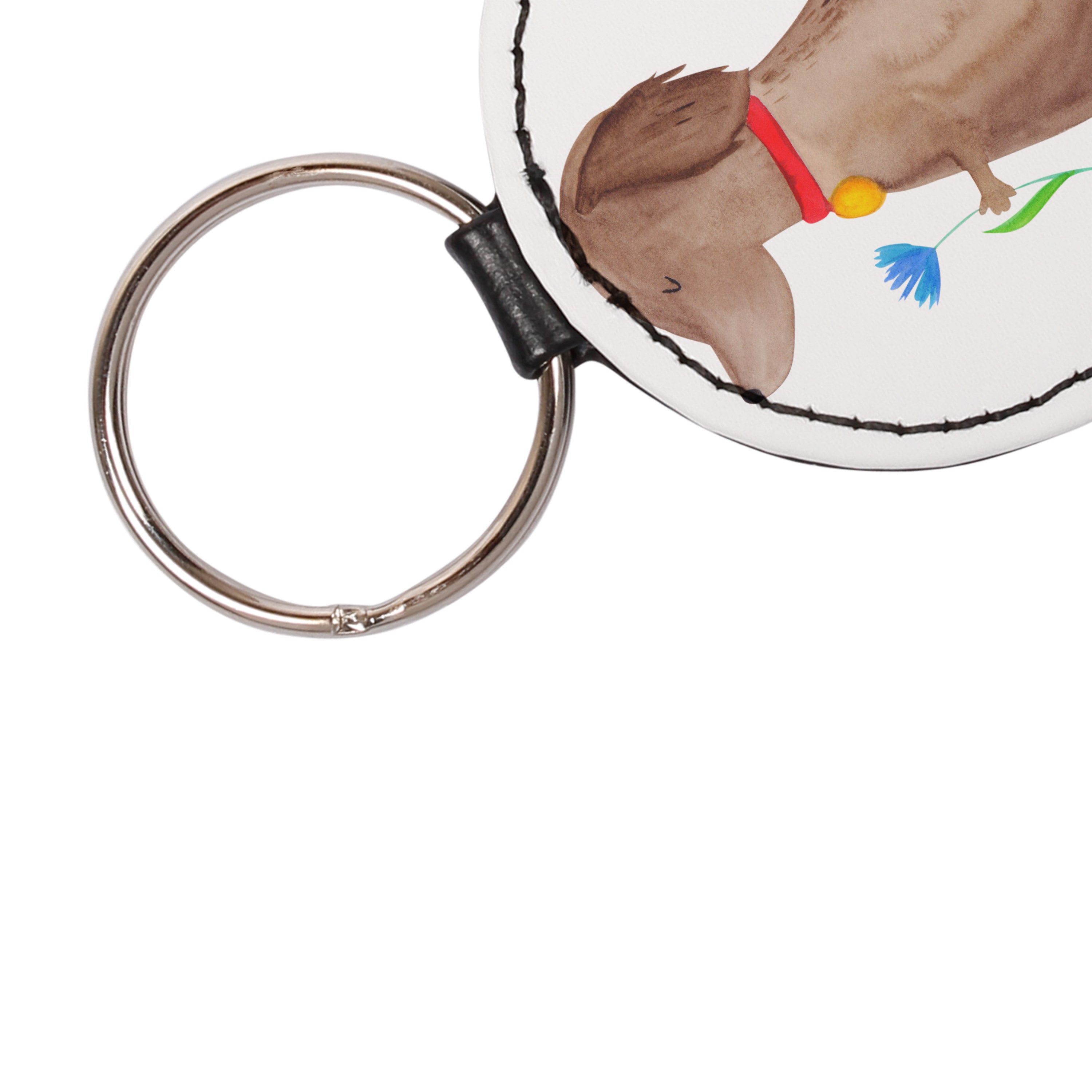 Rund Schlüsselanhänger Hund Blume - Weiß