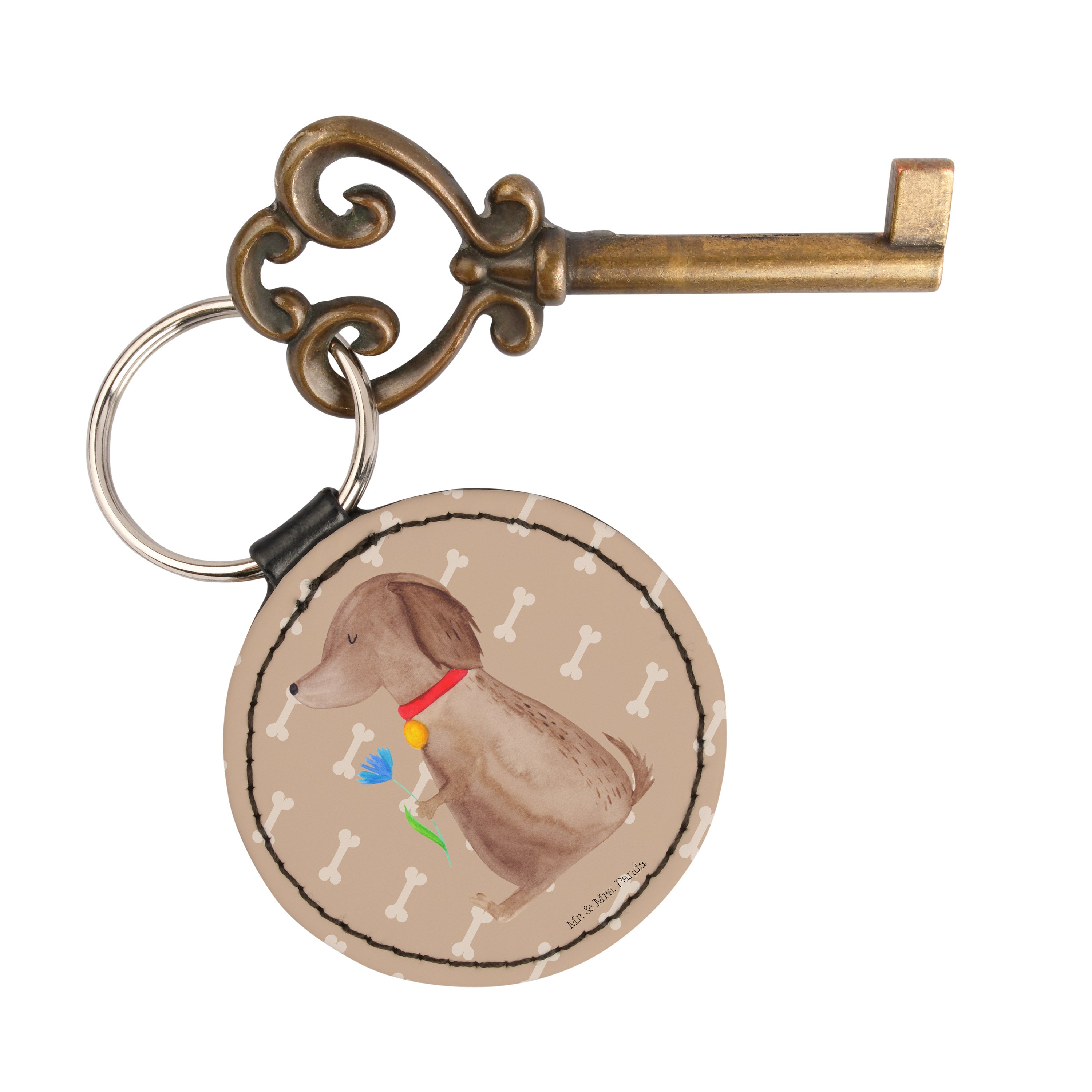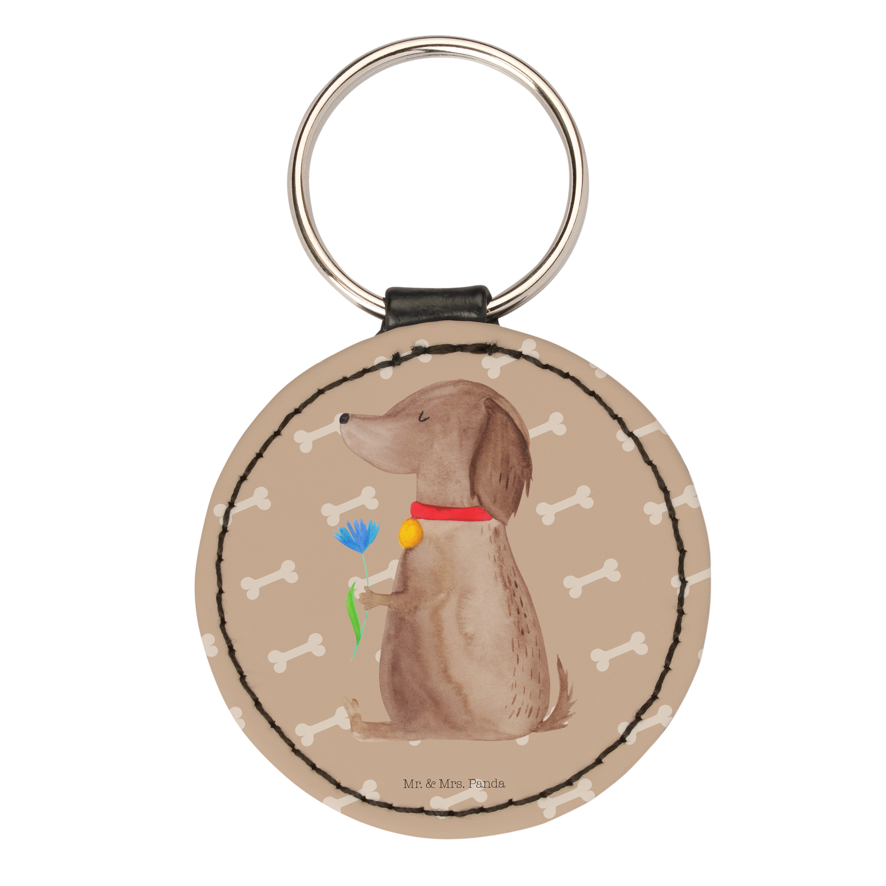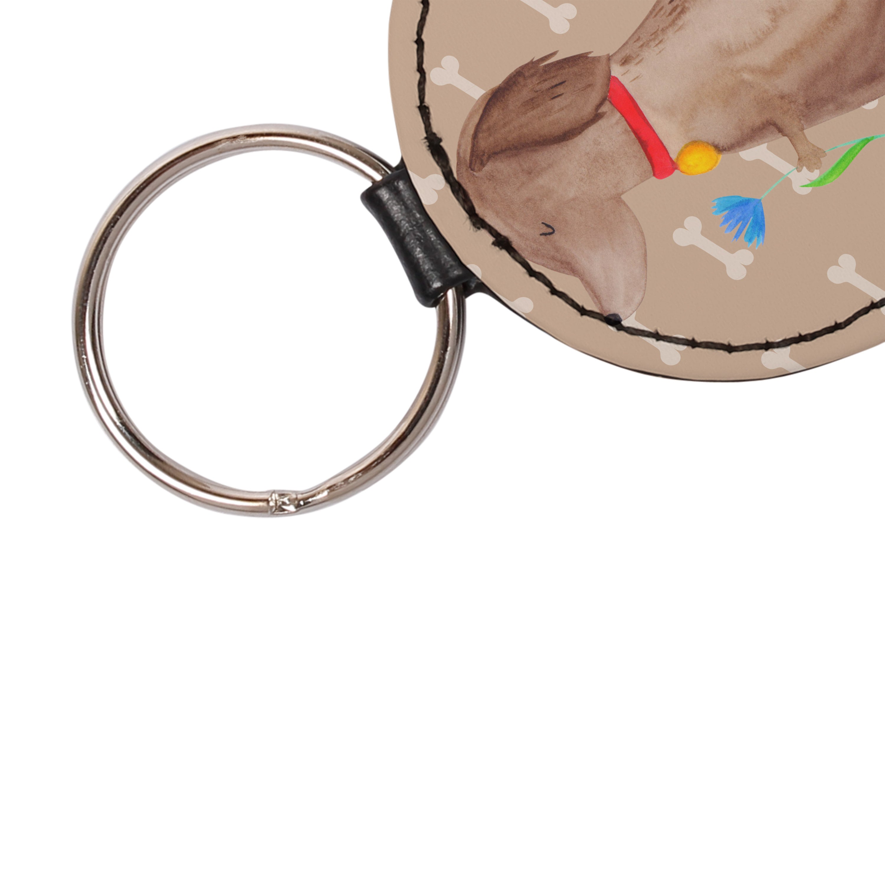 Rund Schlüsselanhänger Hund Blume - Weiß