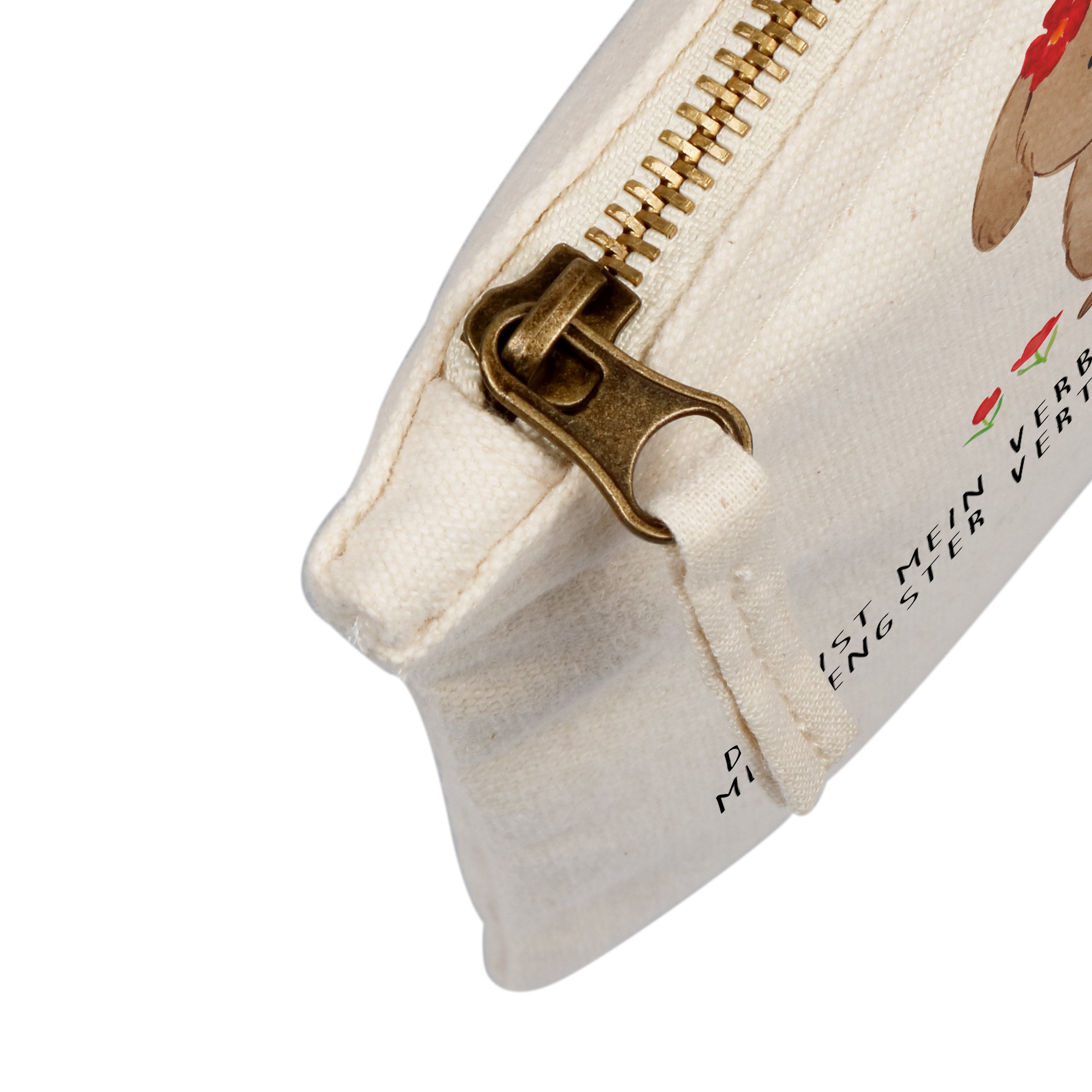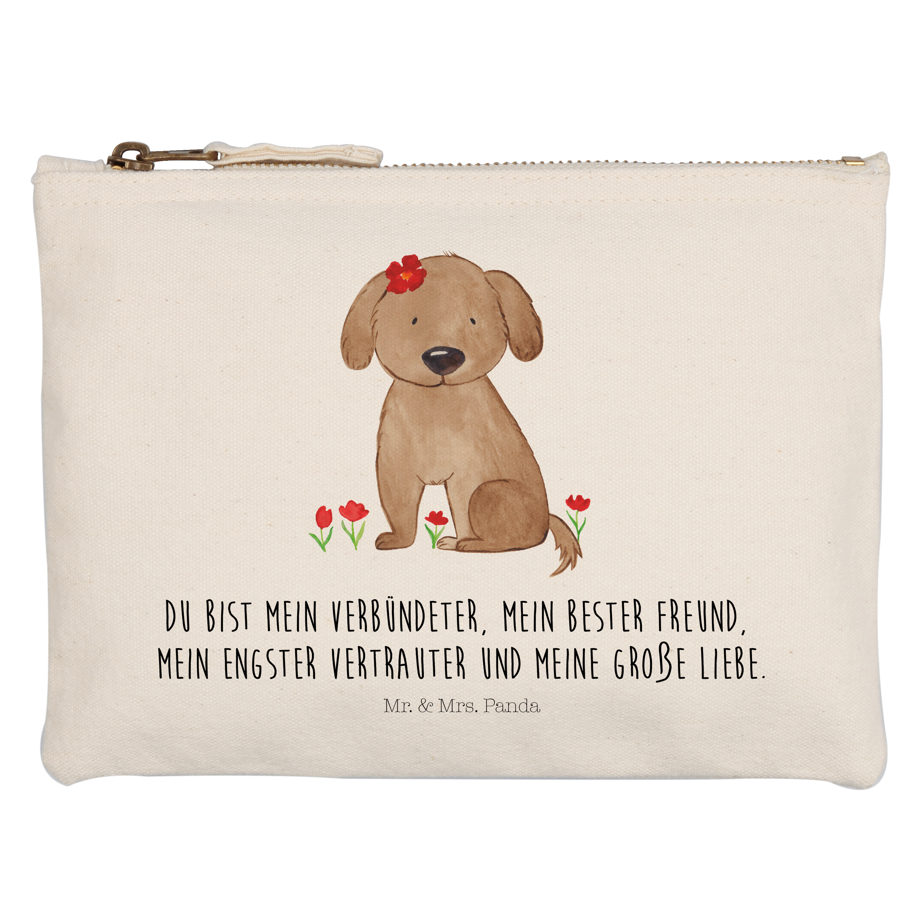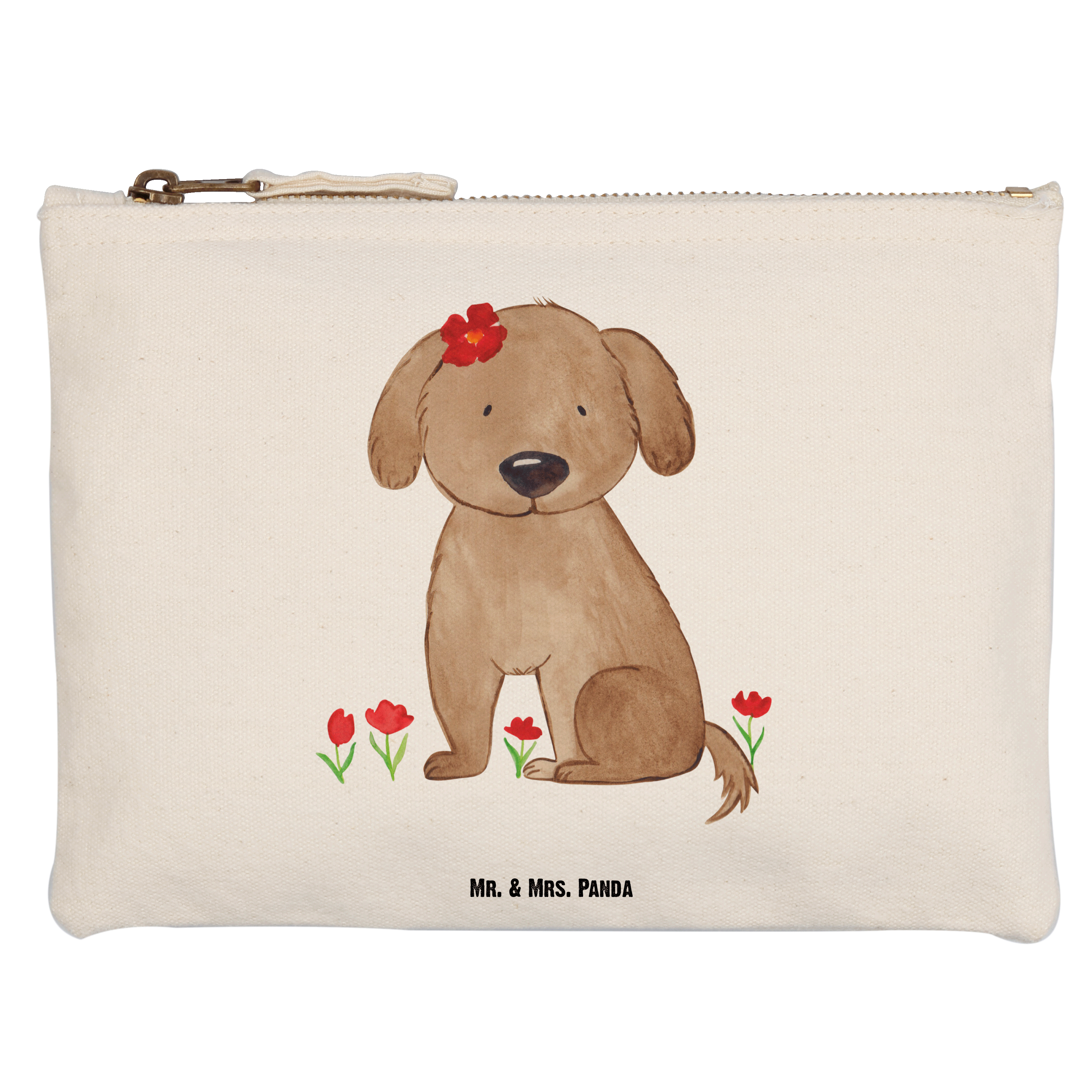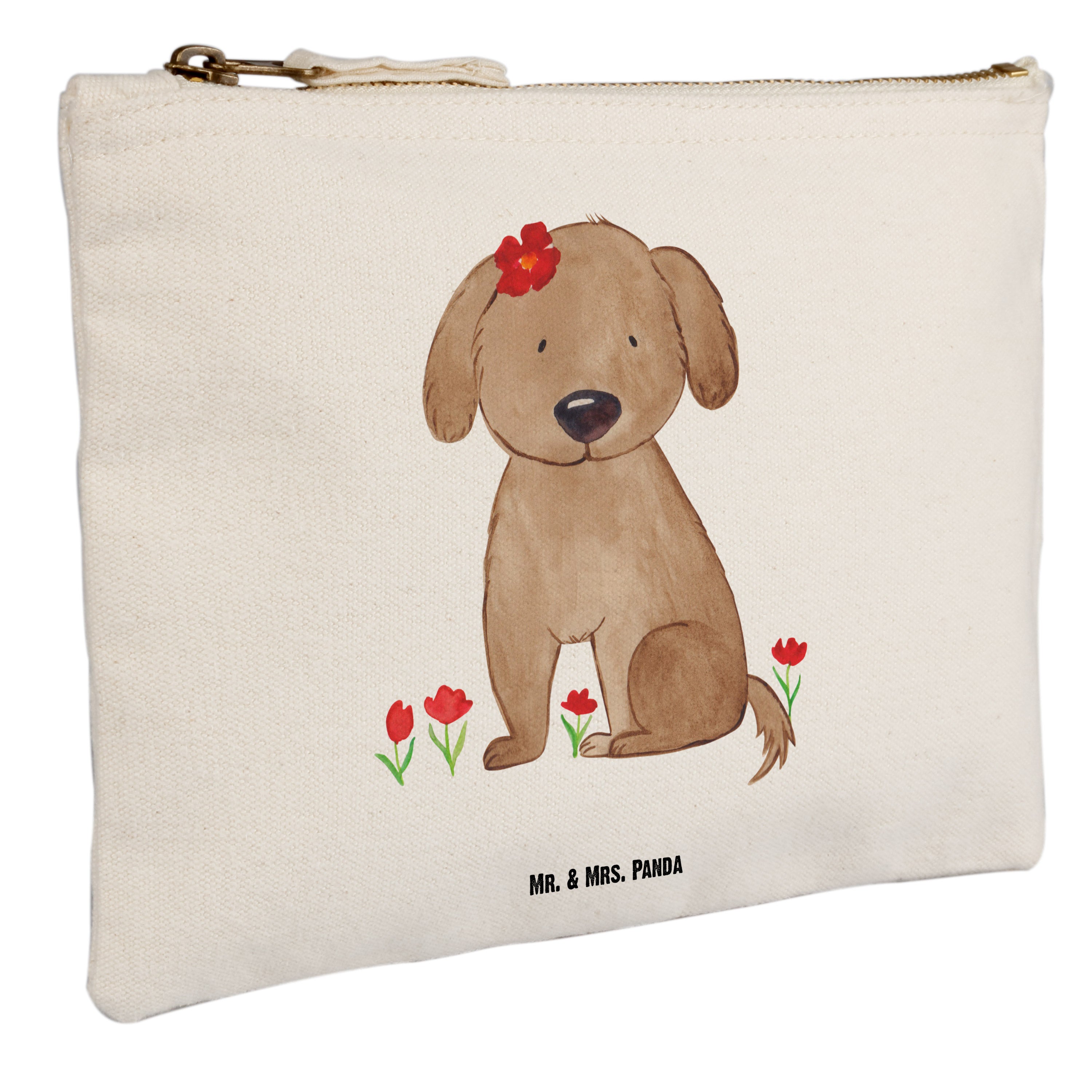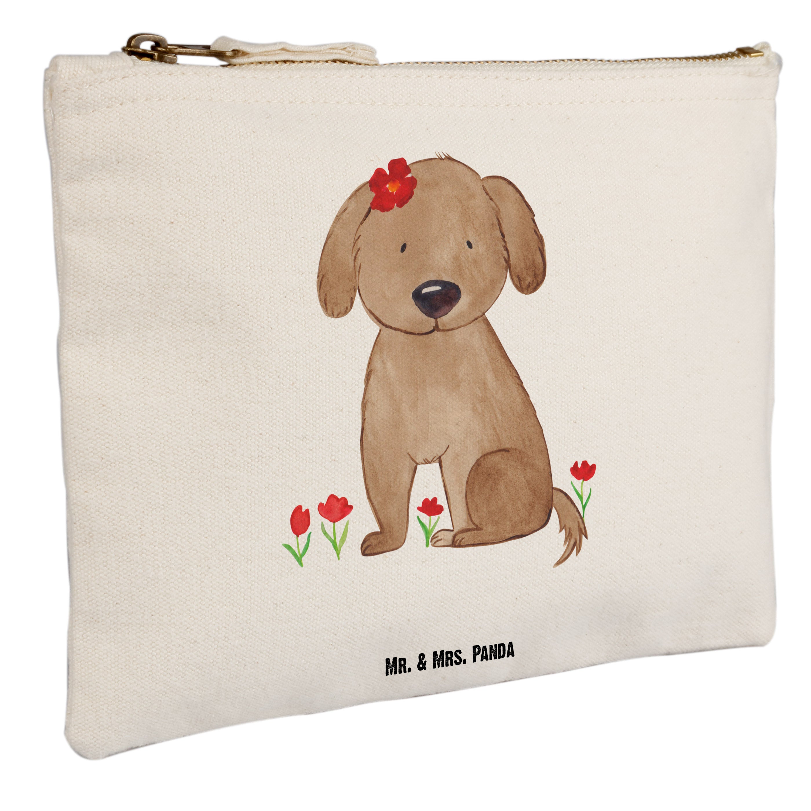 Eine wunderschöne Schminktasche von Mr. & Mrs. Panda mit Reißverschlussfach. Diese Kosmetiktasche oder Kosmetikbeutel ist aus 100% Baumwolle und bedruckt mit unseren wunderschönen handgezeichneten Motiven. Hol dir dieses einzigartige Etui direkt nach Hause - du kannst die Tasche auch perfekt als Stiftemäppchen, Federmappe, Schlamper oder Etui verwenden.