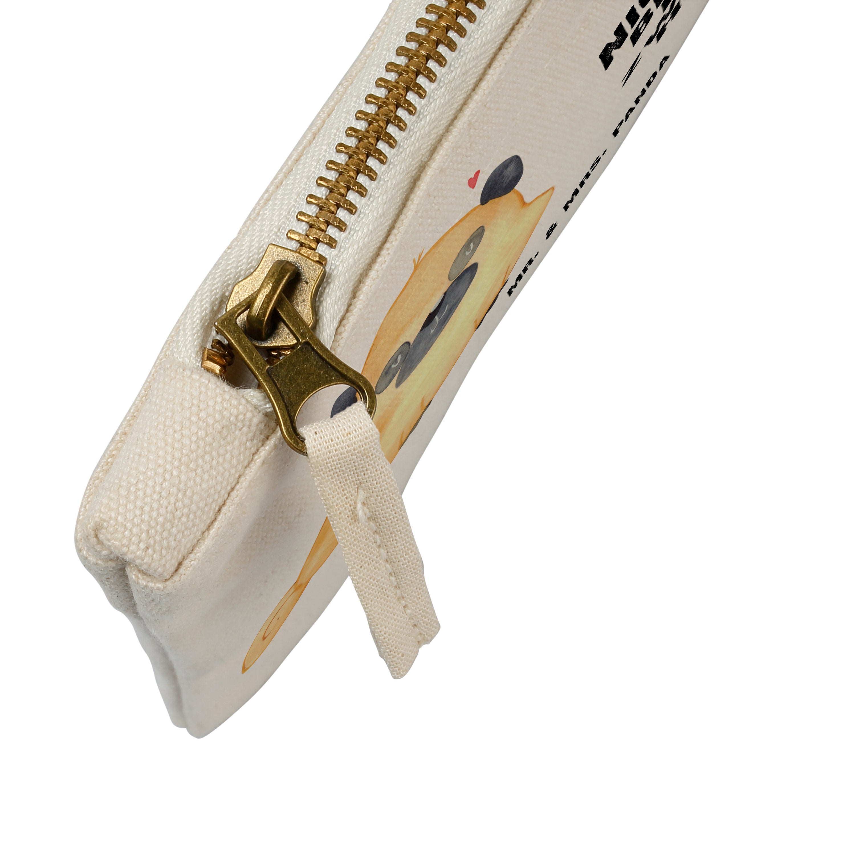 Eine wunderschöne Schminktasche von Mr. & Mrs. Panda mit Reißverschlussfach. Diese Kosmetiktasche oder Kosmetikbeutel ist aus 100% Baumwolle und bedruckt mit unseren wunderschönen handgezeichneten Motiven. Hol dir dieses einzigartige Etui direkt nach Hause - du kannst die Tasche auch perfekt als Stiftemäppchen, Federmappe, Schlamper oder Etui verwenden.