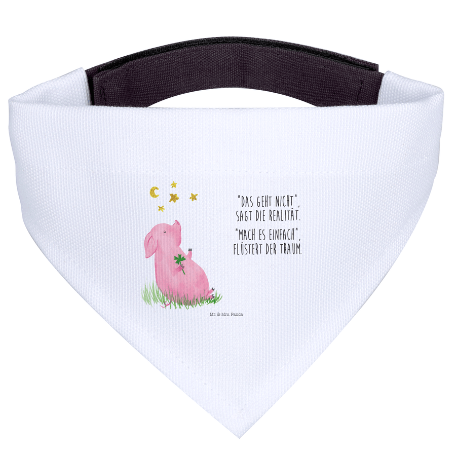 Hundehalstuch S Glücksschwein - mit Spruch - Weiß