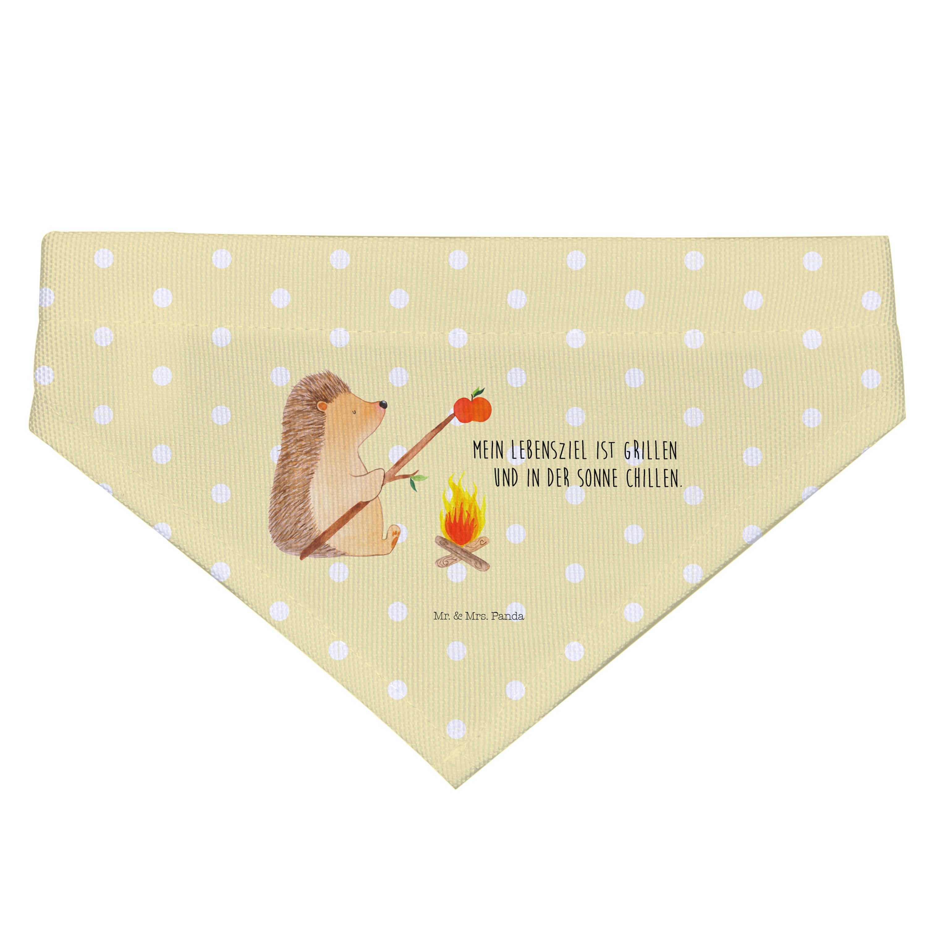 Hundehalstuch S Igel grillt - mit Spruch - Gelb Pastell
