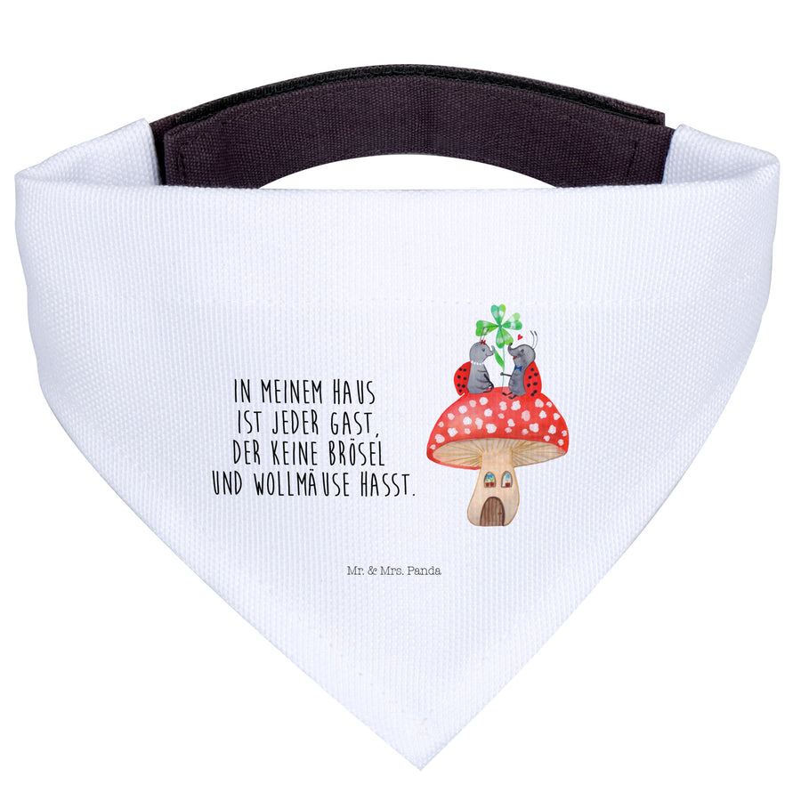 Hundehalstuch Marienkäfer Paar Fliegenpilz - Mit Text Quer DE - Weiß