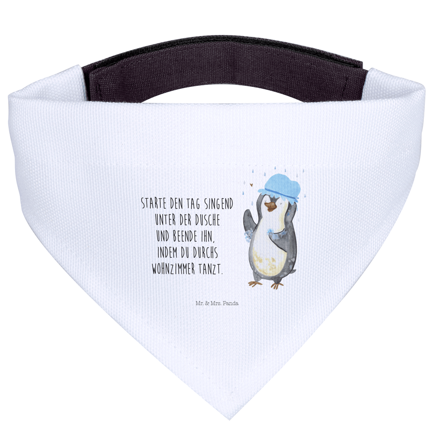 Hundehalstuch S Pinguin duscht - mit Spruch - Weiß