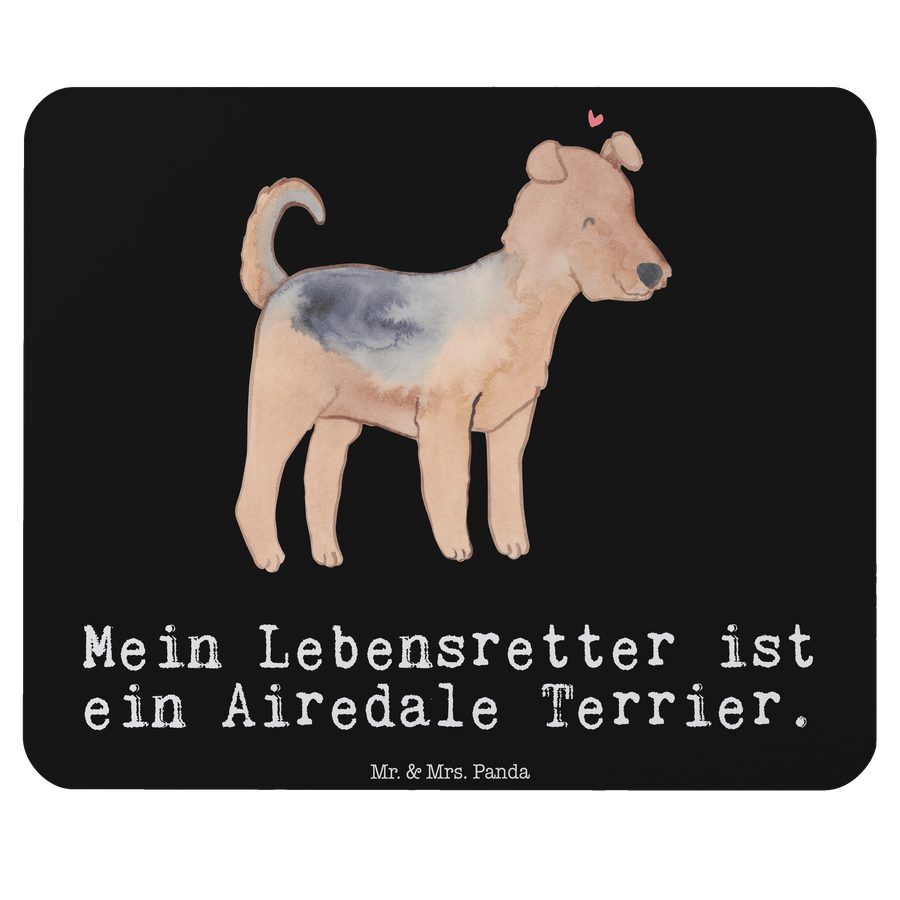 Mauspad Airedale Terrier Lebensretter - mit Spruch - Schwarz