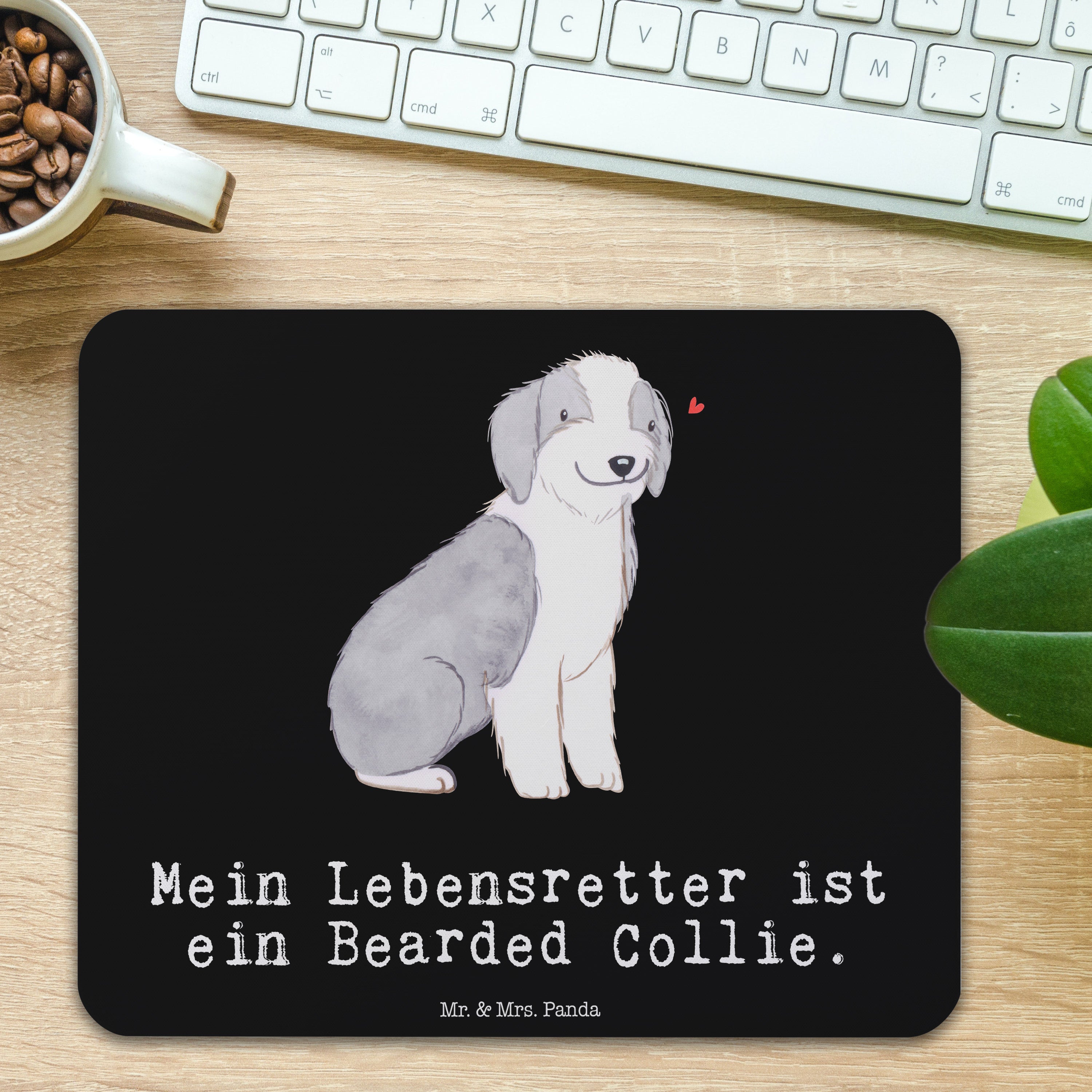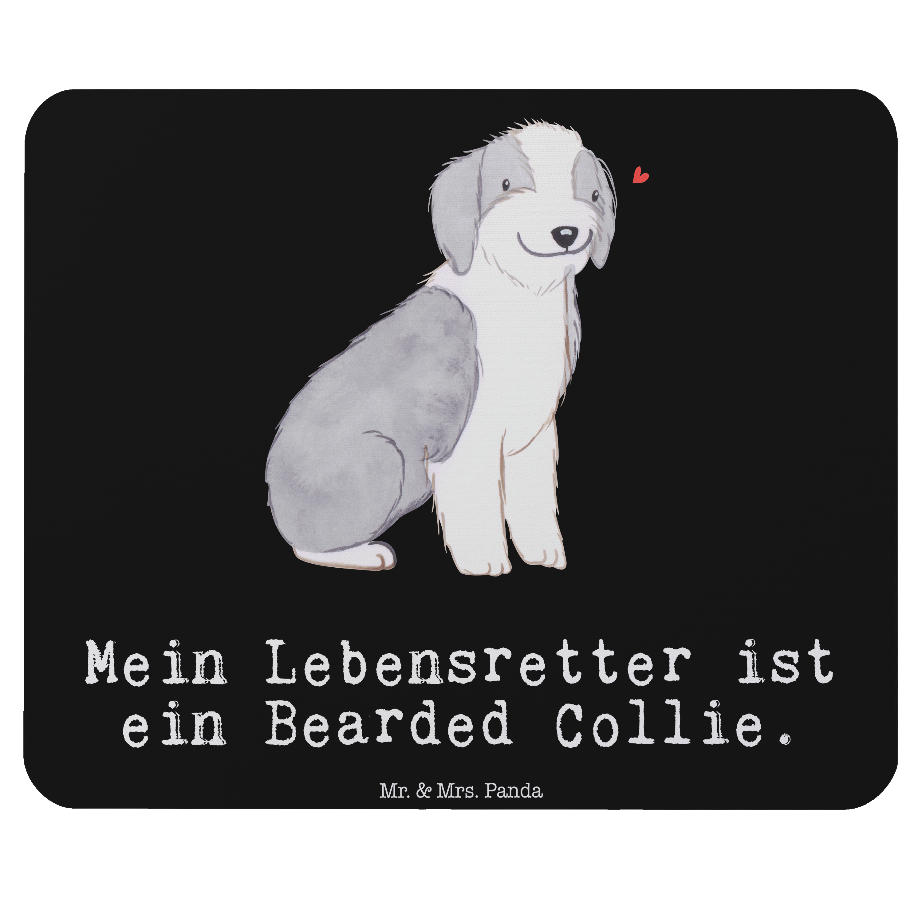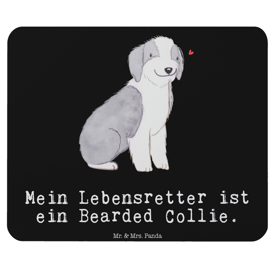 Mauspad Bearded Collie Lebensretter - mit Spruch - Schwarz