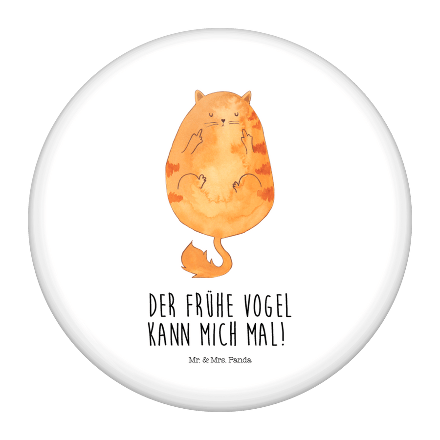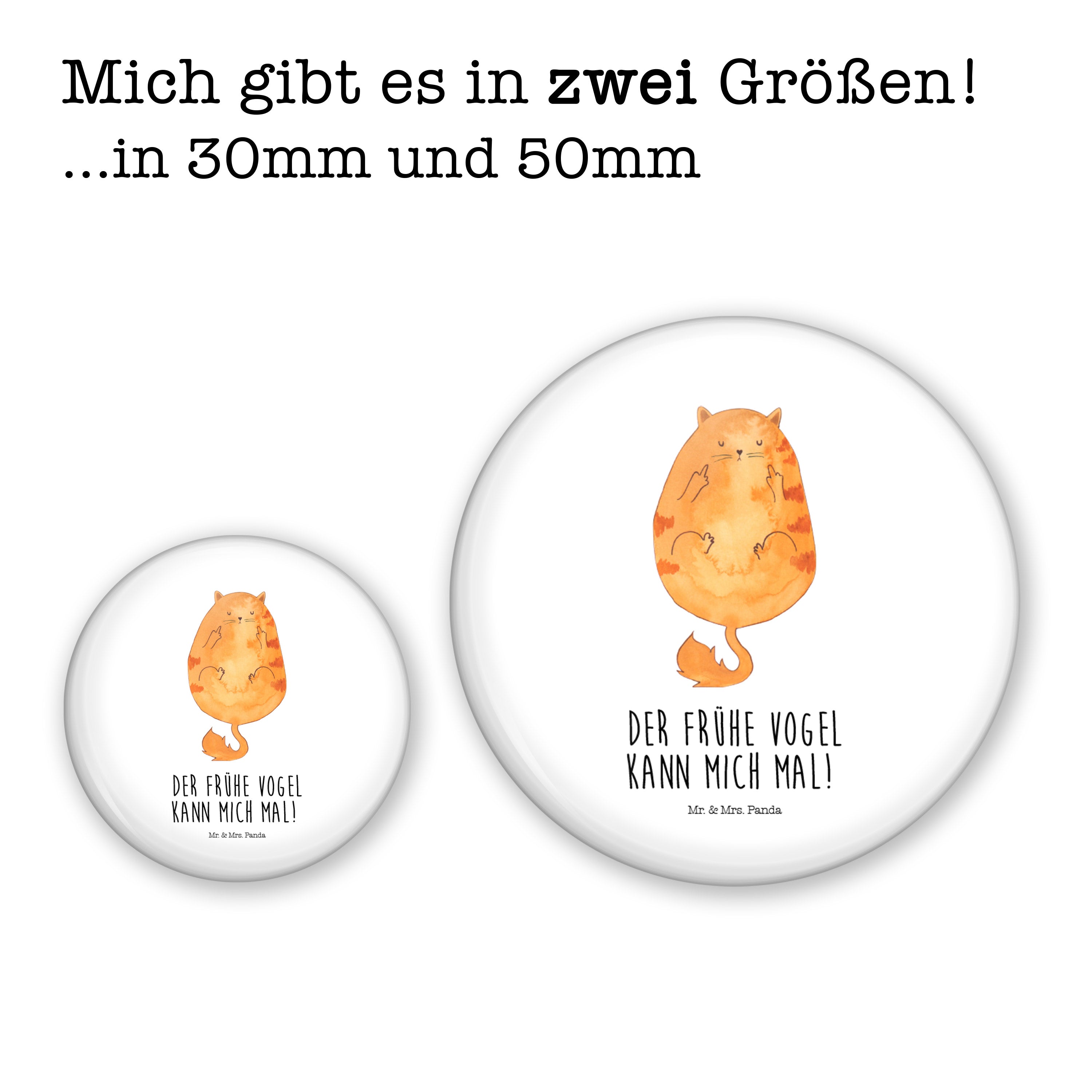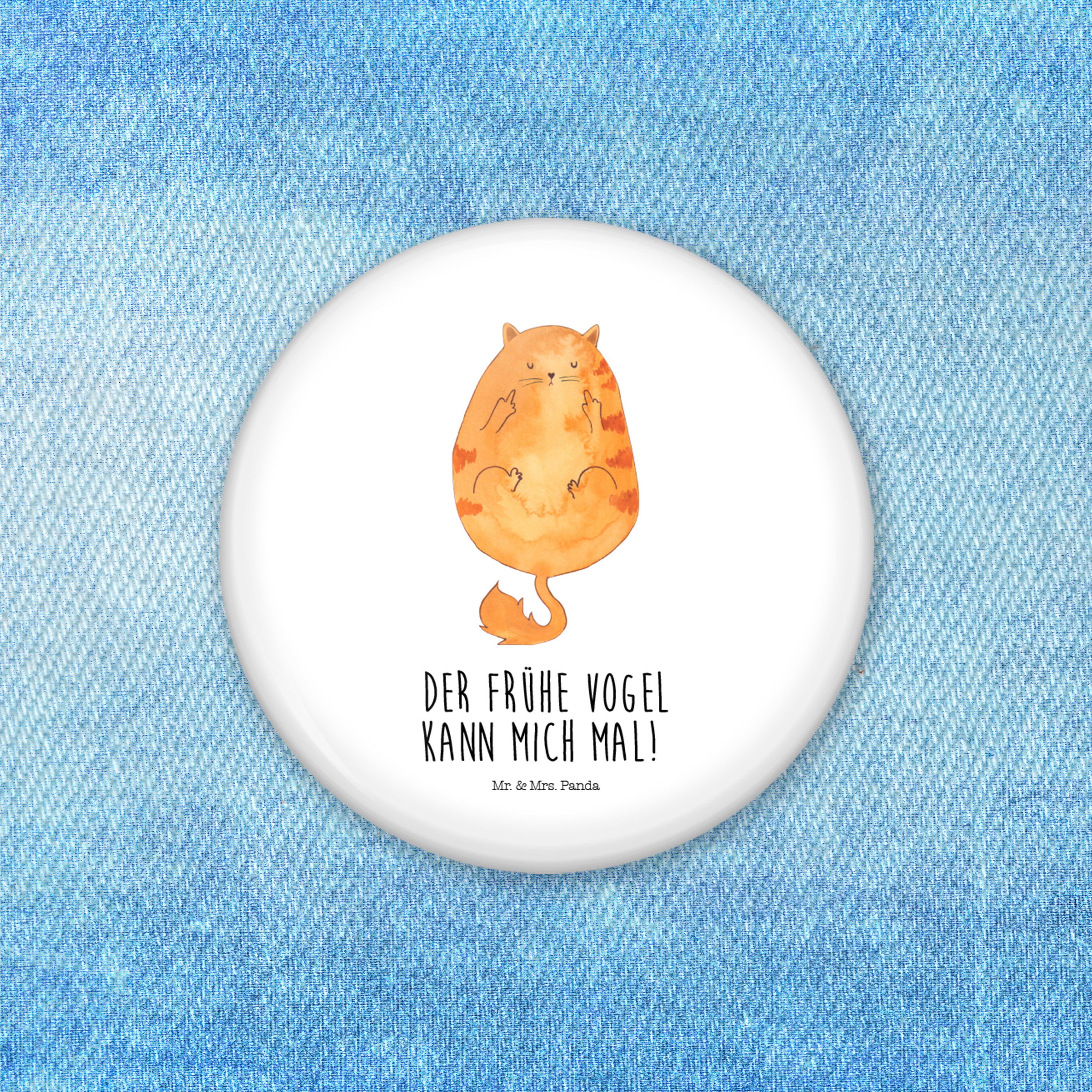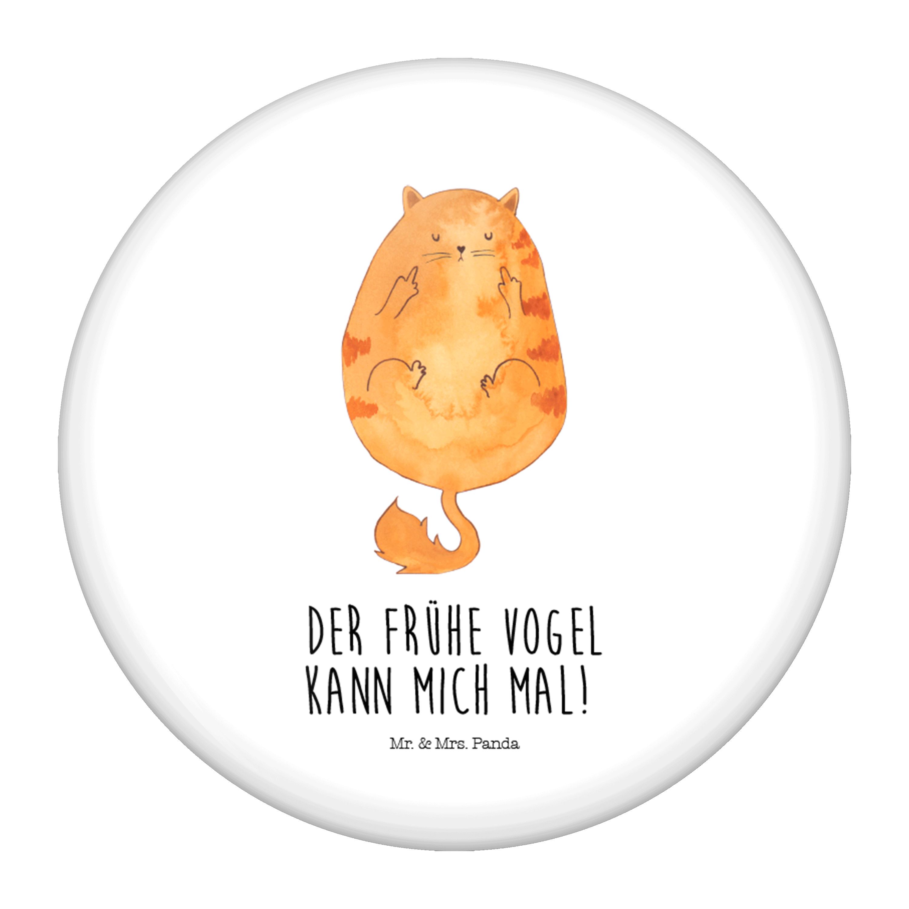 50mm Button Katze Frühaufsteher - mit Spruch - Weiß