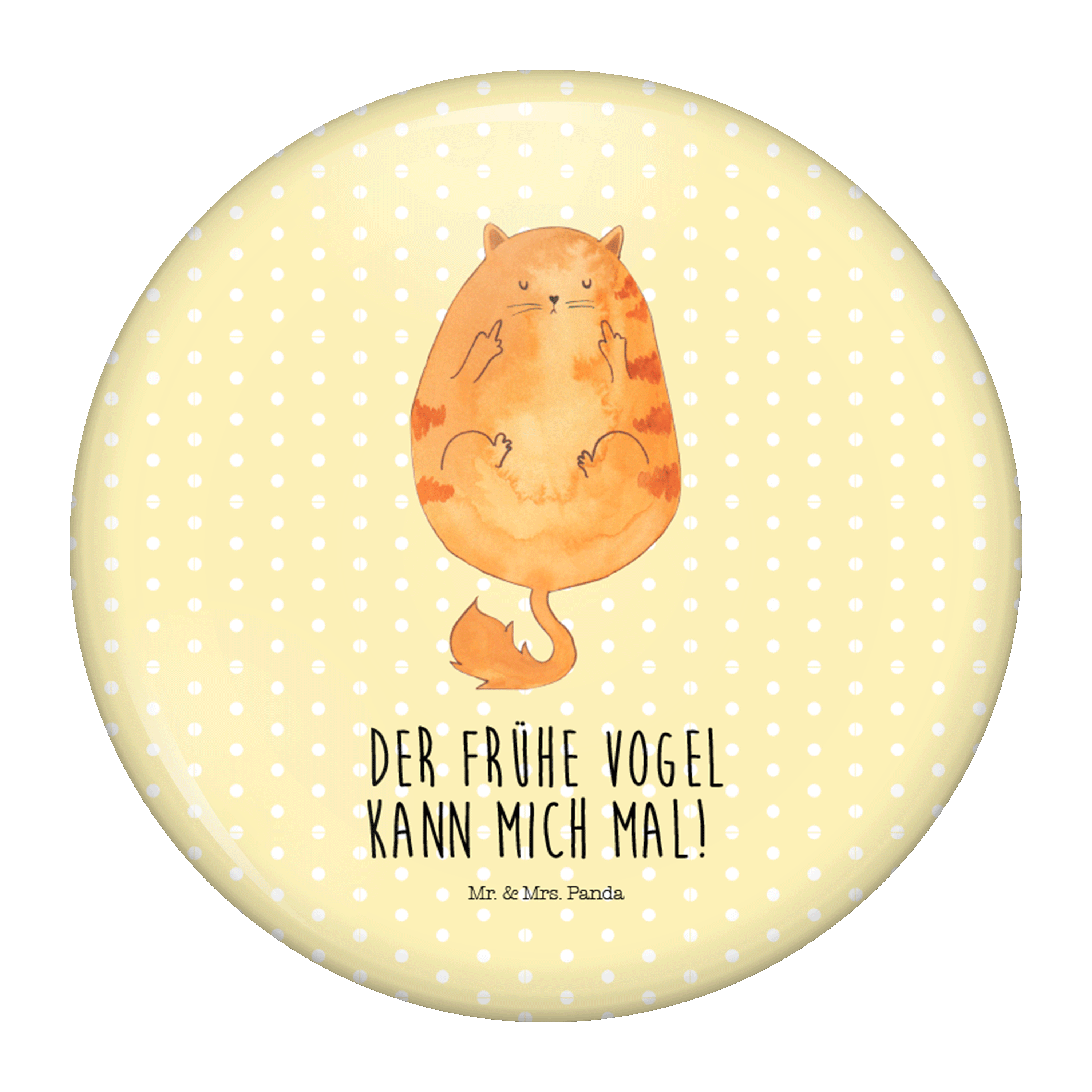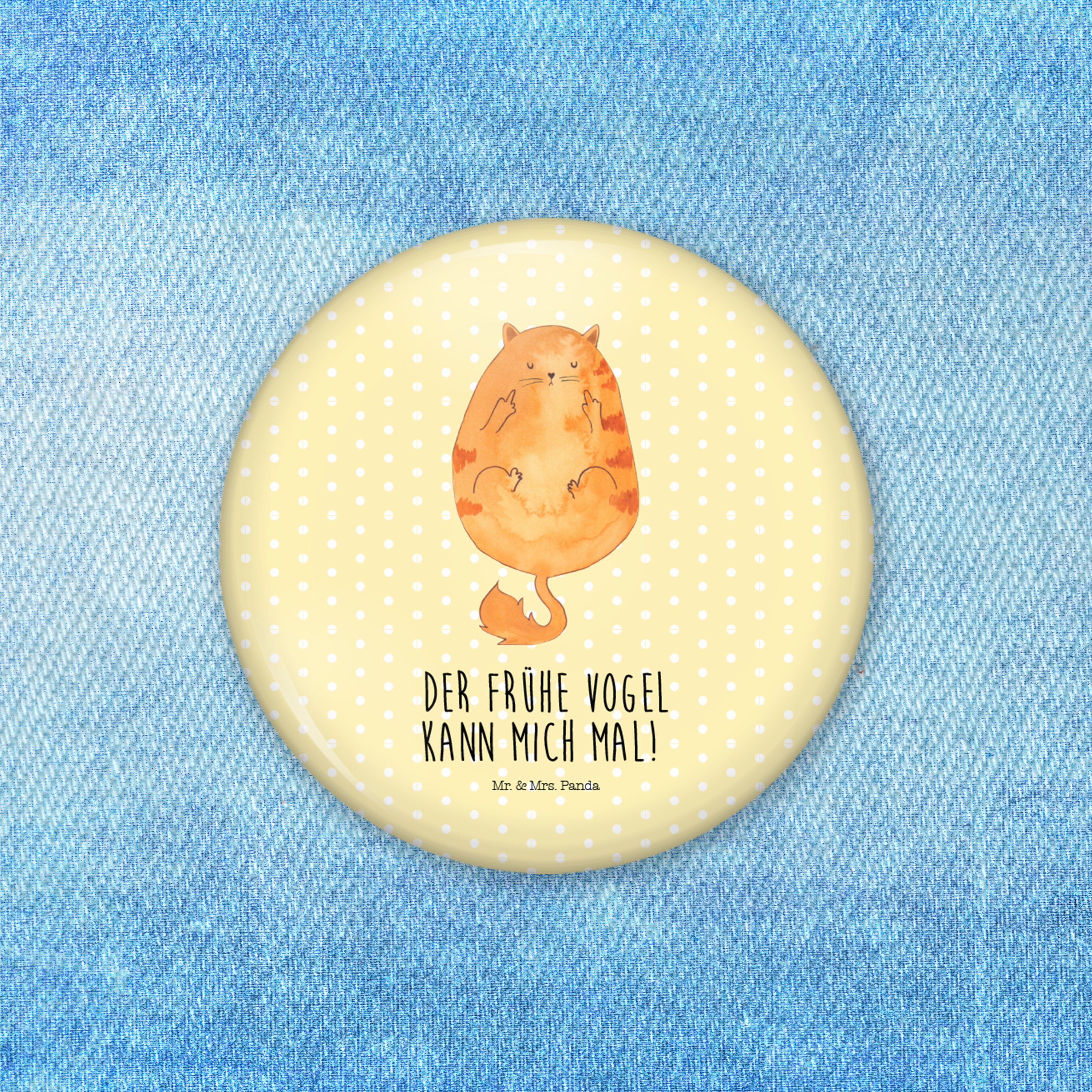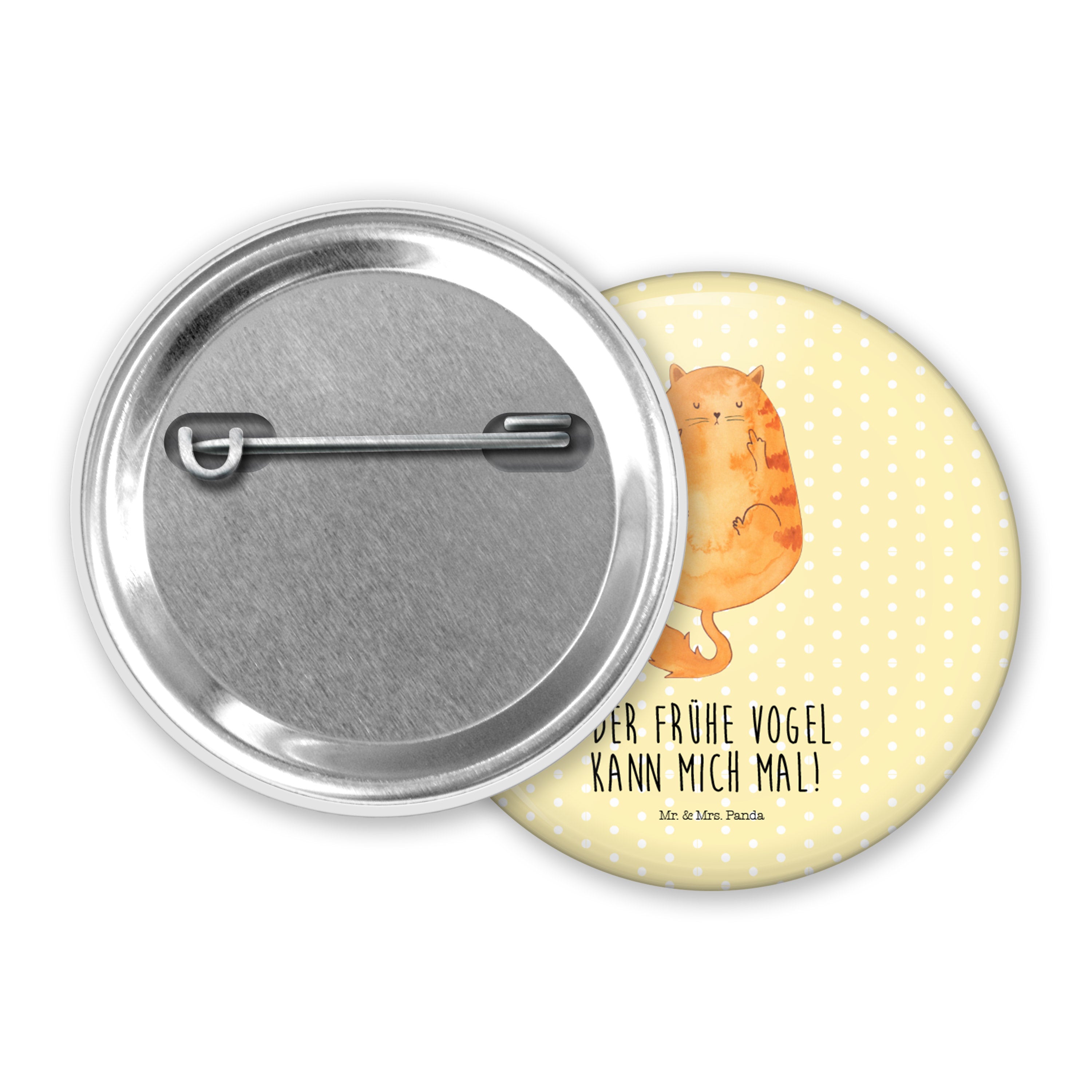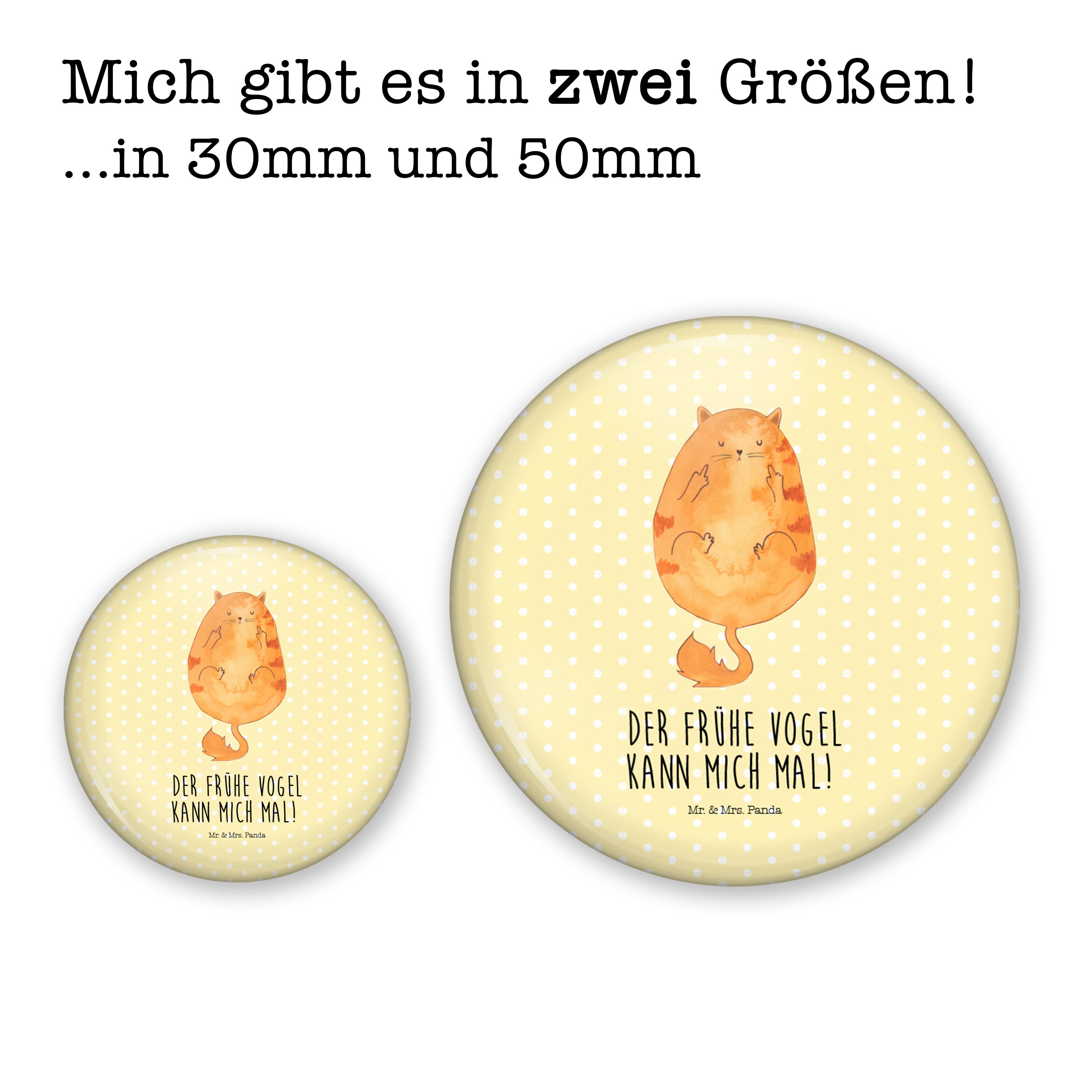 50mm Button Katze Frühaufsteher - mit Spruch - Weiß