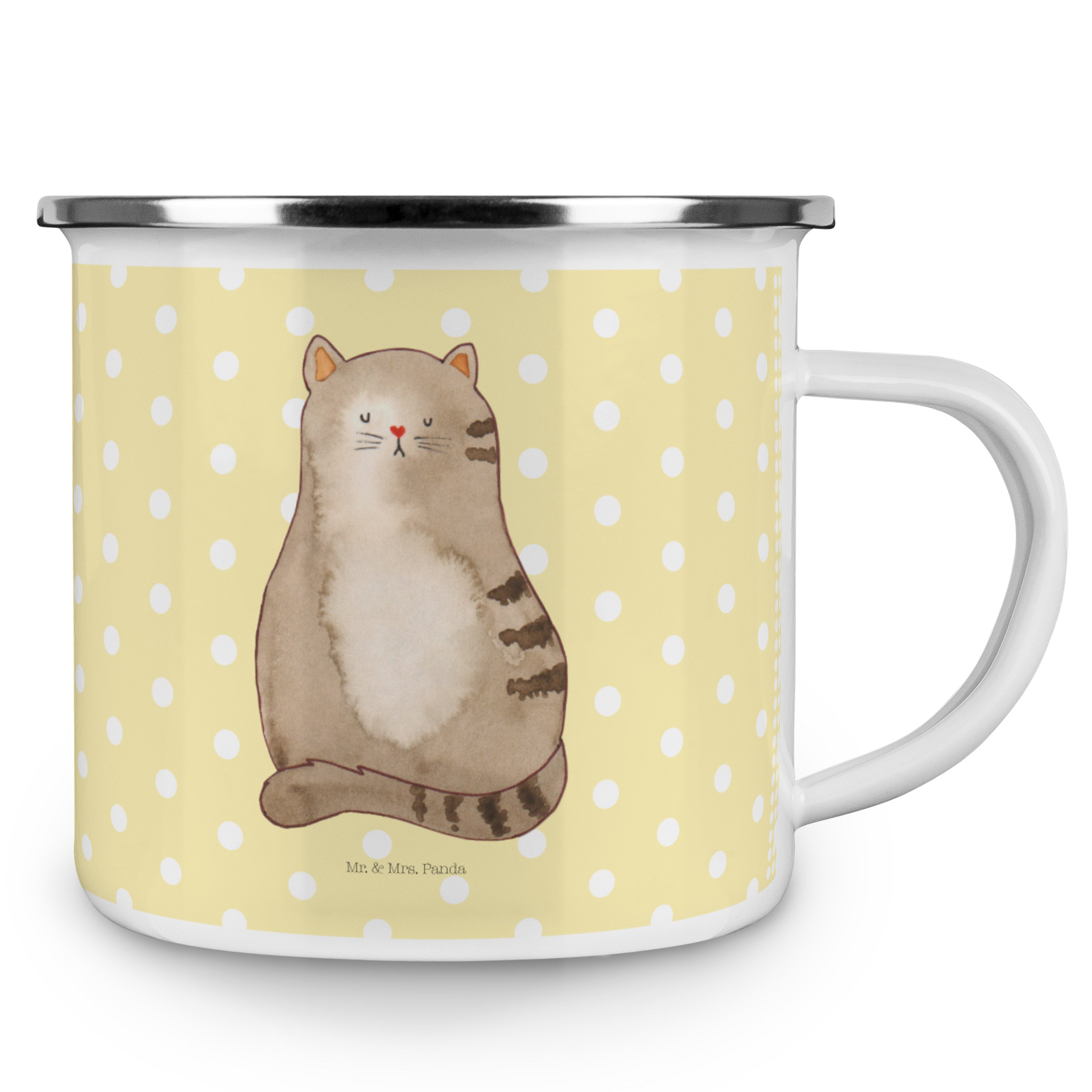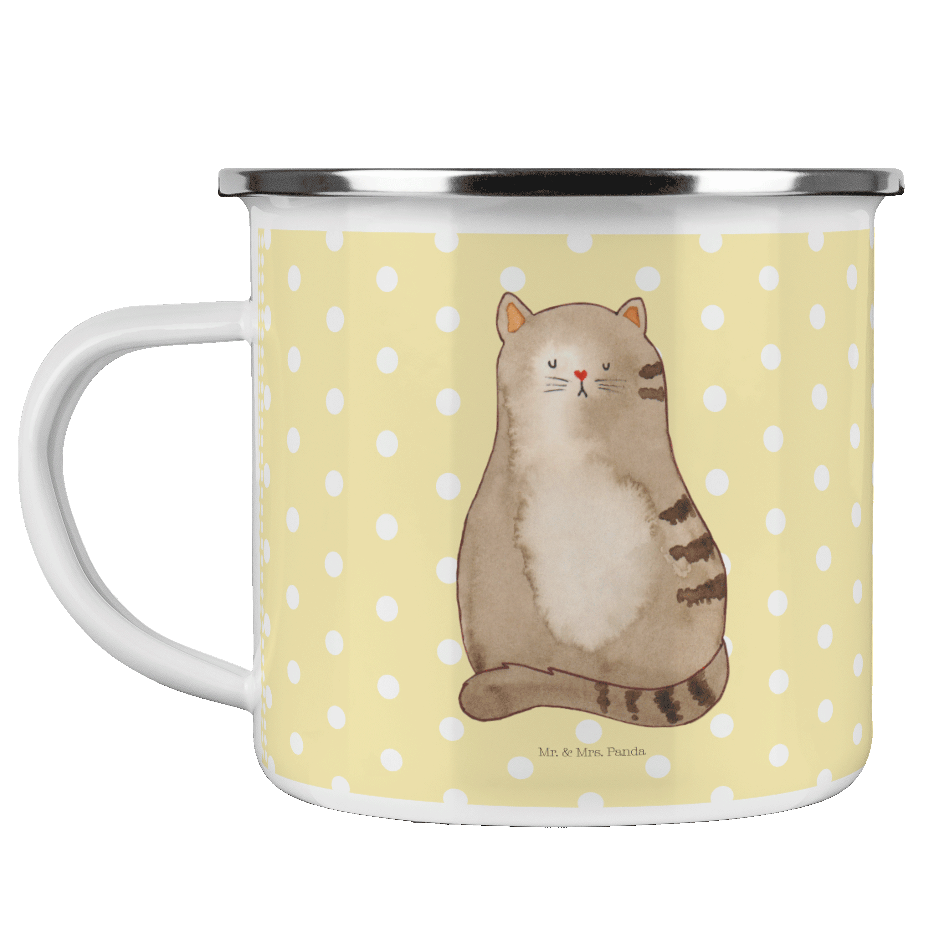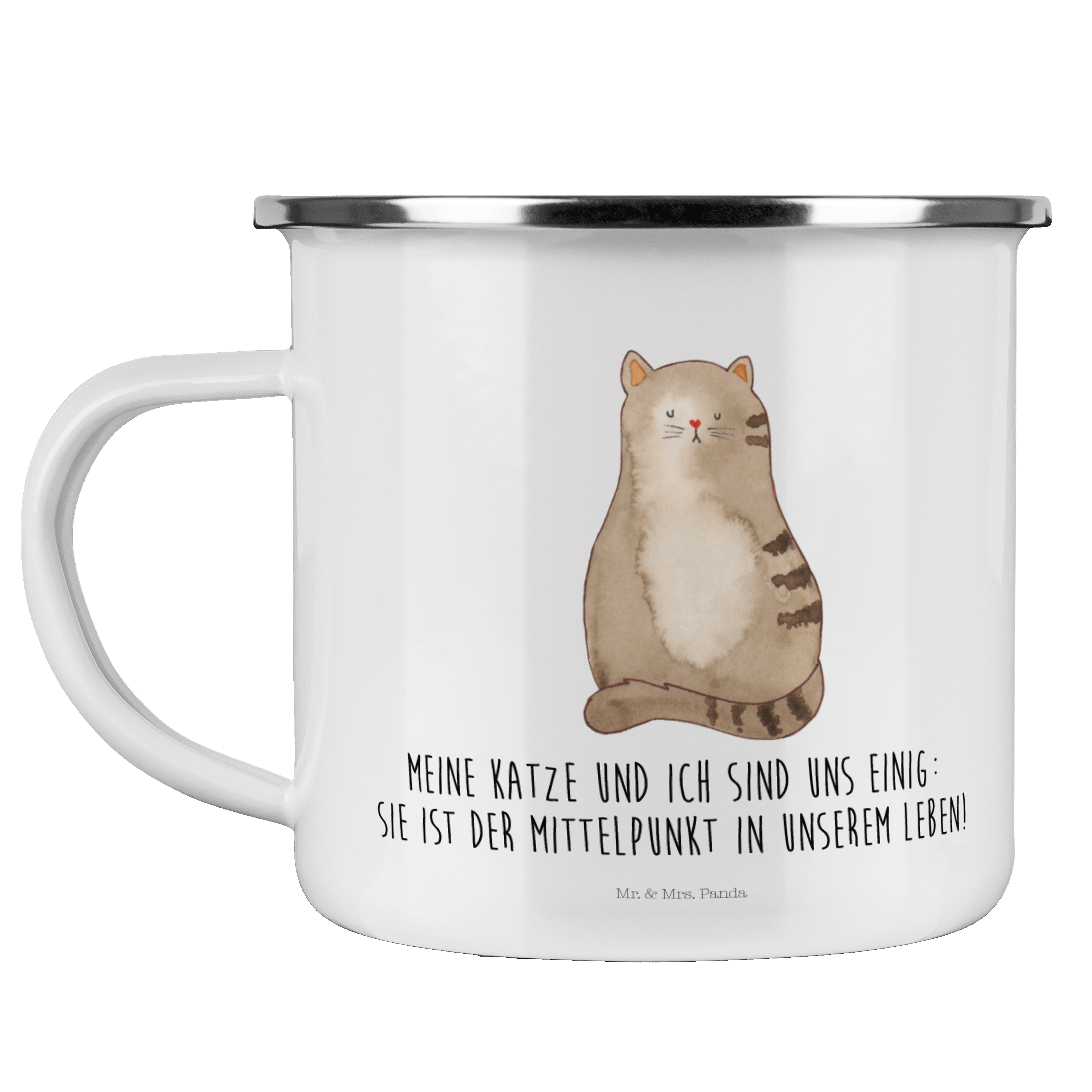 Camping Emaille Tasse Katze sitzend - mit Spruch - Weiß