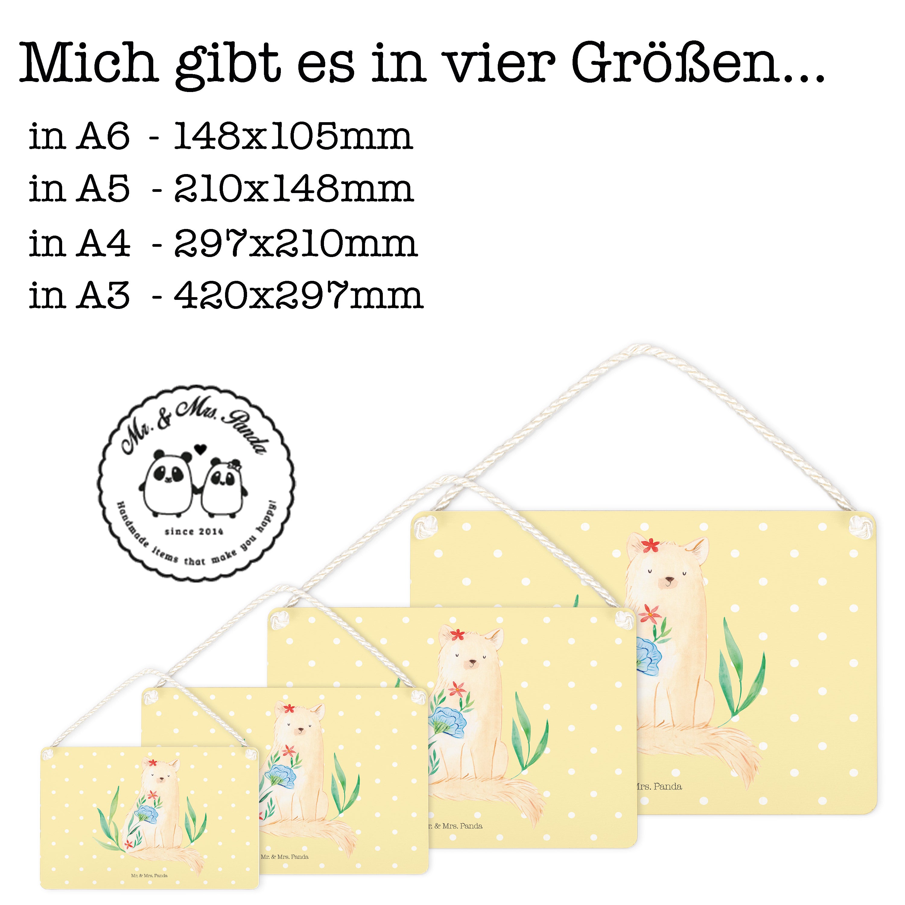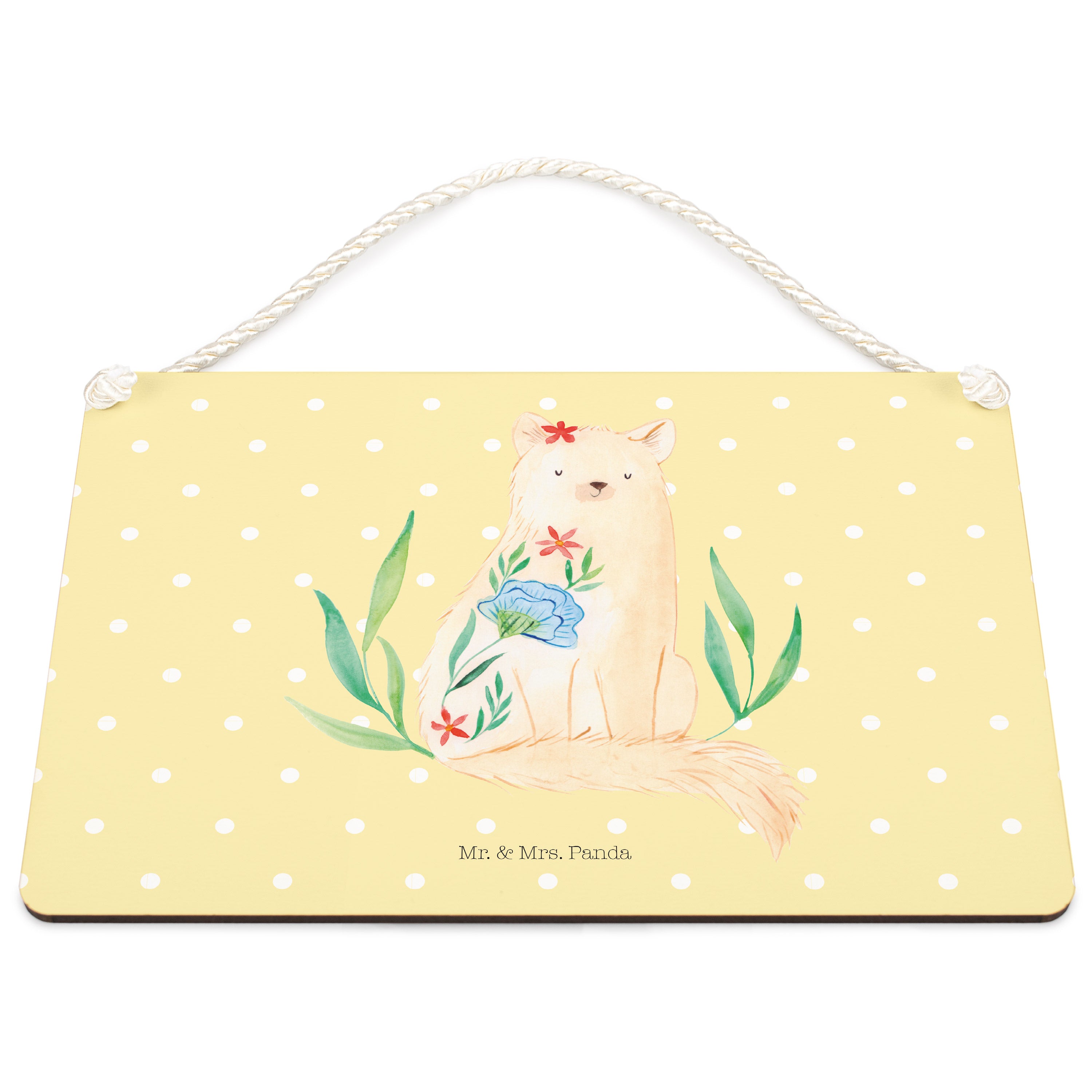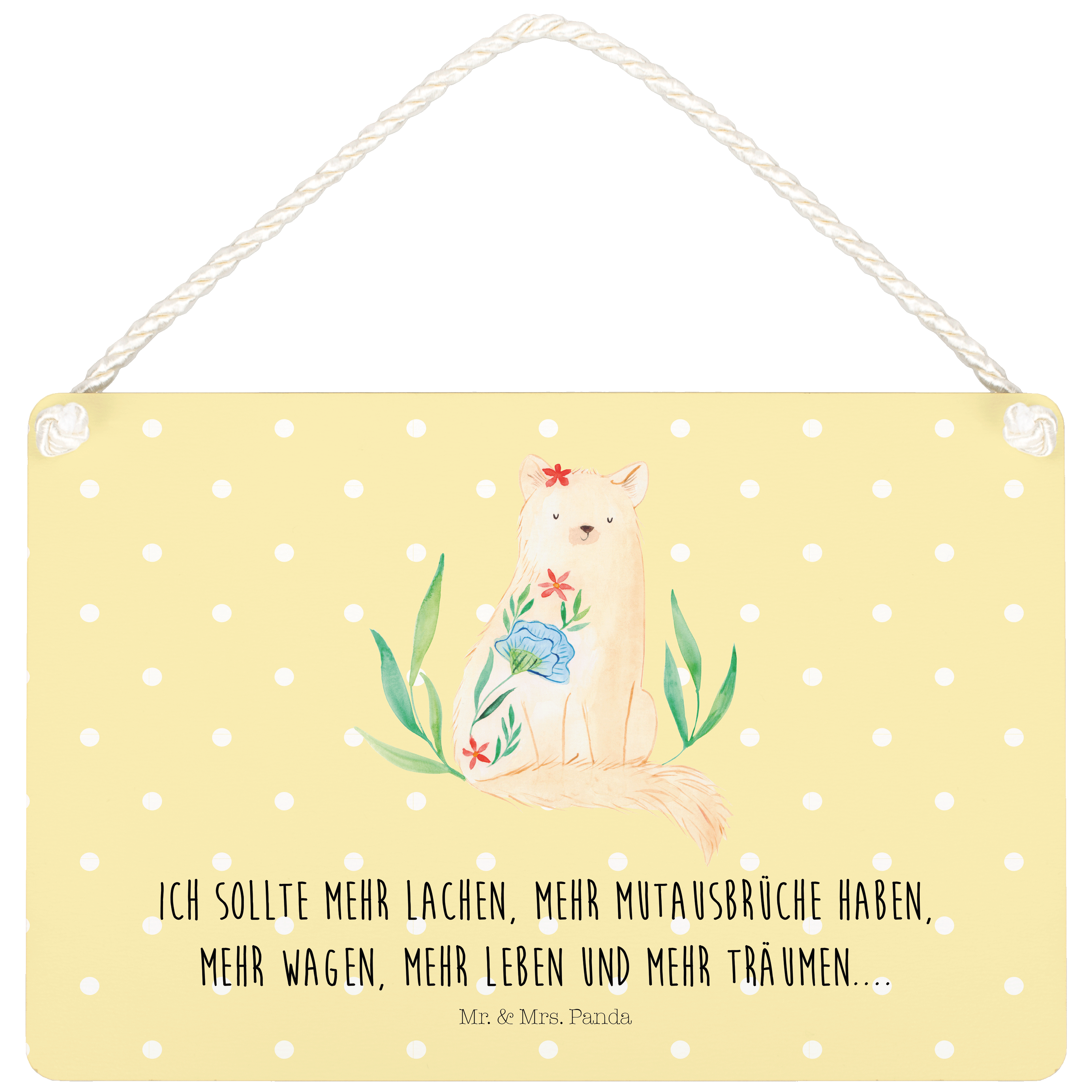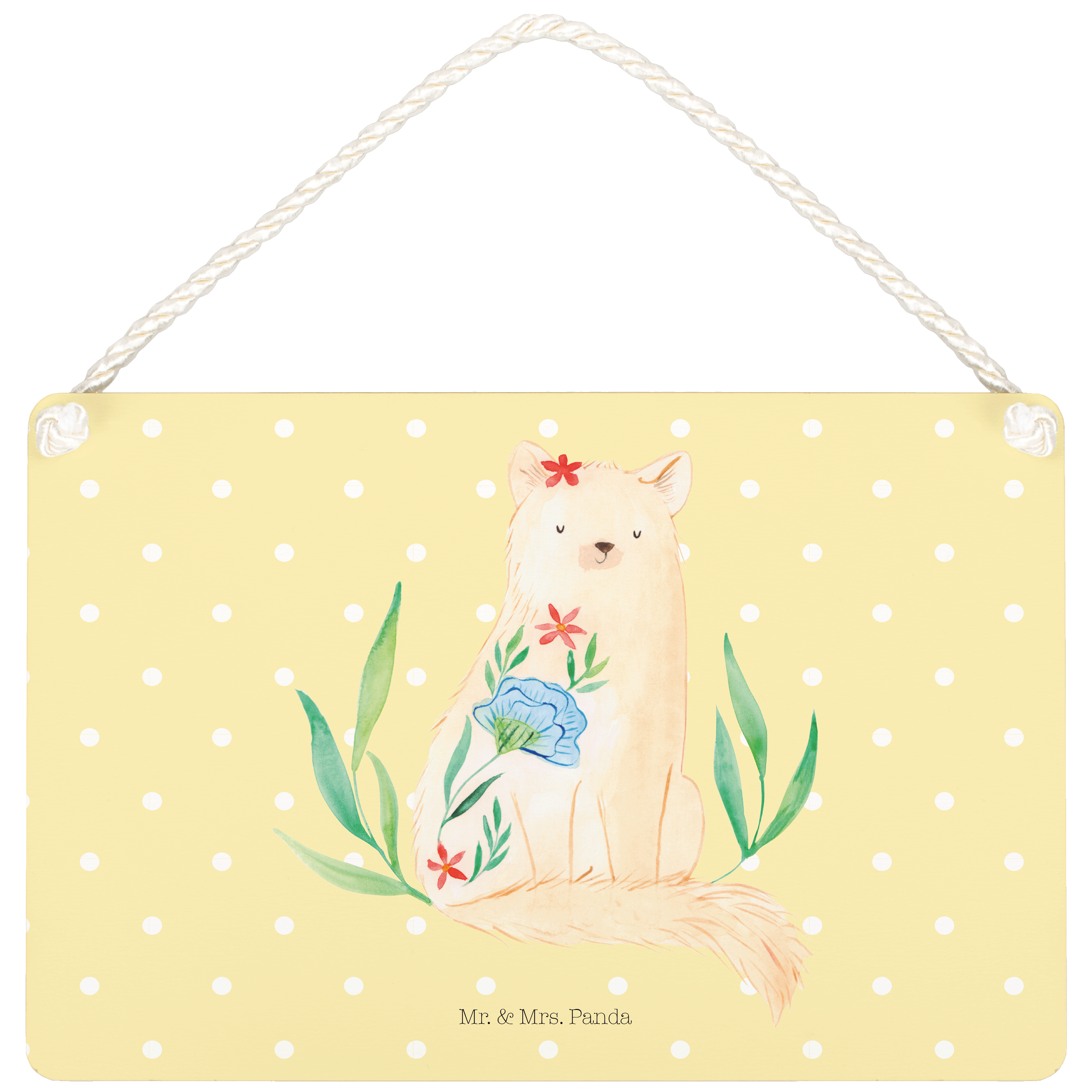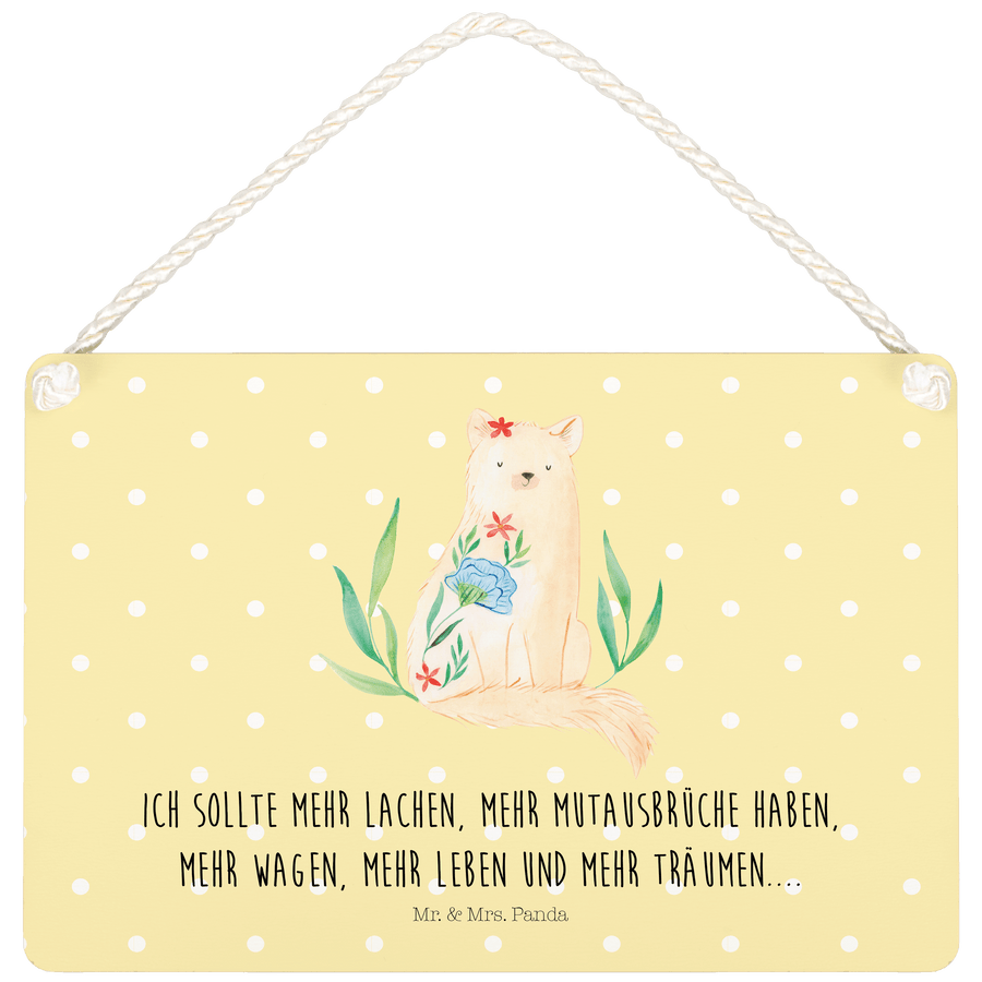 Deko Schild Katze Blumen - mit Spruch - Gelb Pastell