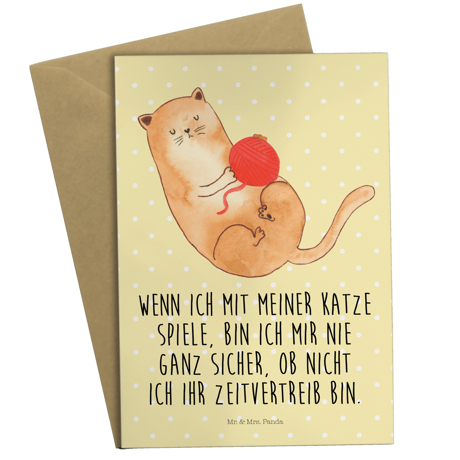 Grußkarte Katzen Wollknäul - mit Spruch - Gelb Pastell