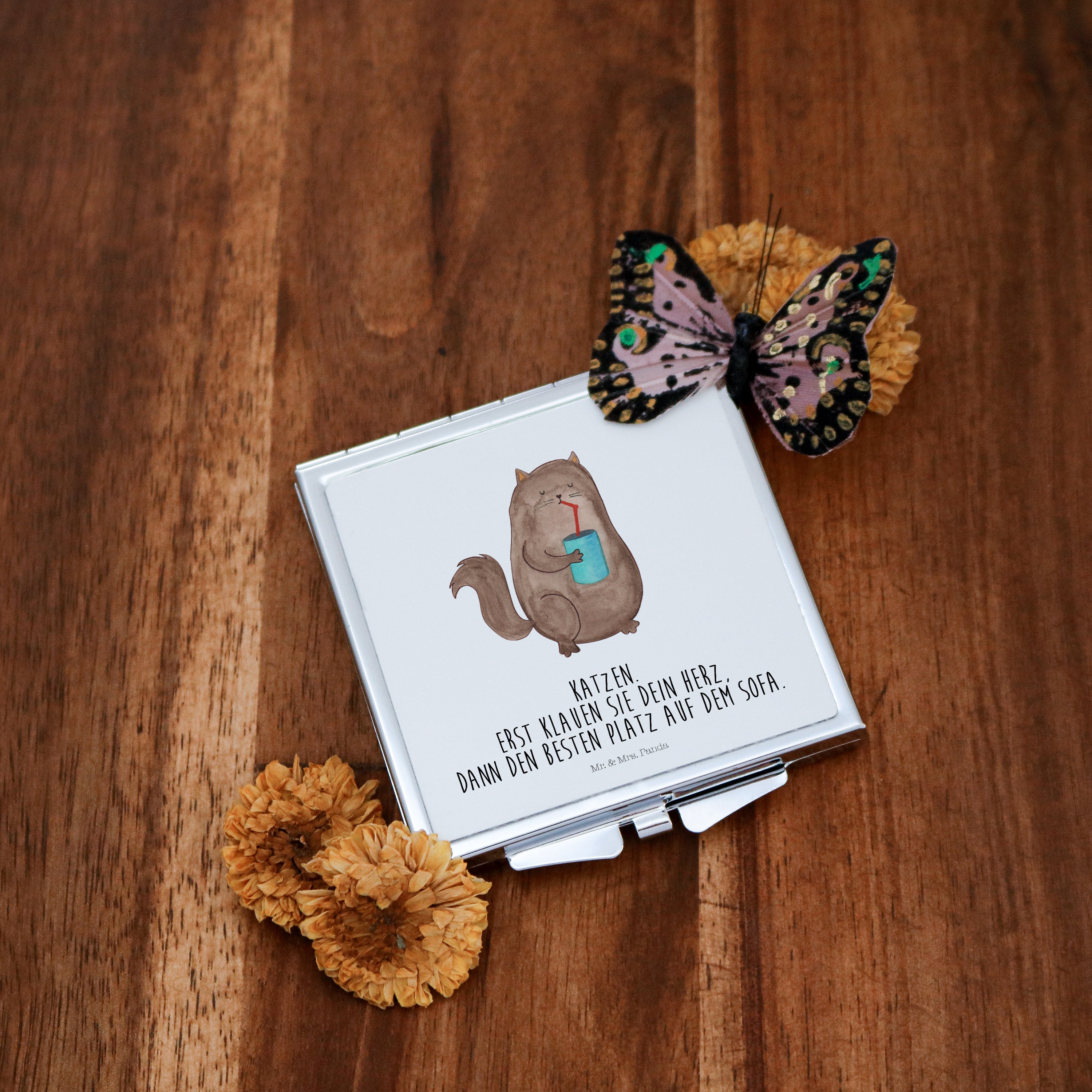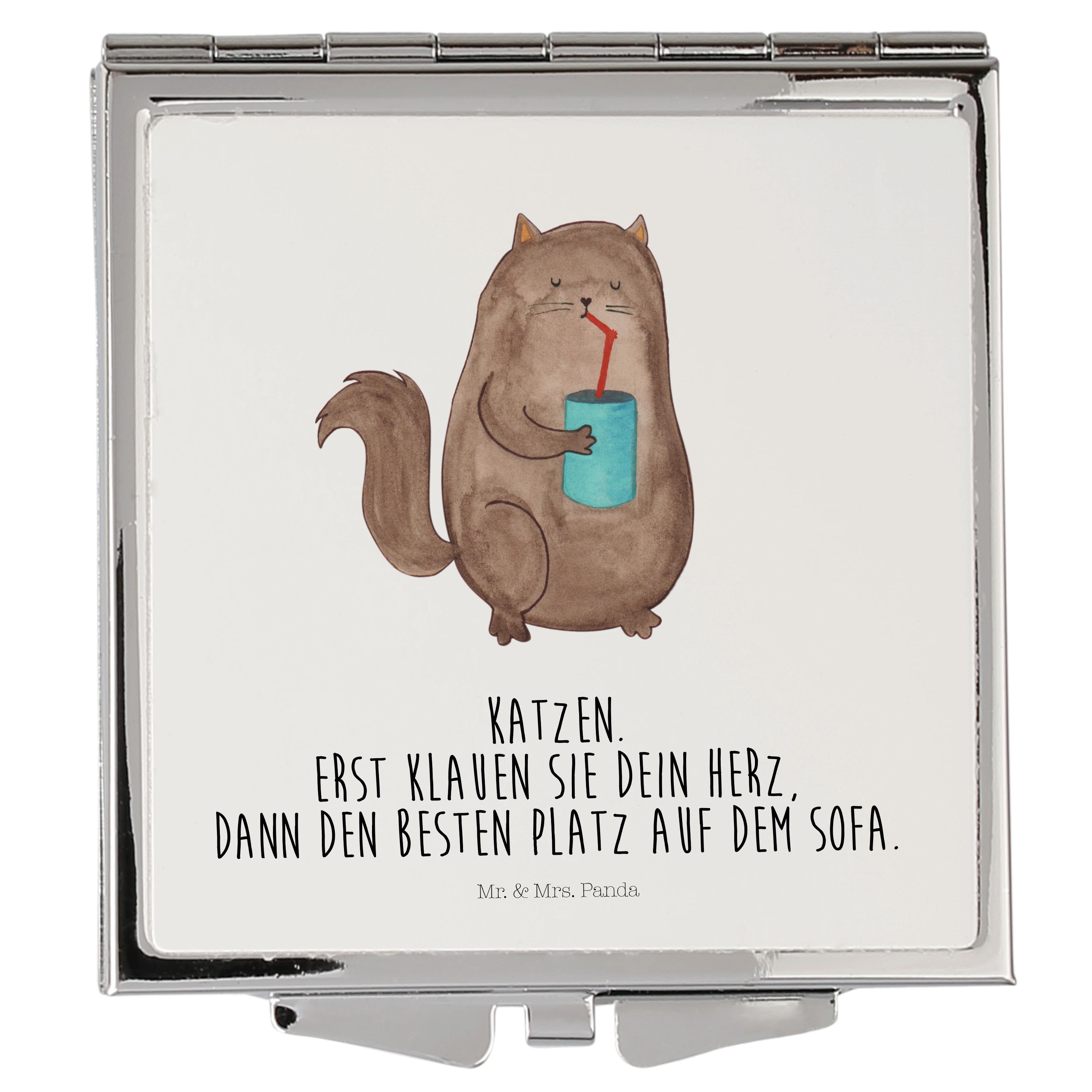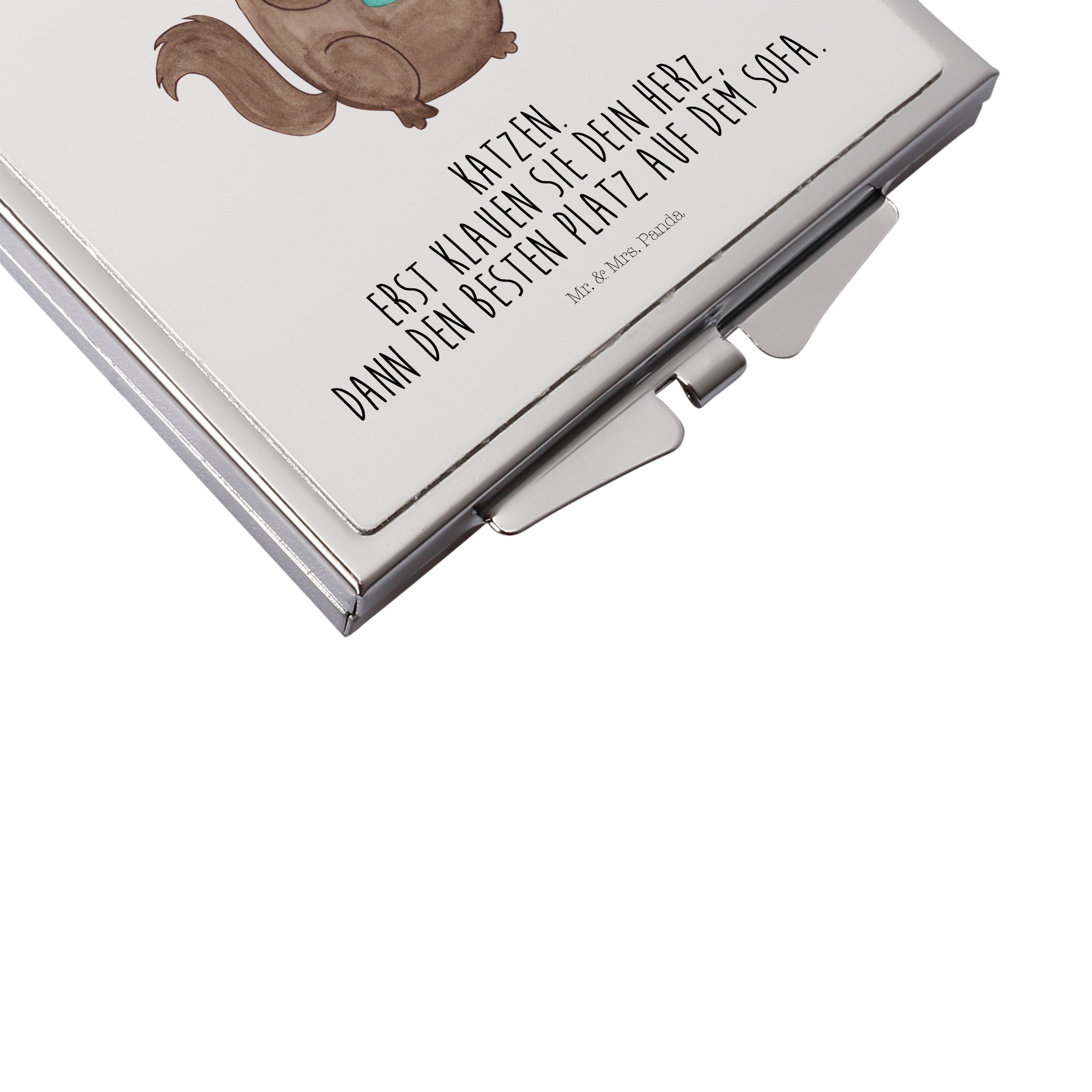 Handtaschenspiegel quadratisch Katze Dose - mit Spruch - Weiß