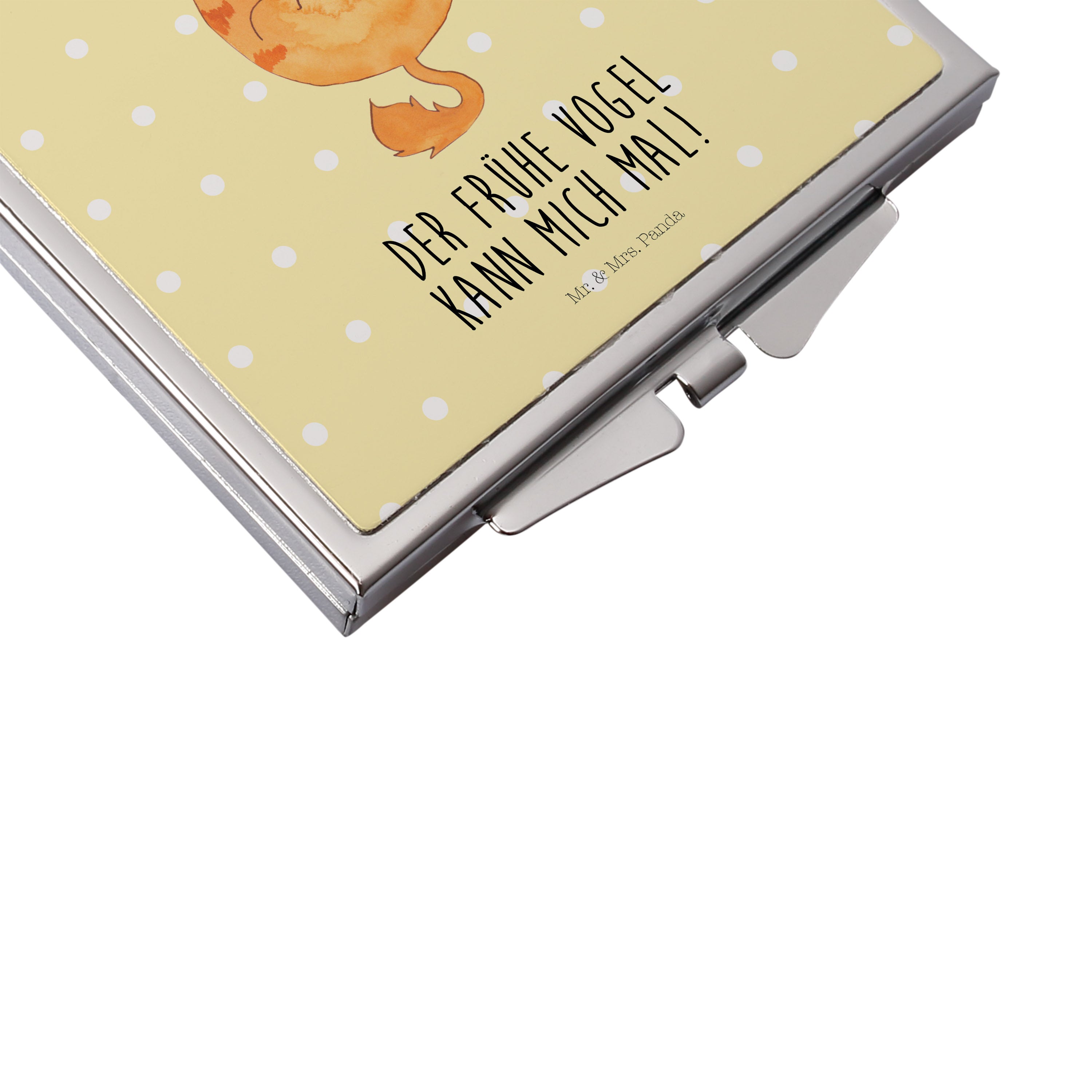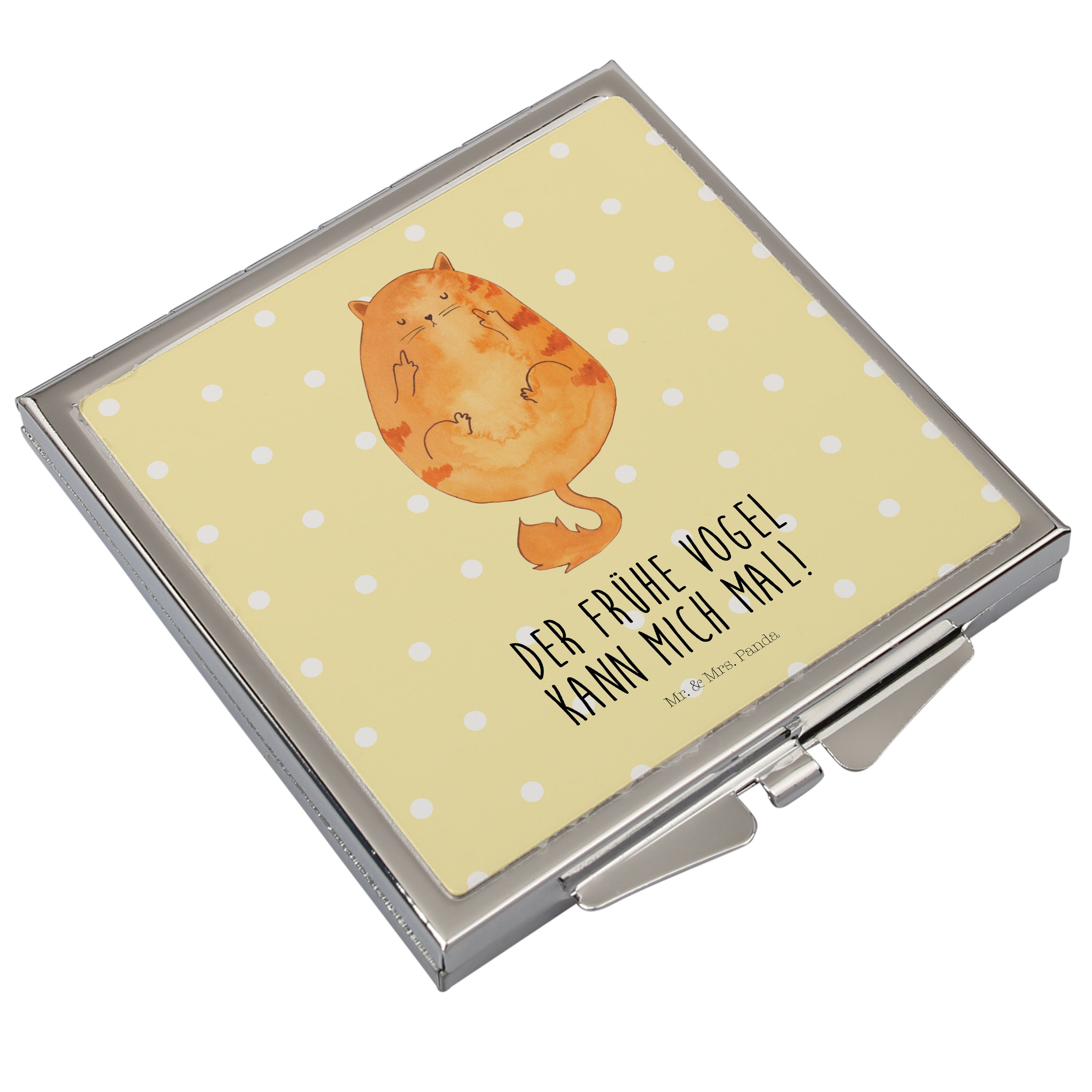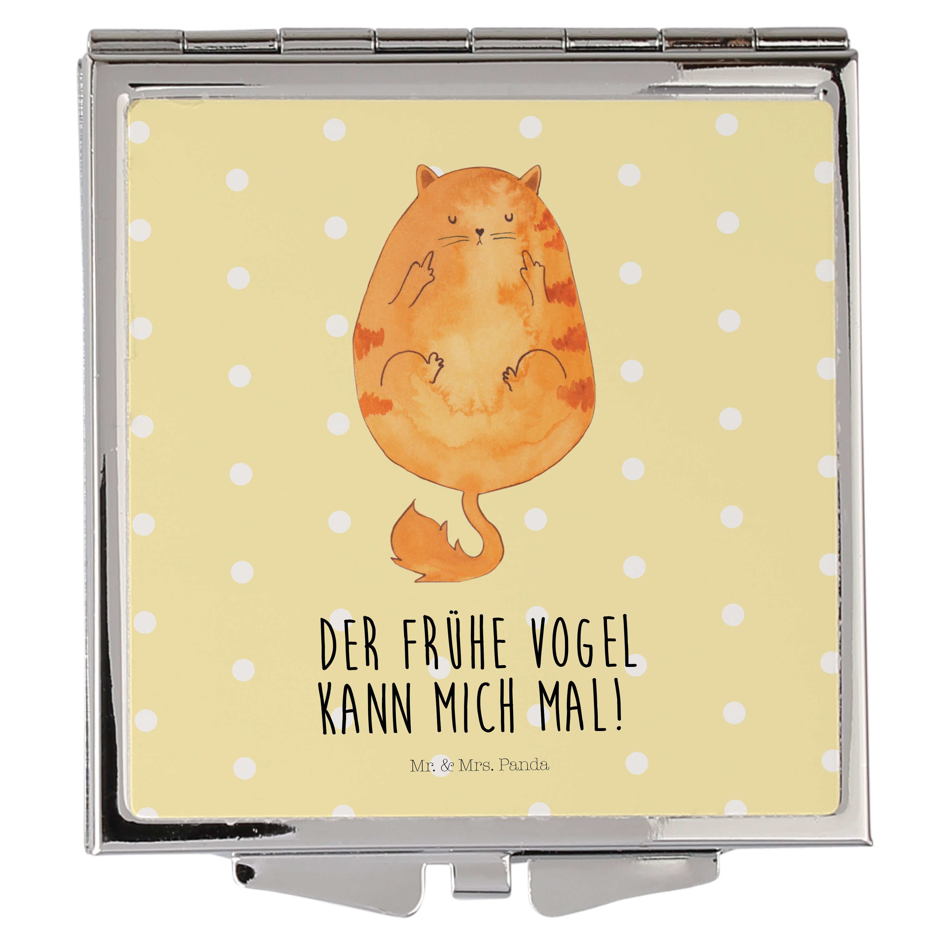 Handtaschenspiegel quadratisch Katze Frühaufsteher - mit Spruch - Gelb Pastell