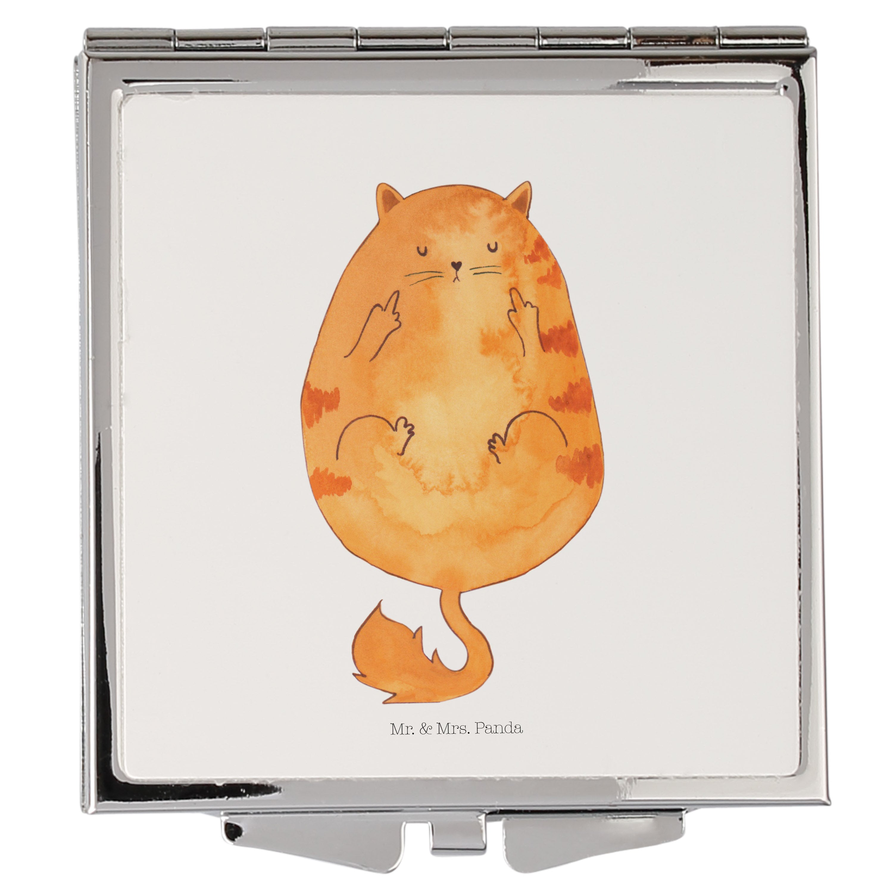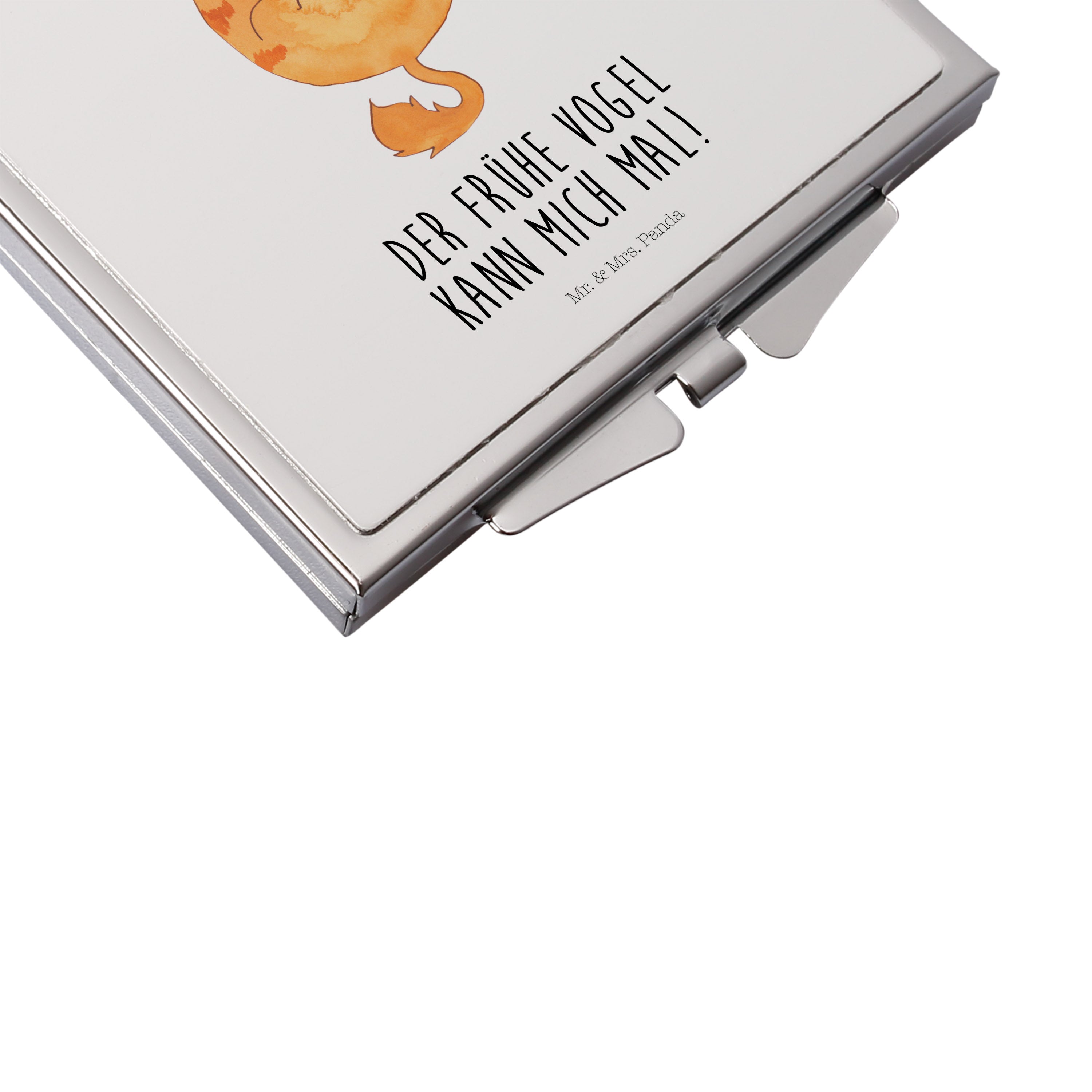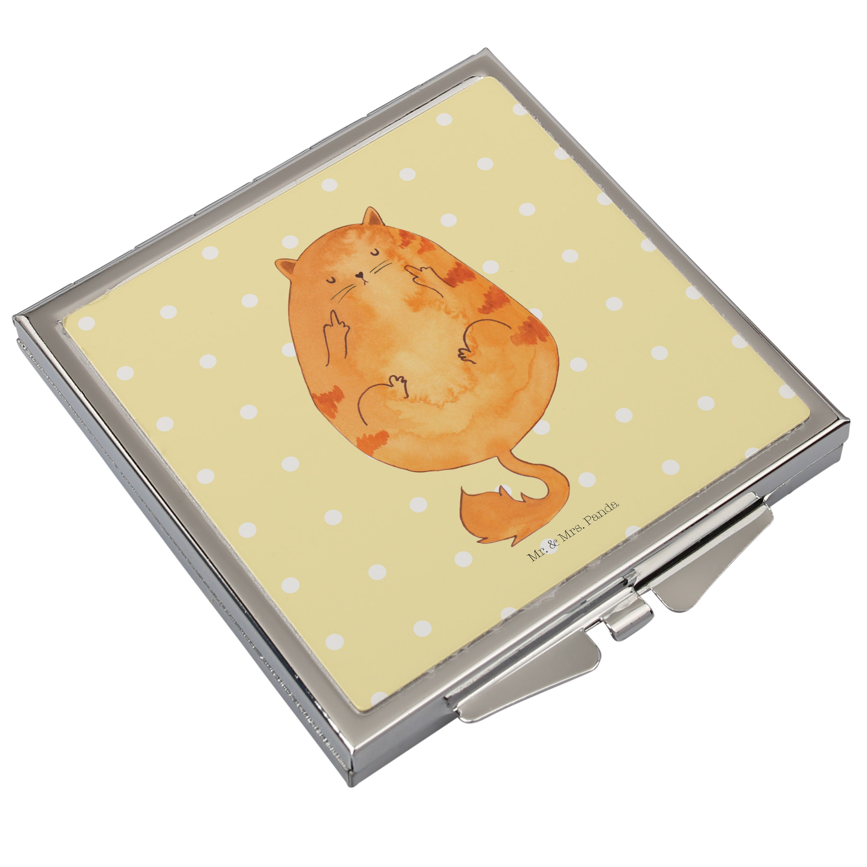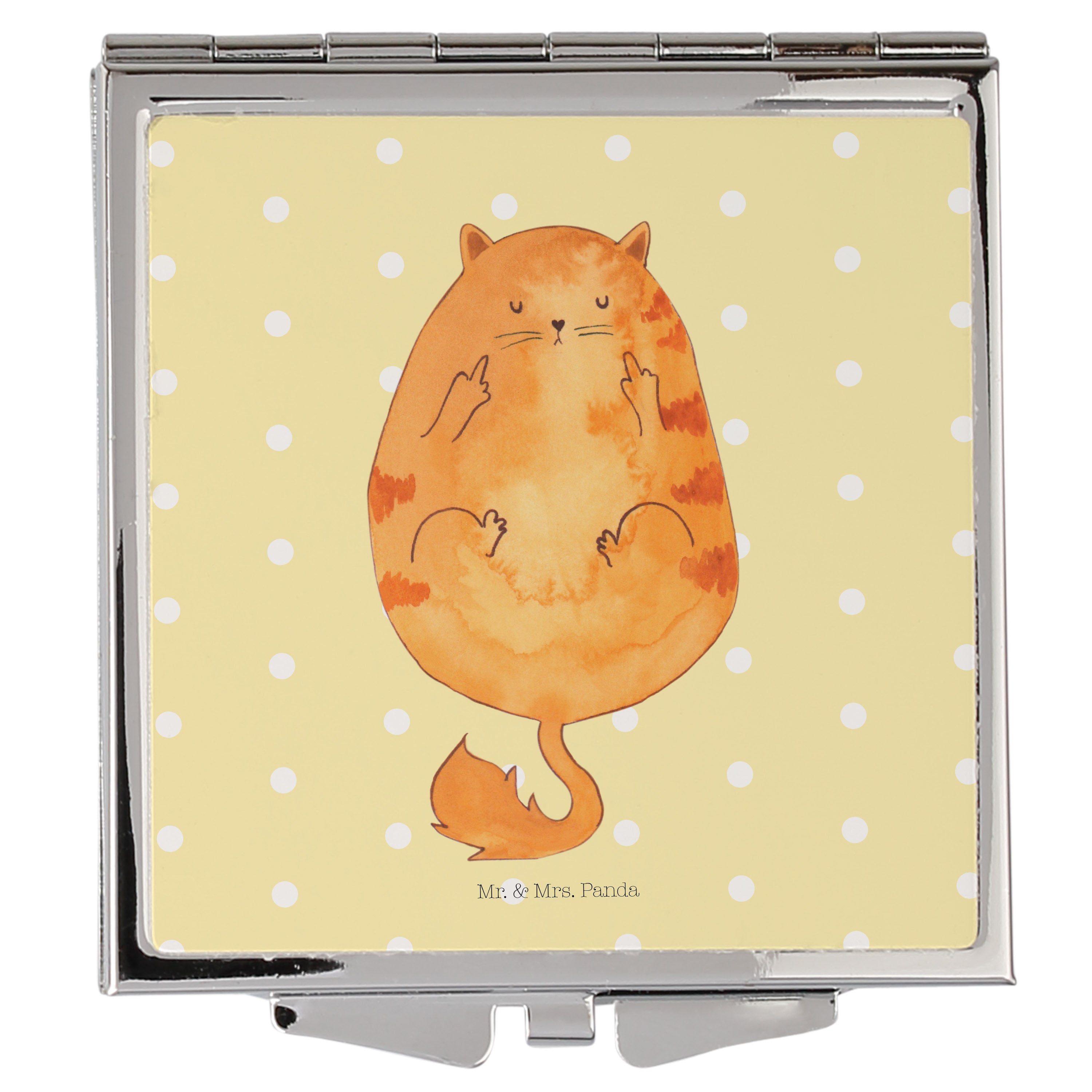 Handtaschenspiegel quadratisch Katze Frühaufsteher - mit Spruch - Gelb Pastell
