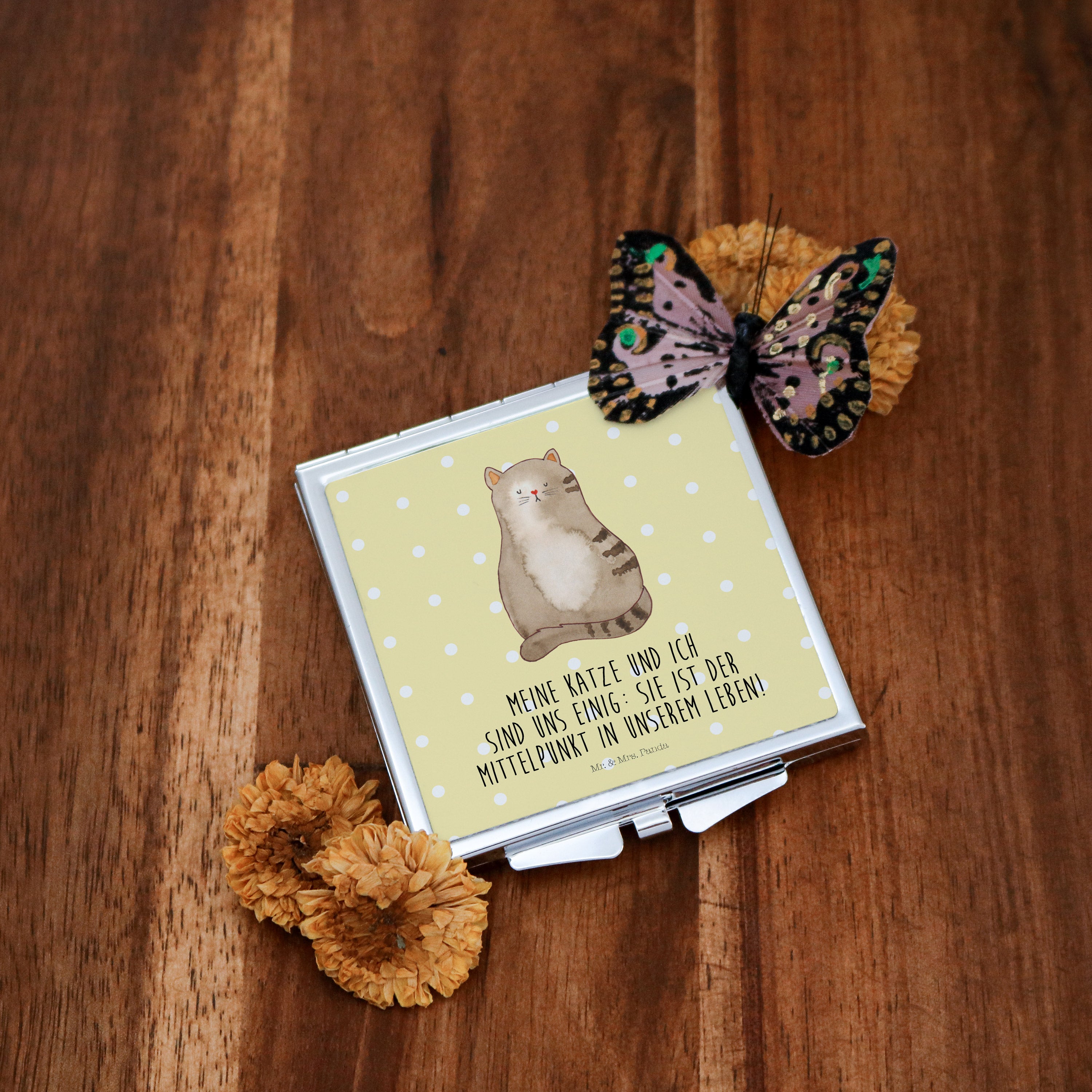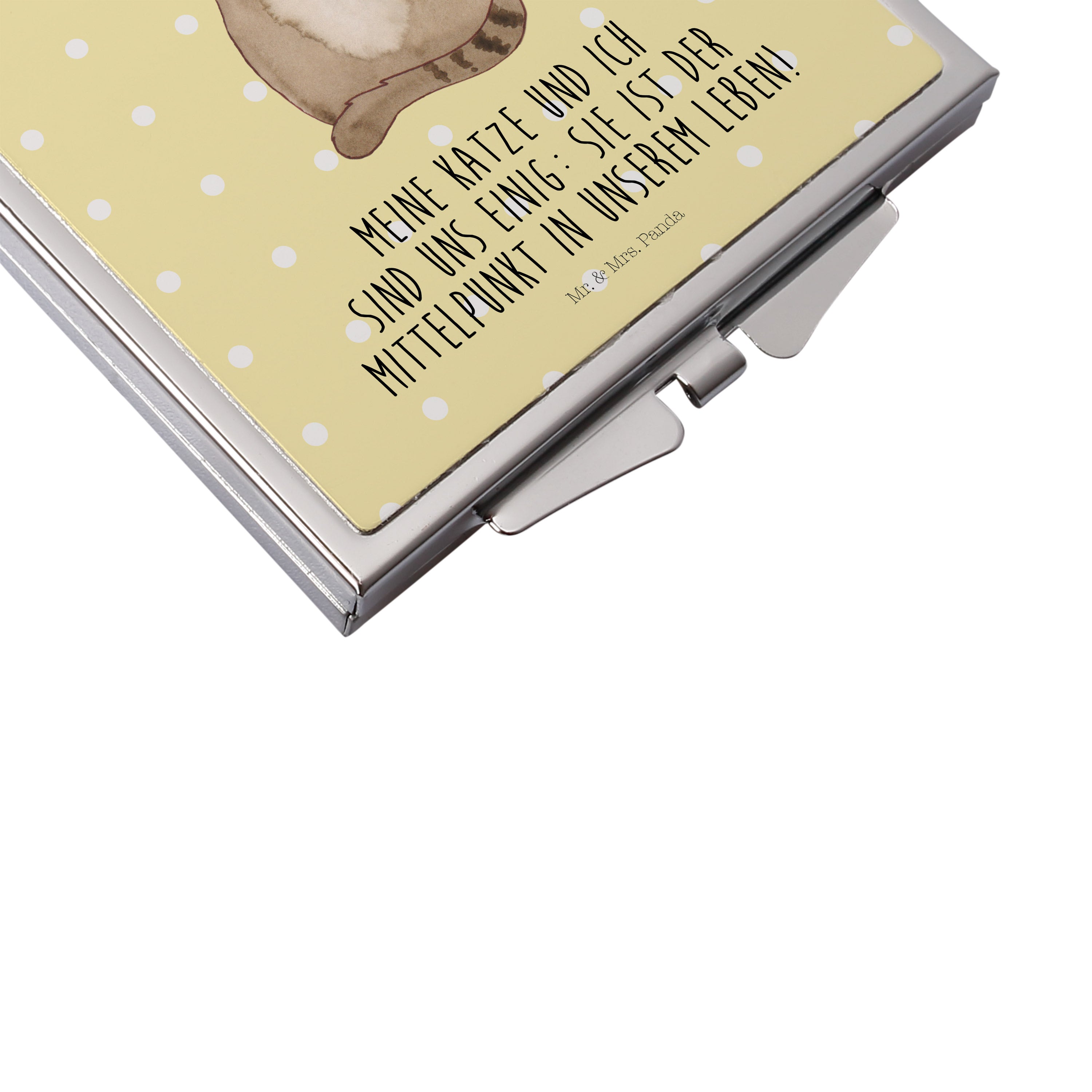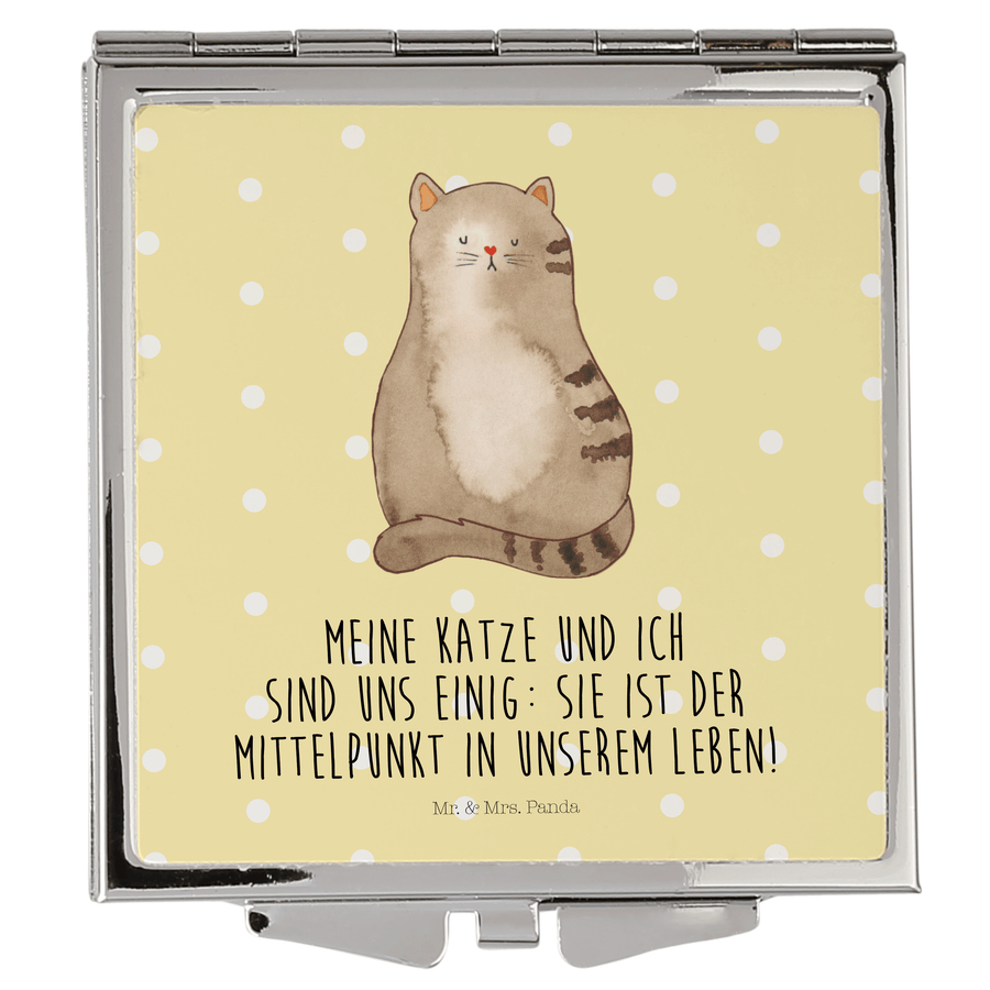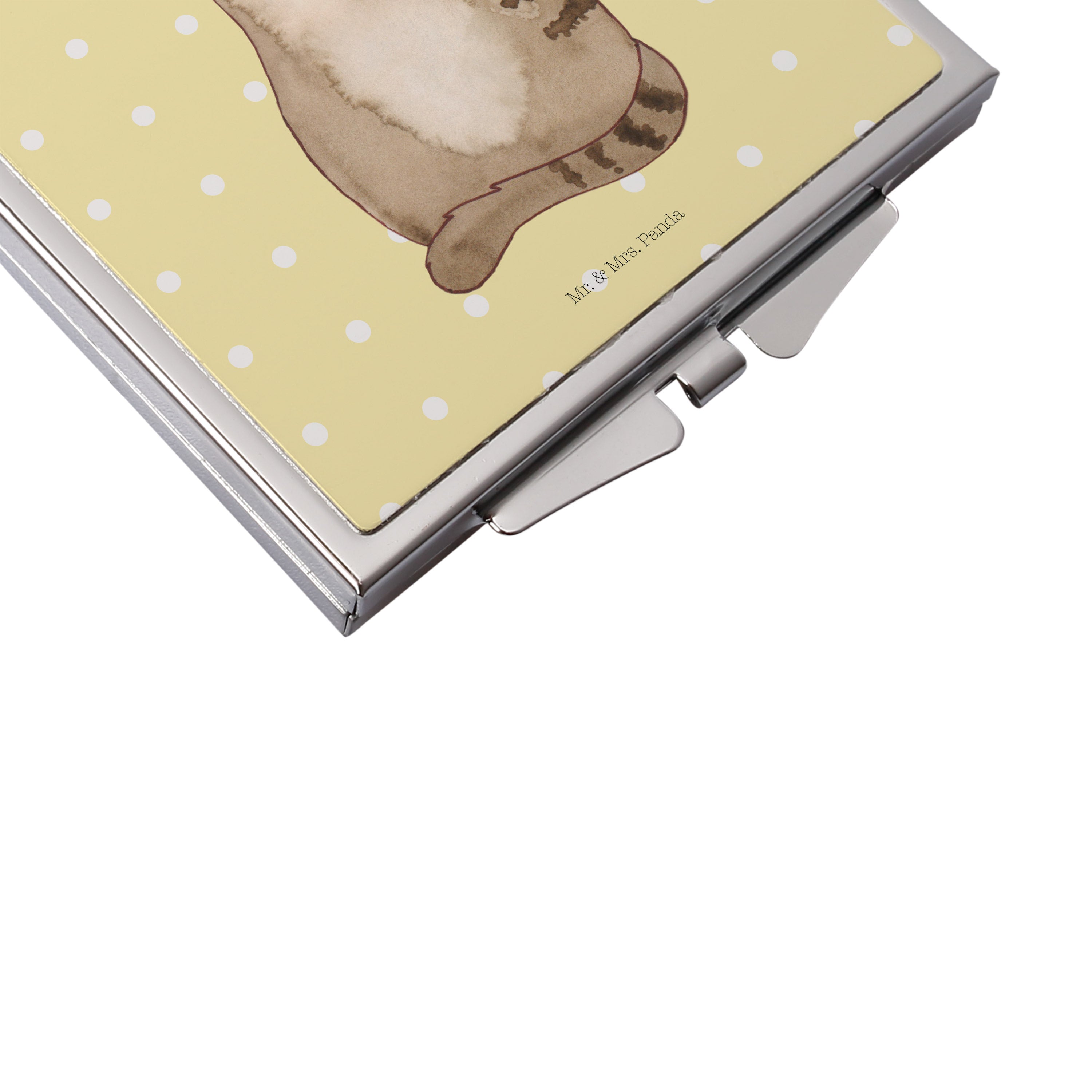 Handtaschenspiegel quadratisch Katze sitzend - mit Spruch - Gelb Pastell