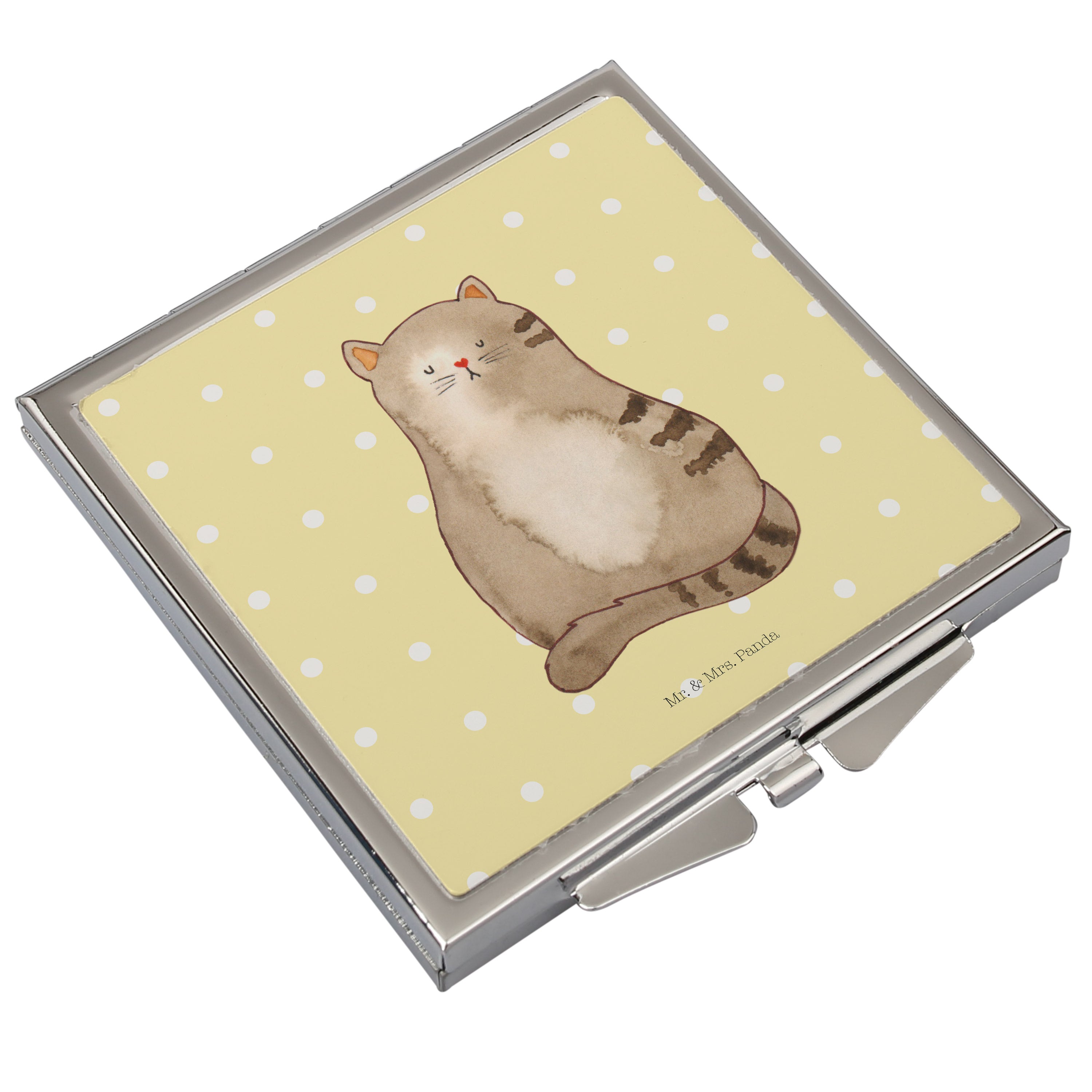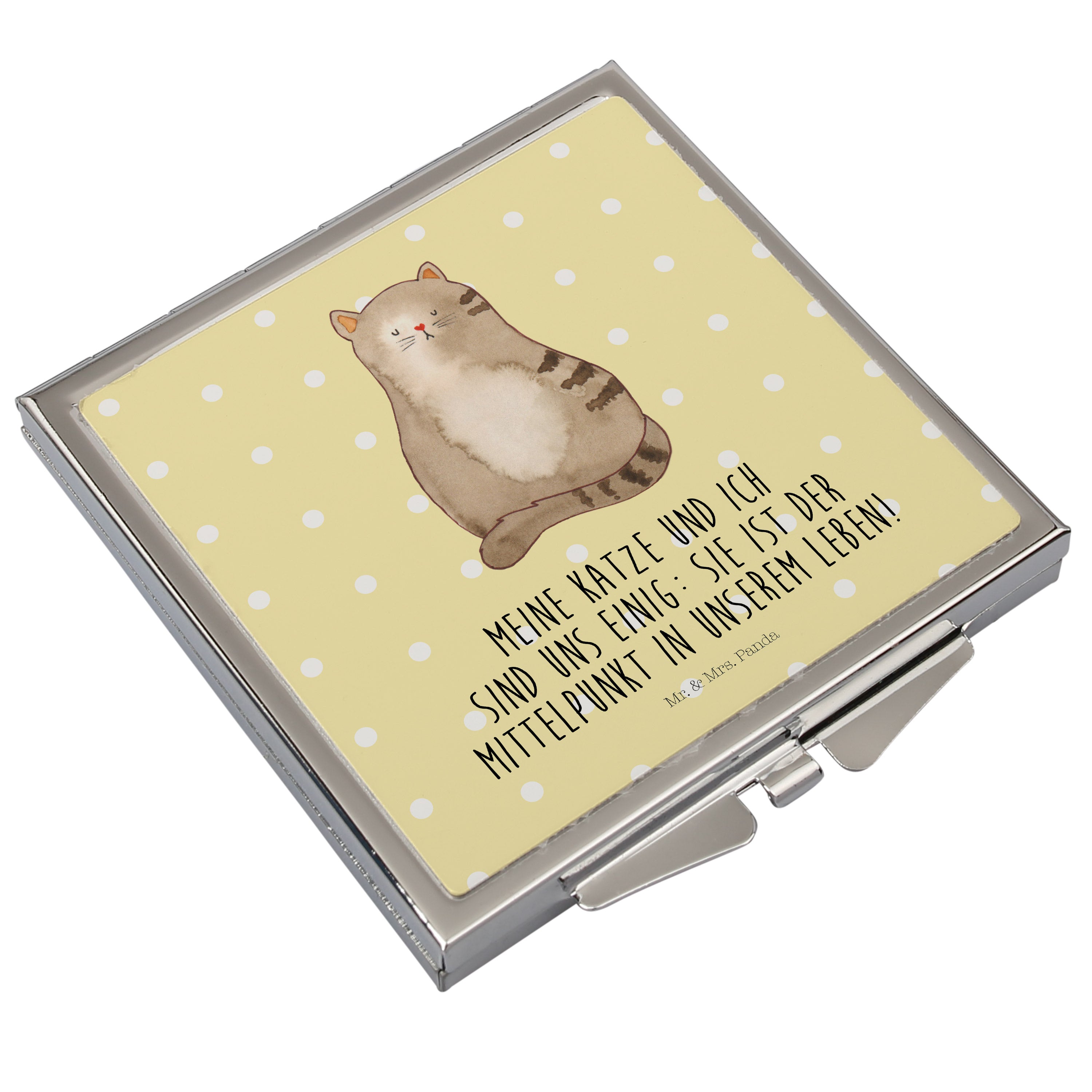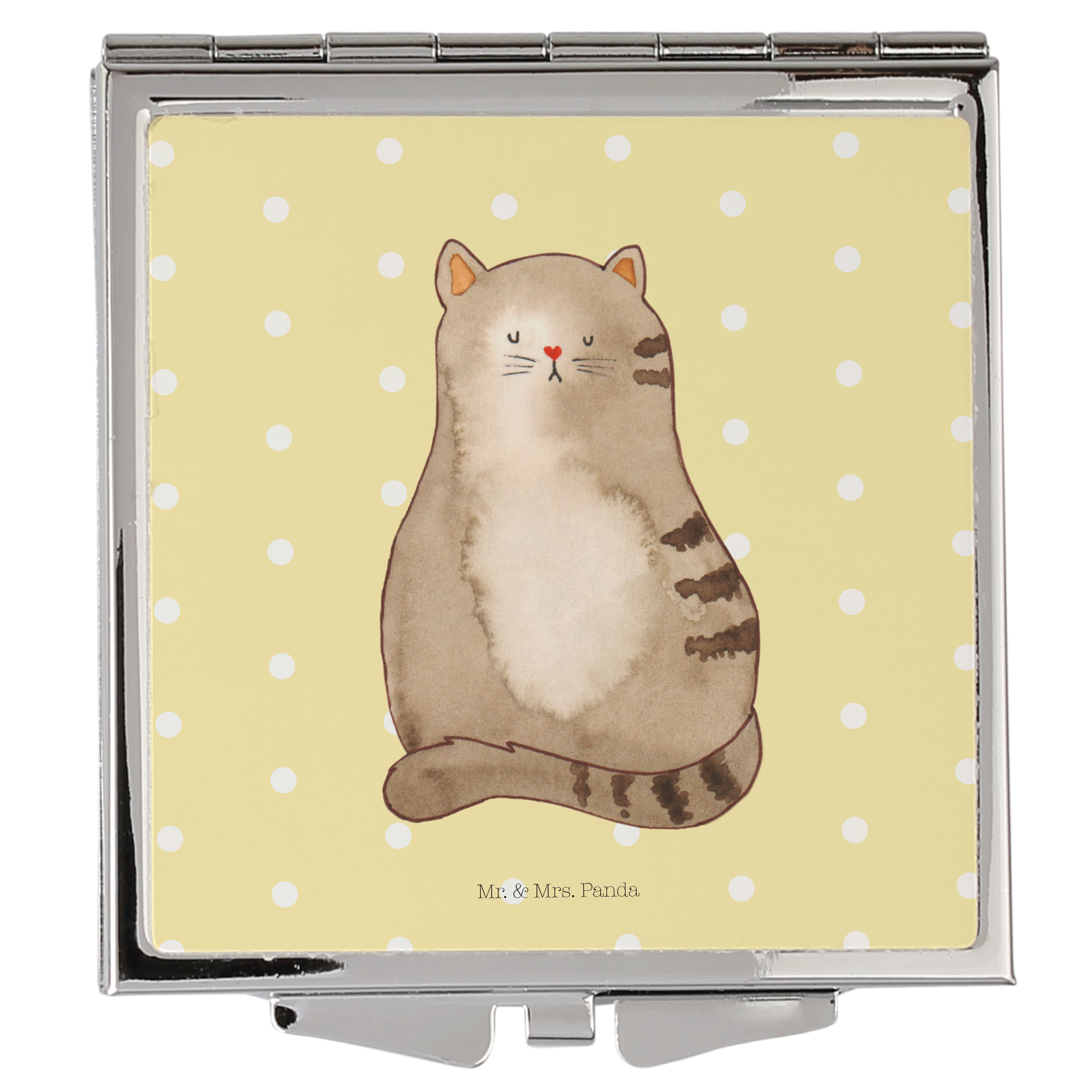 Handtaschenspiegel quadratisch Katze sitzend - mit Spruch - Gelb Pastell