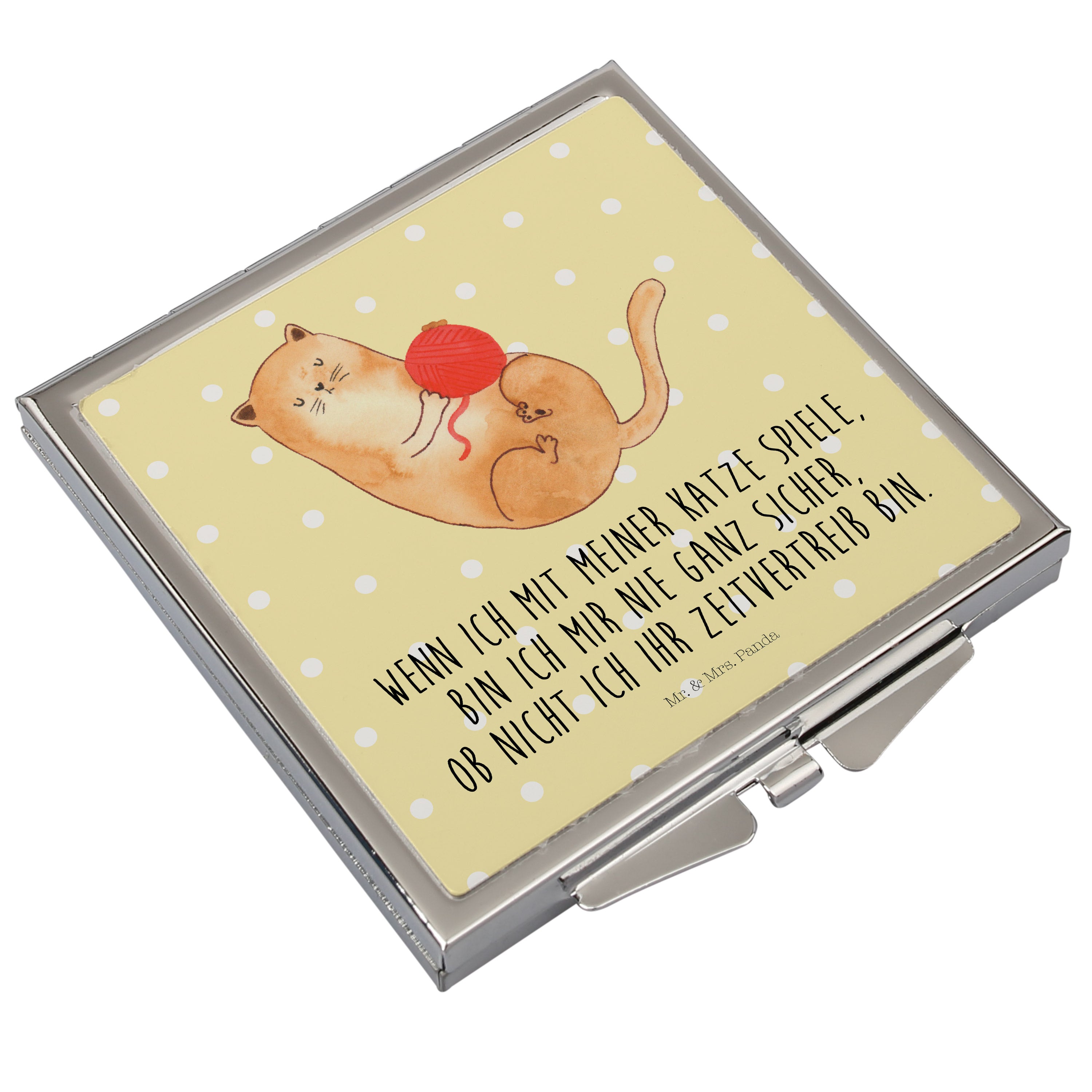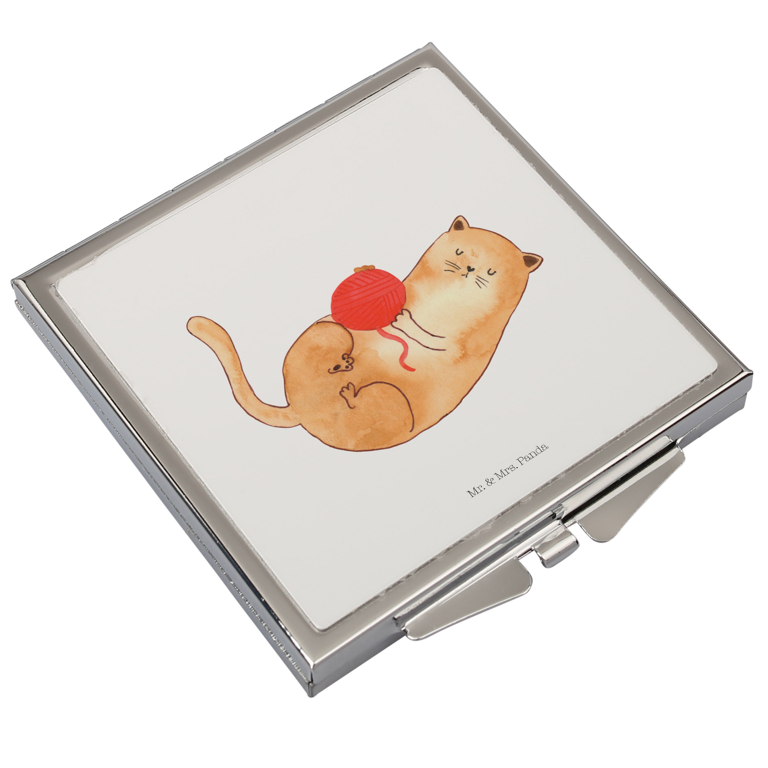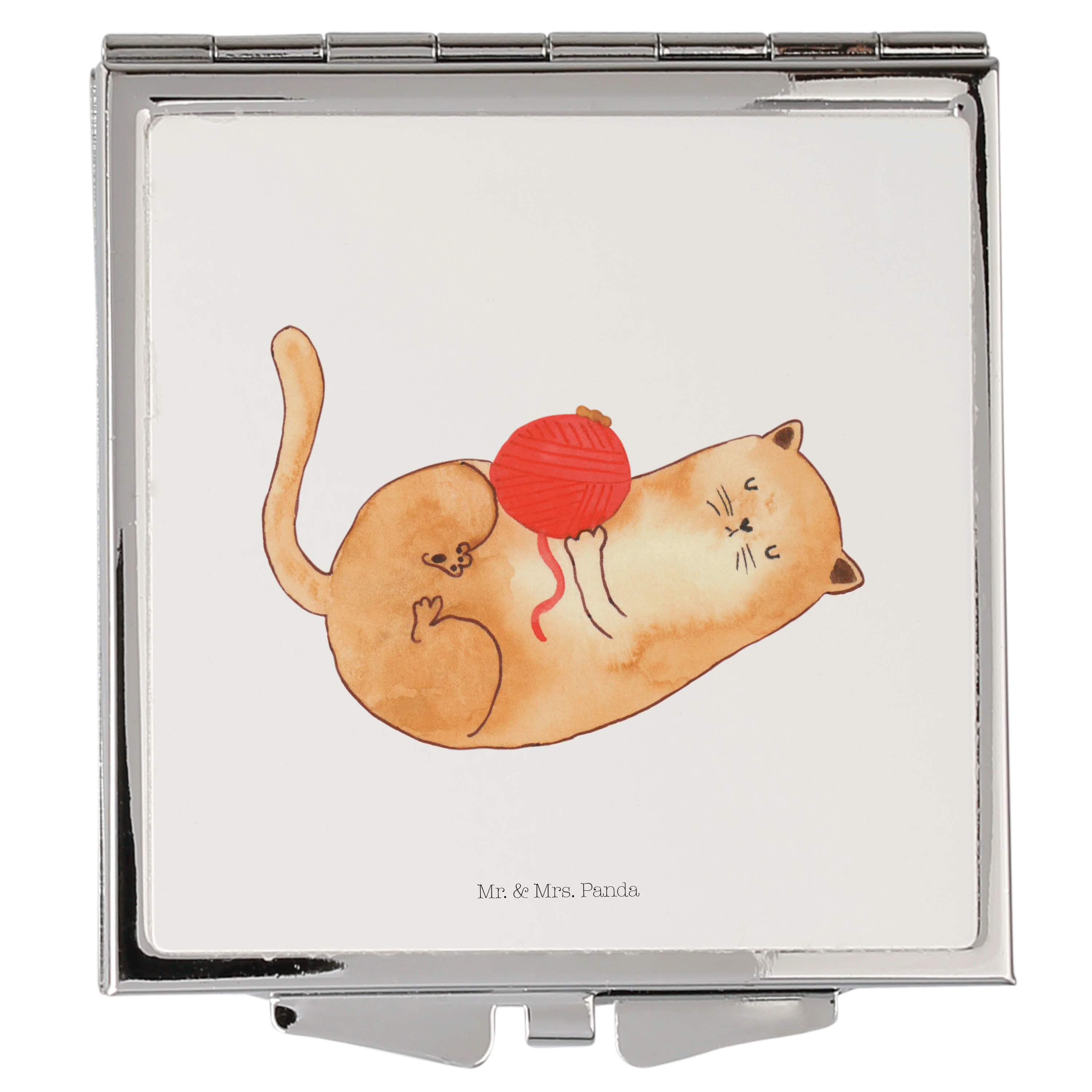 Handtaschenspiegel quadratisch Katzen Wollknäul - mit Spruch - Weiß