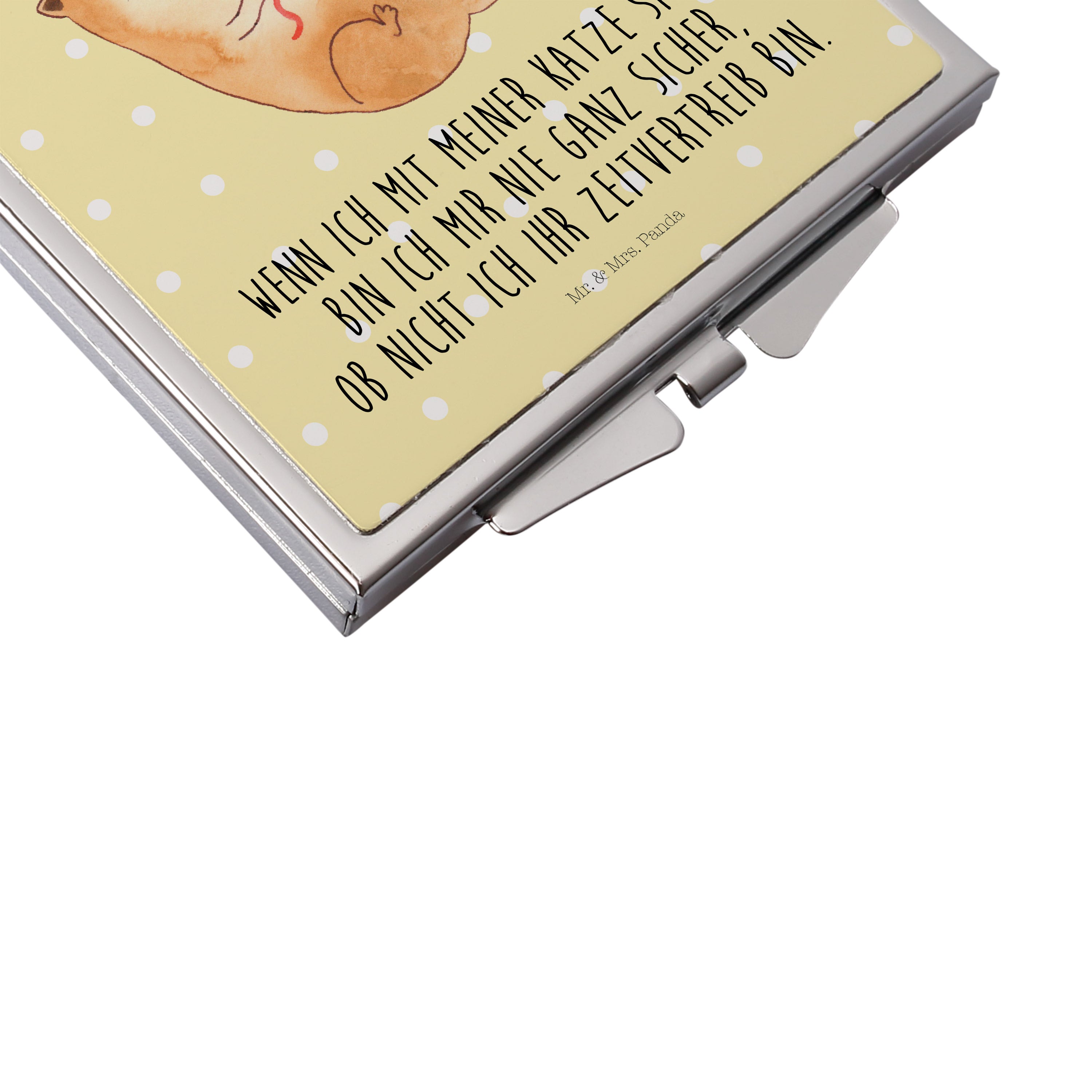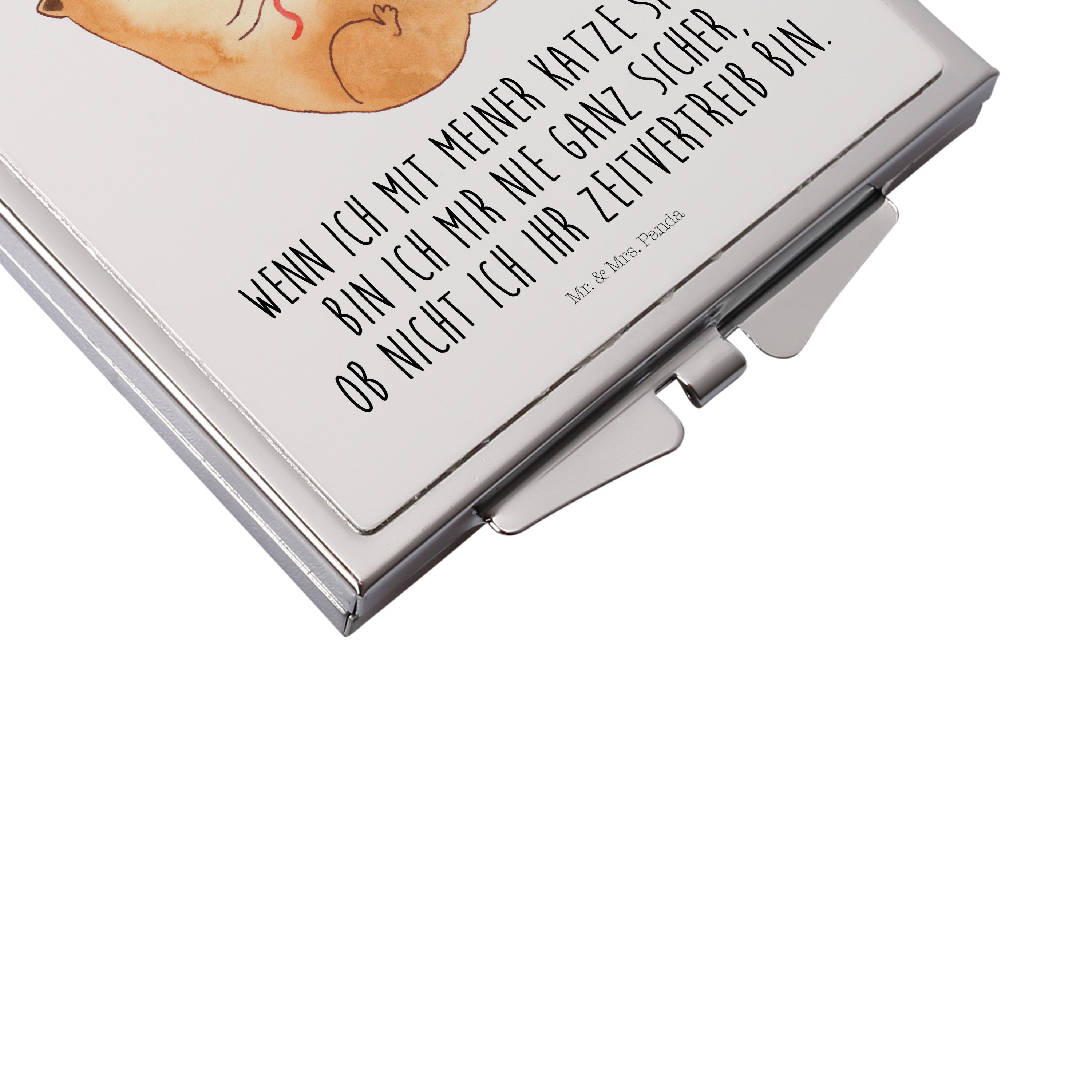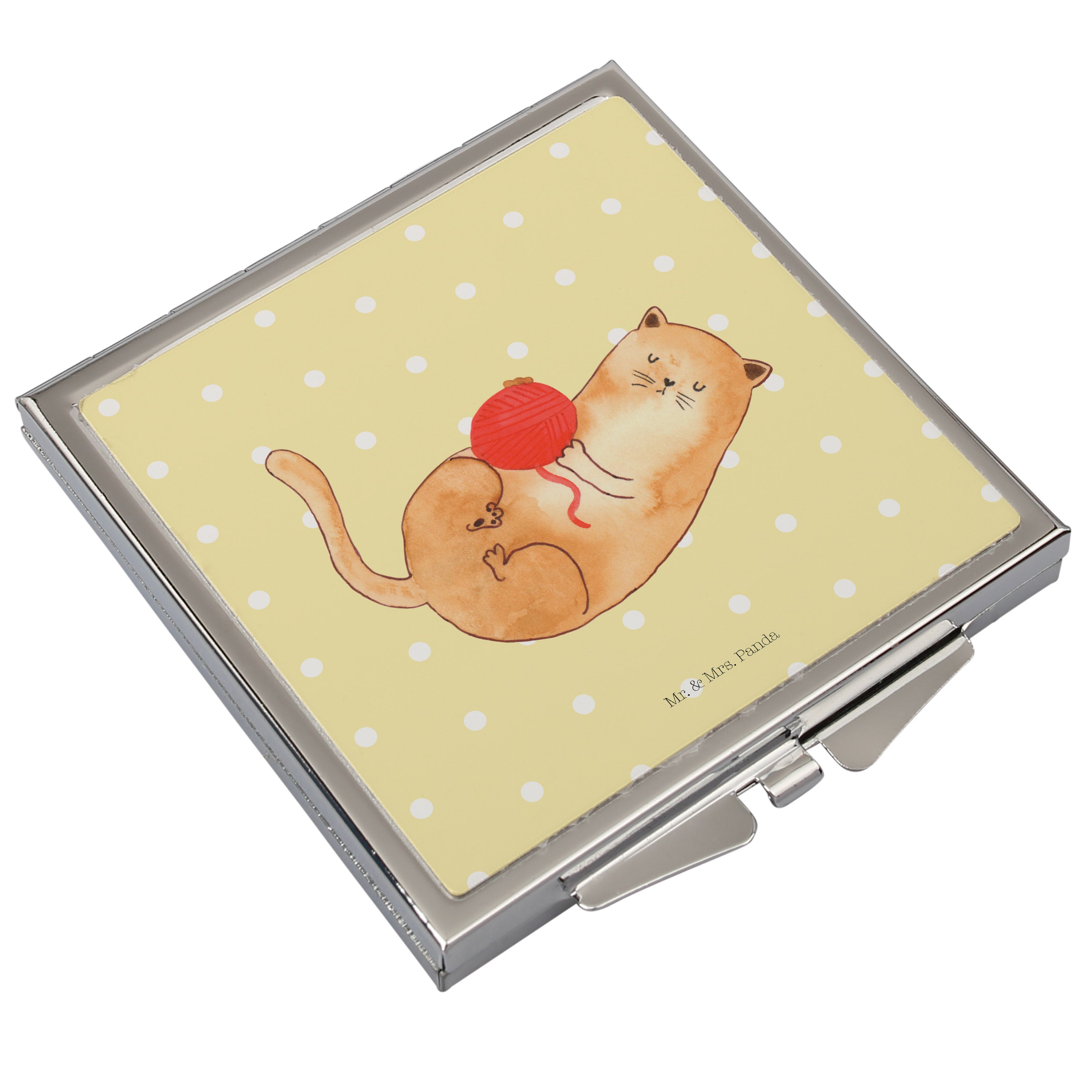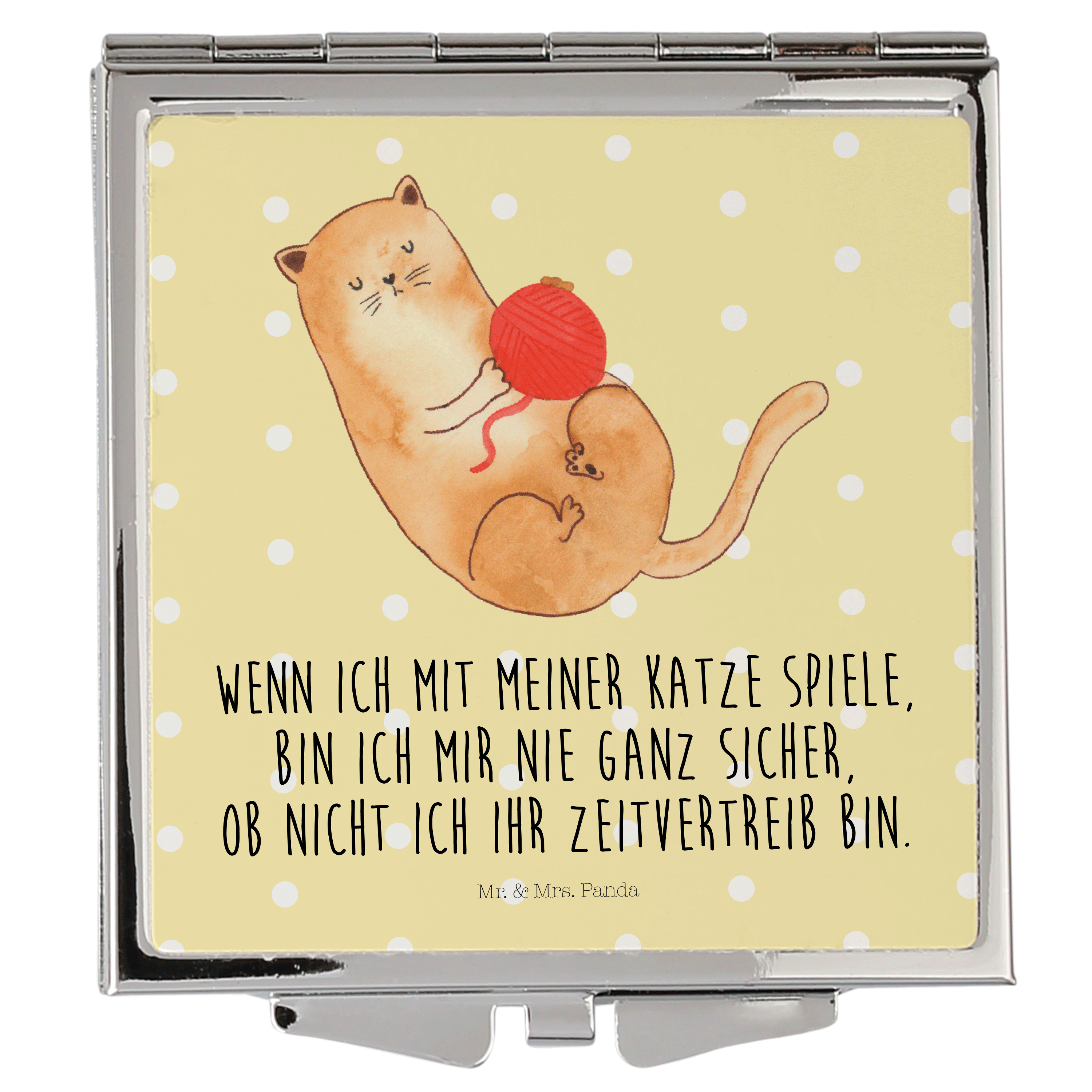 Handtaschenspiegel quadratisch Katzen Wollknäul - mit Spruch - Weiß