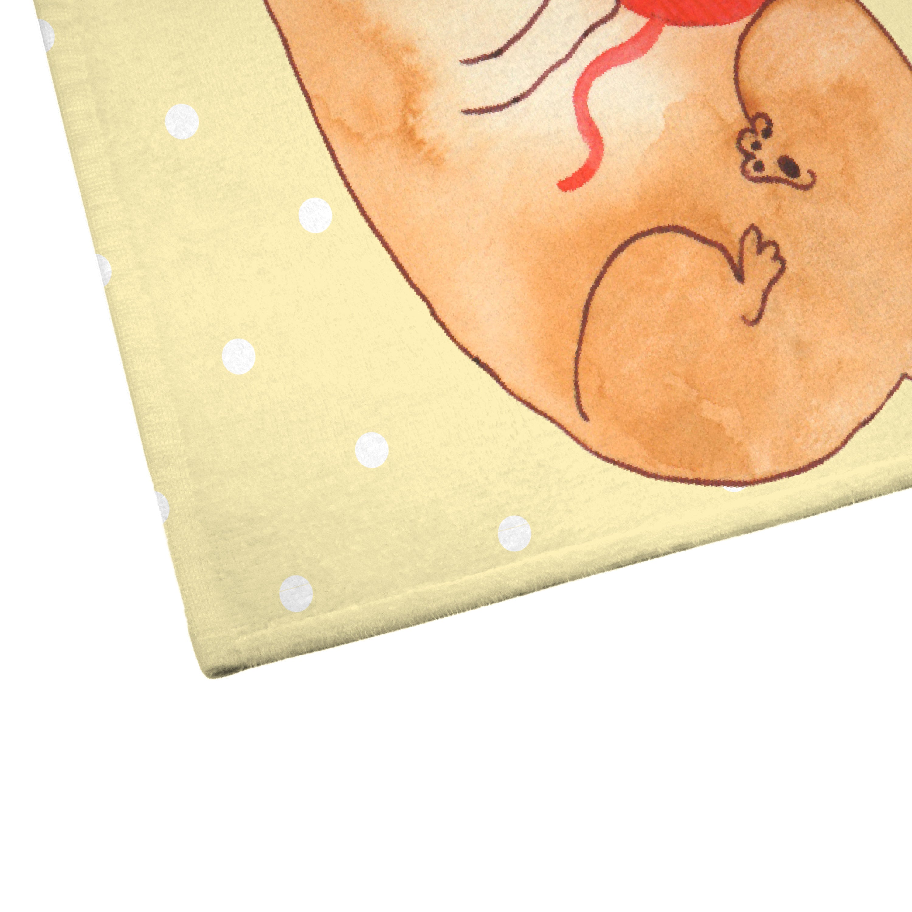 Dein Handtuch kannst du bei maximal 60°C waschen. Der Umwelt zuliebe gilt je niedriger die Temperatur desto besser. Dein Gästehandtuch trocknet in der Sonne schnell allerdings kannst du es, wenn die Sonne mal nicht scheint auch in den Trockner tun.