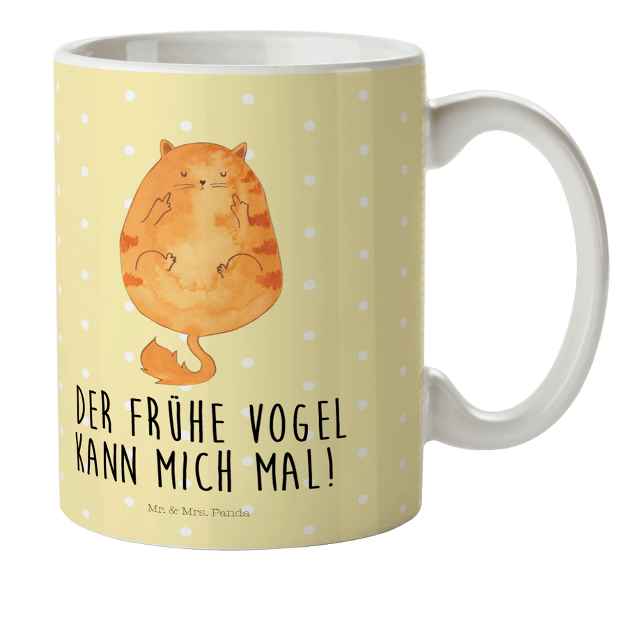 Kindertasse Katze Frühaufsteher - mit Spruch - Gelb Pastell