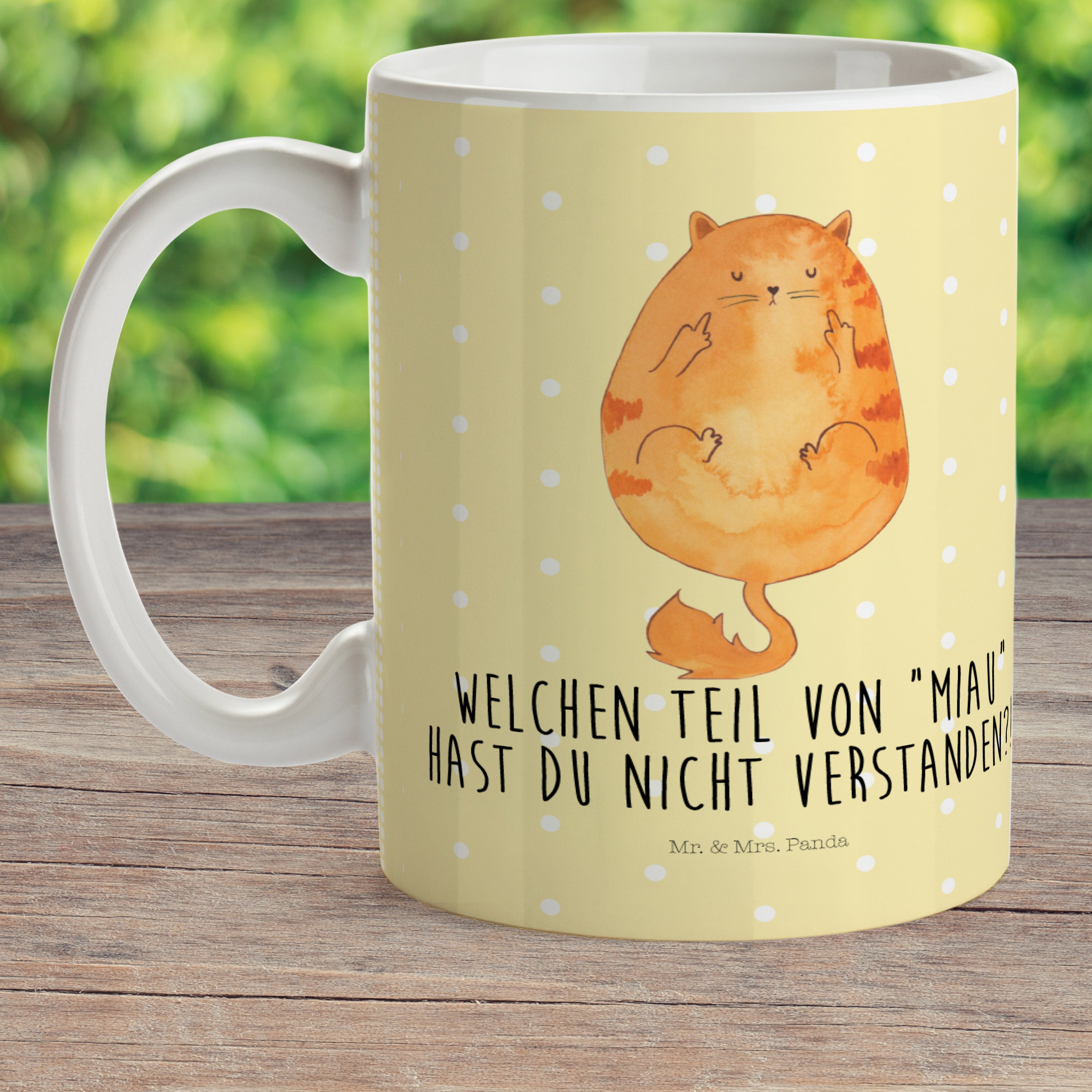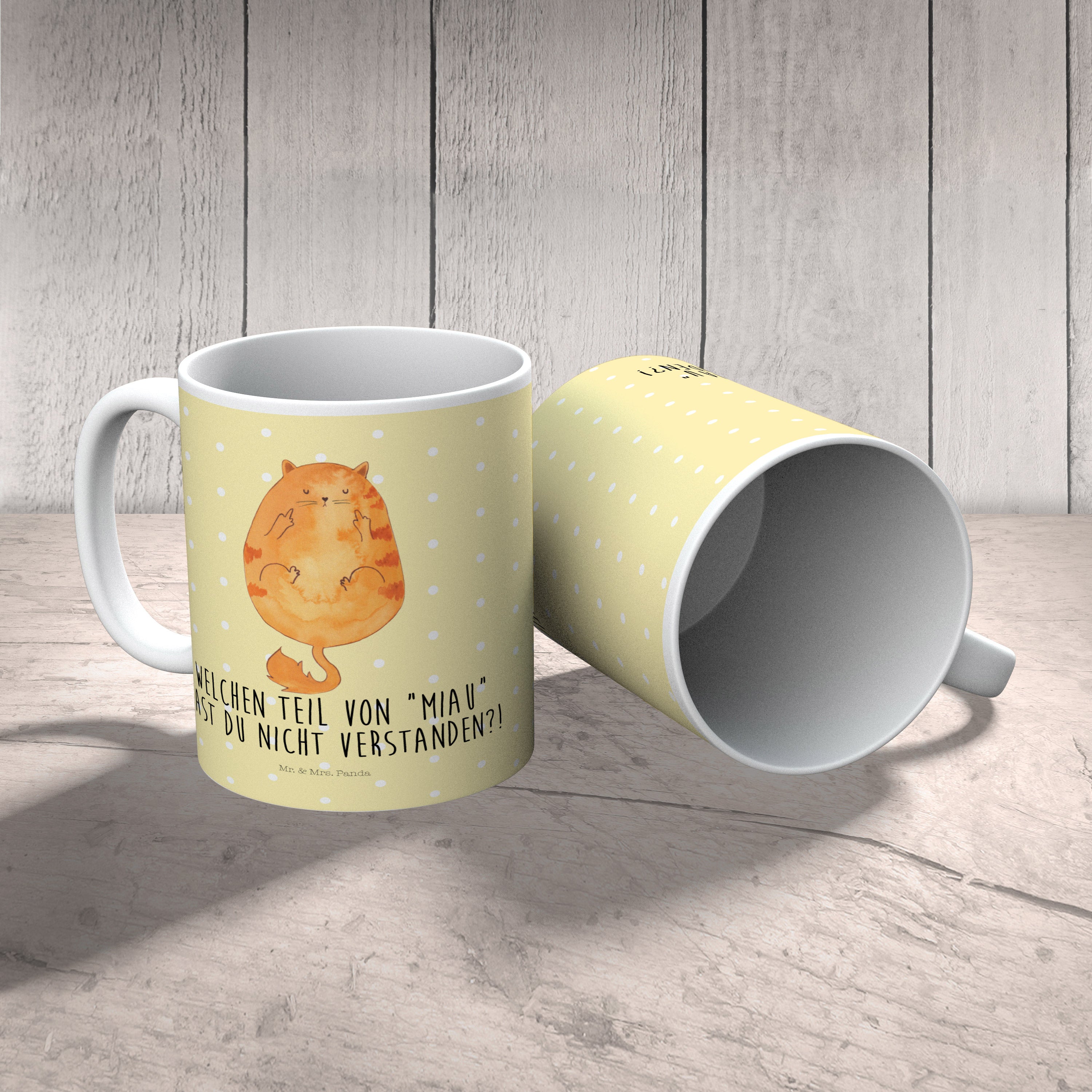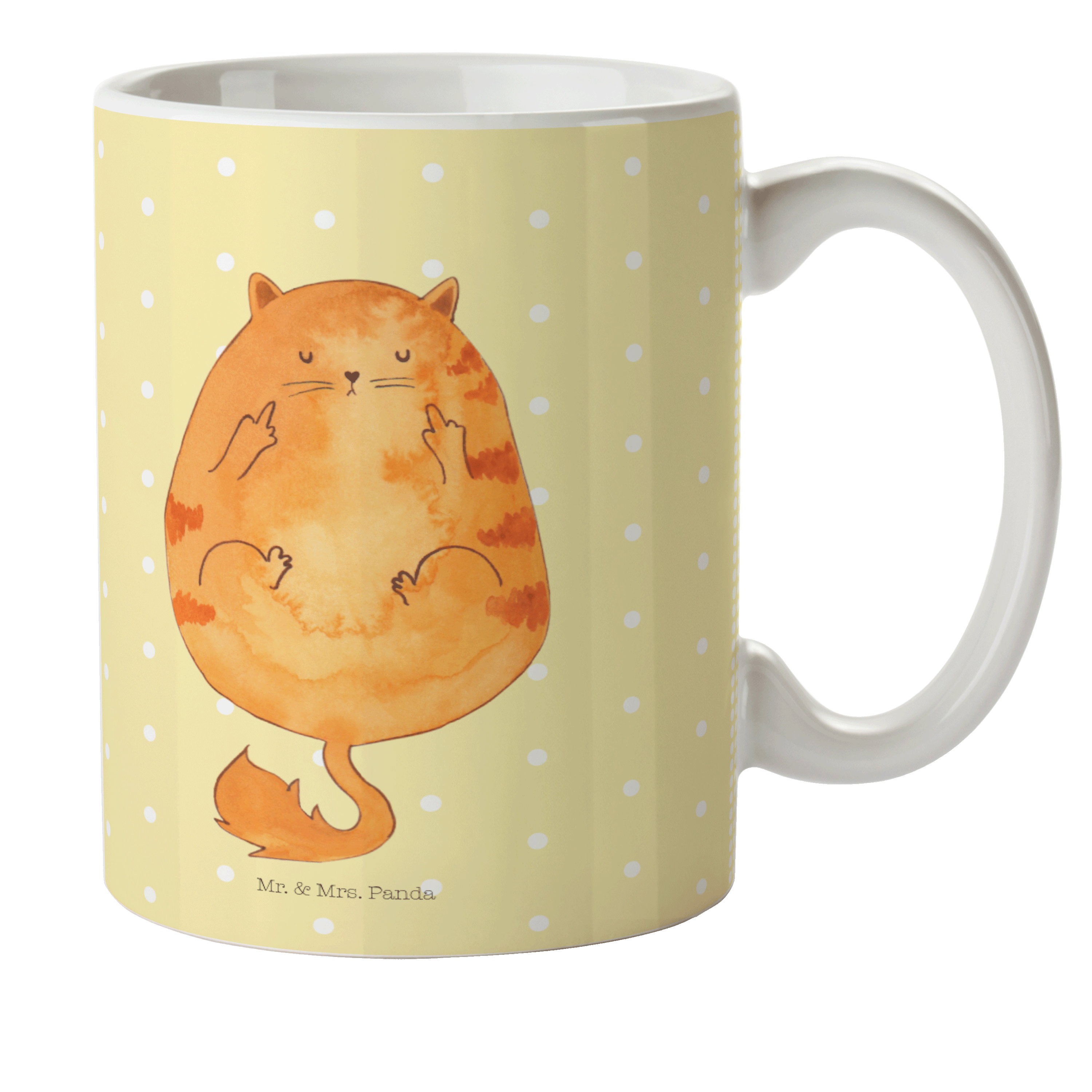 Kindertasse Katze Mittelfinger - mit Spruch - Gelb Pastell