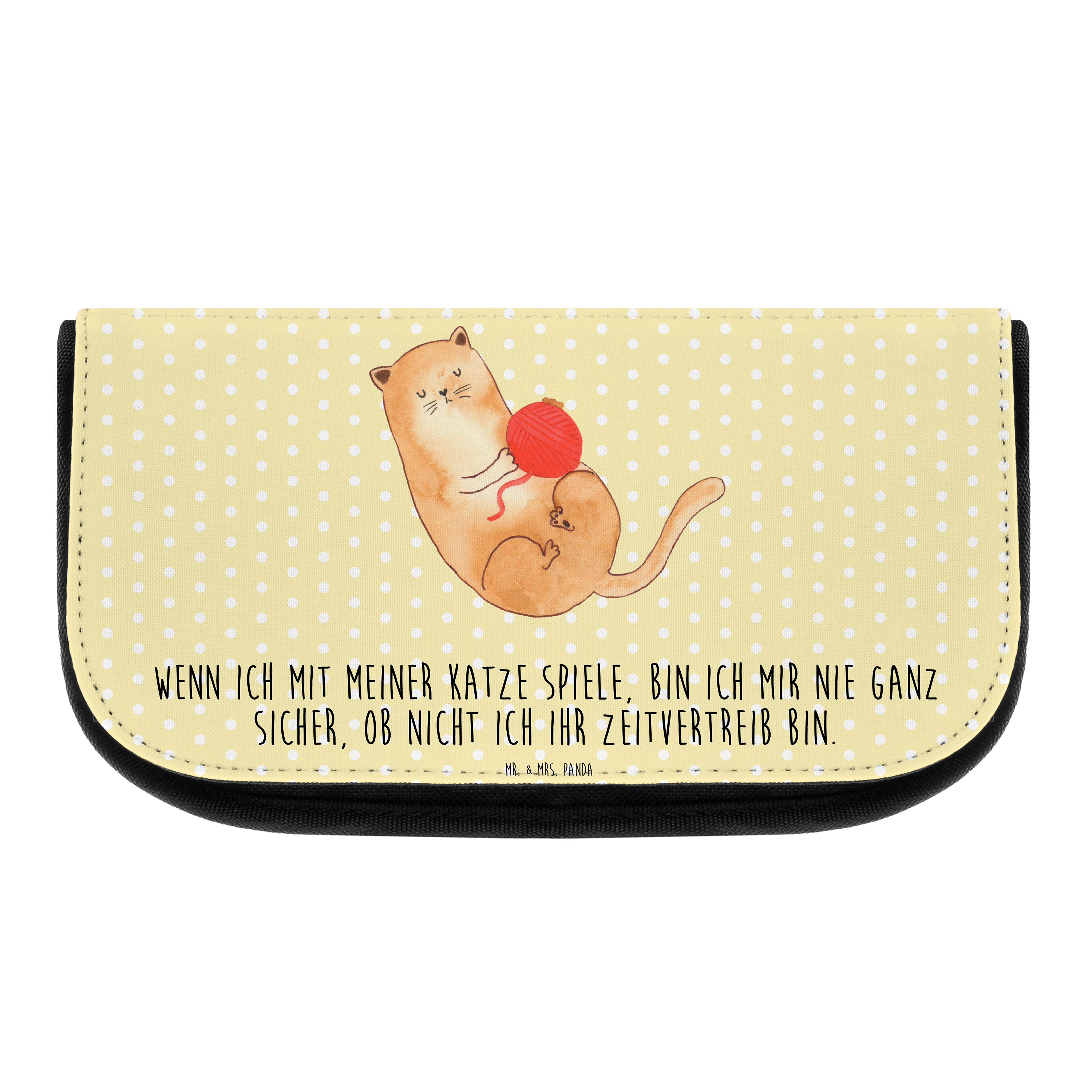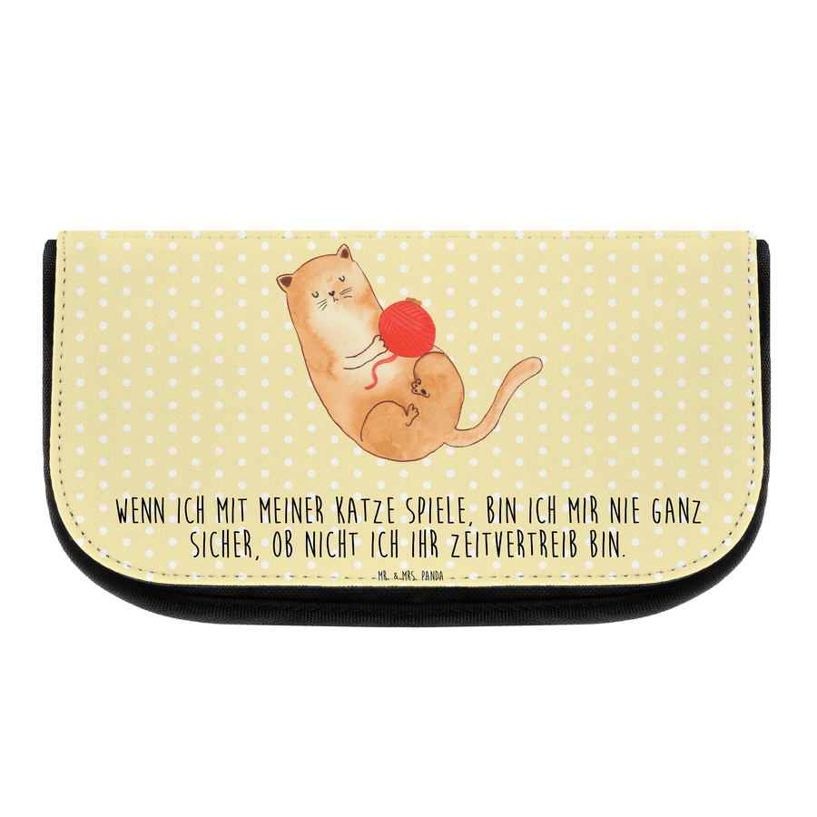 Kosmetiktasche Katzen Wollknäul - mit Spruch - Gelb Pastell