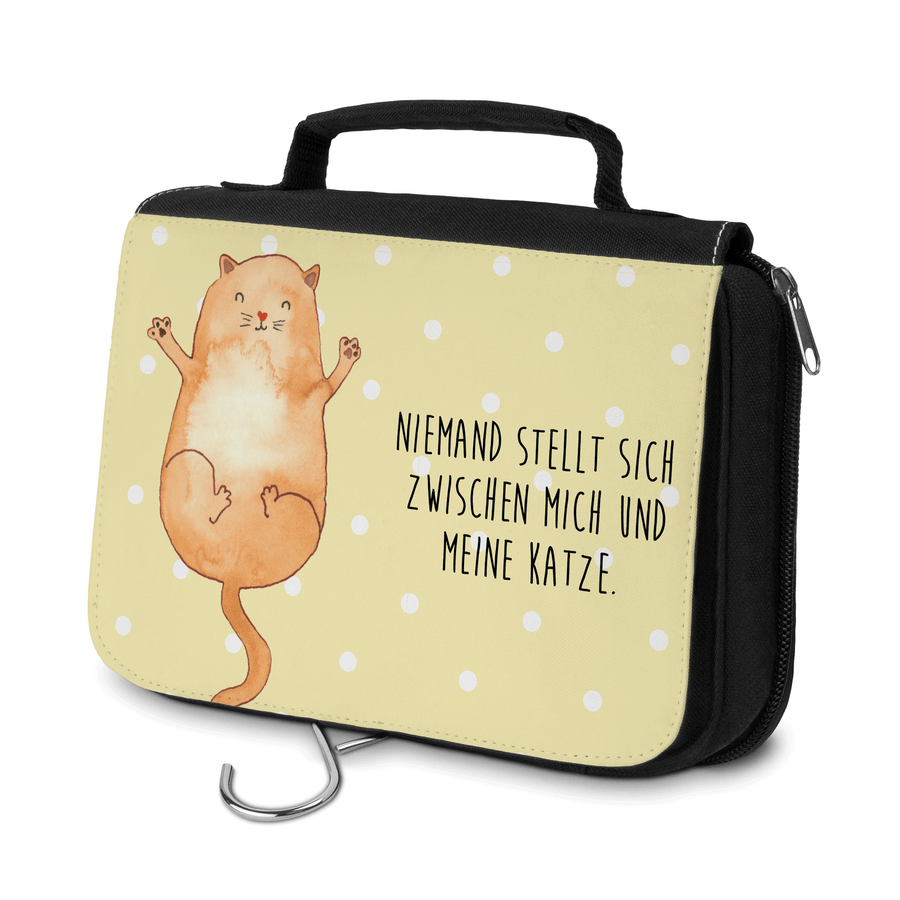 Kulturbeutel Katzen Umarmen - mit Spruch - Gelb Pastell