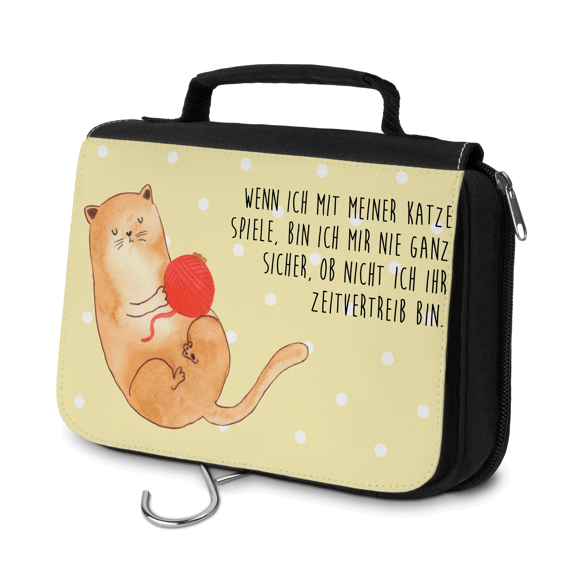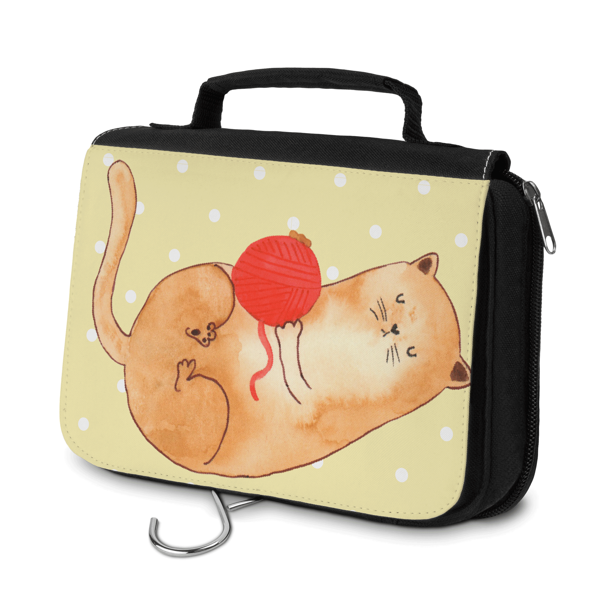 Kulturbeutel Katzen Wollknäul - mit Spruch - Gelb Pastell