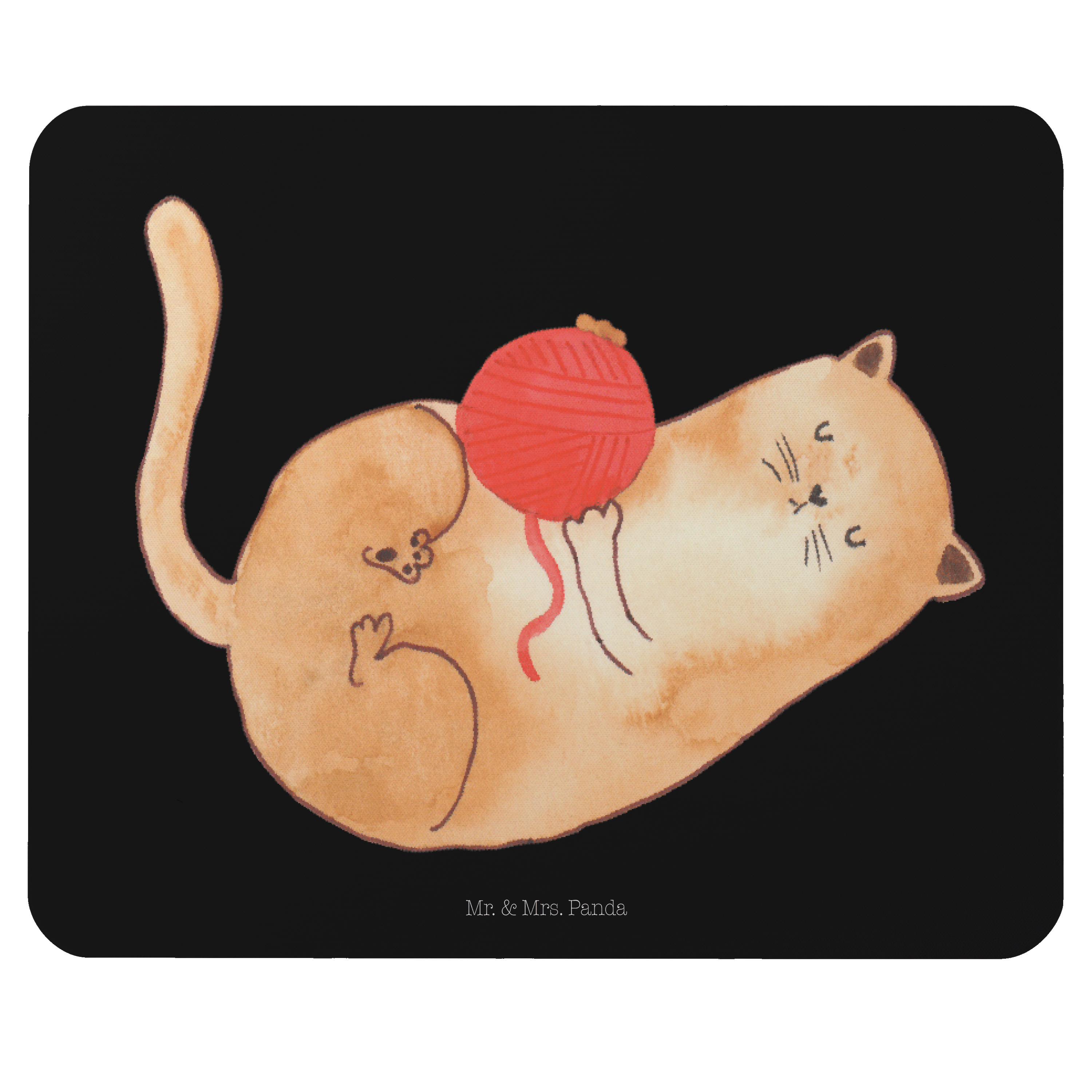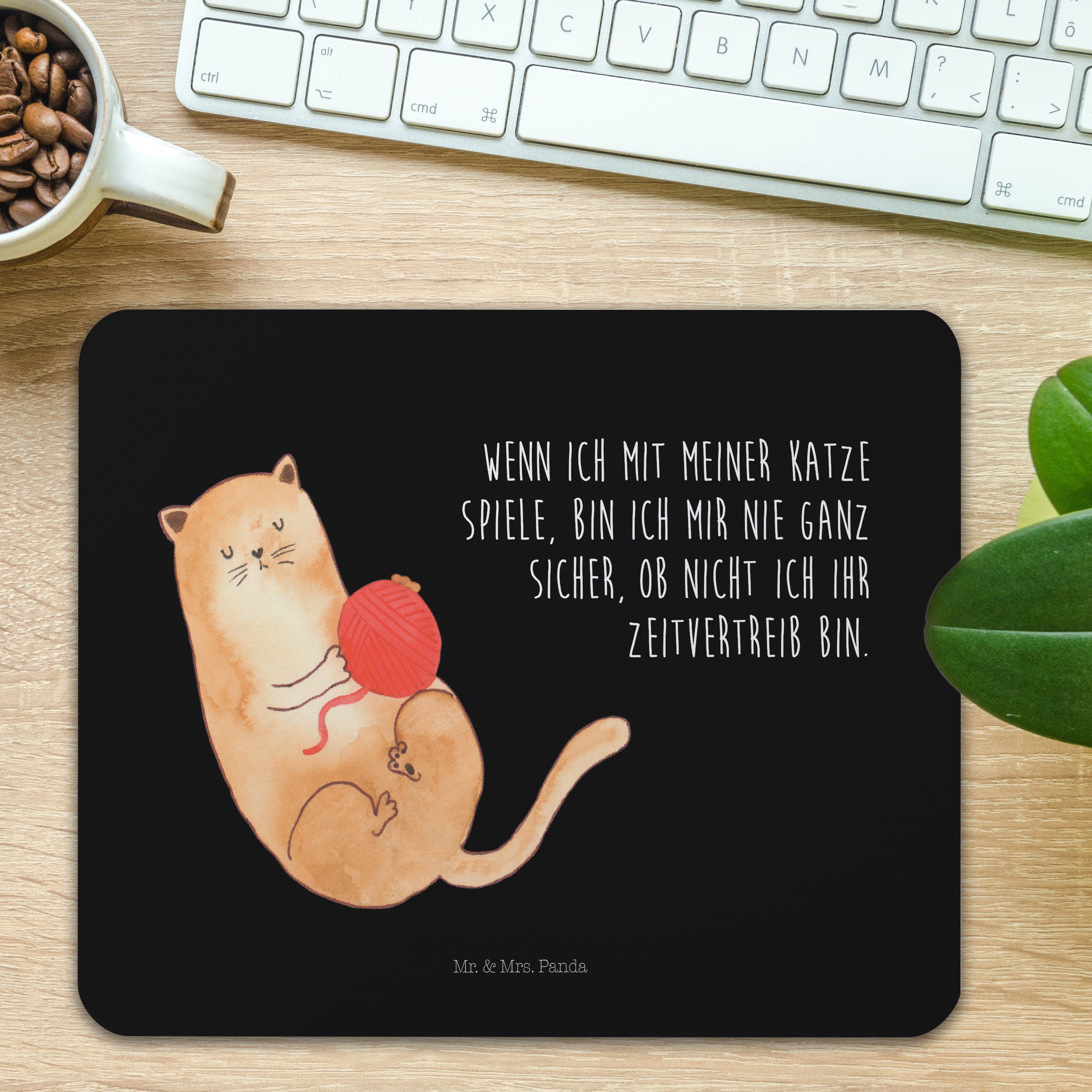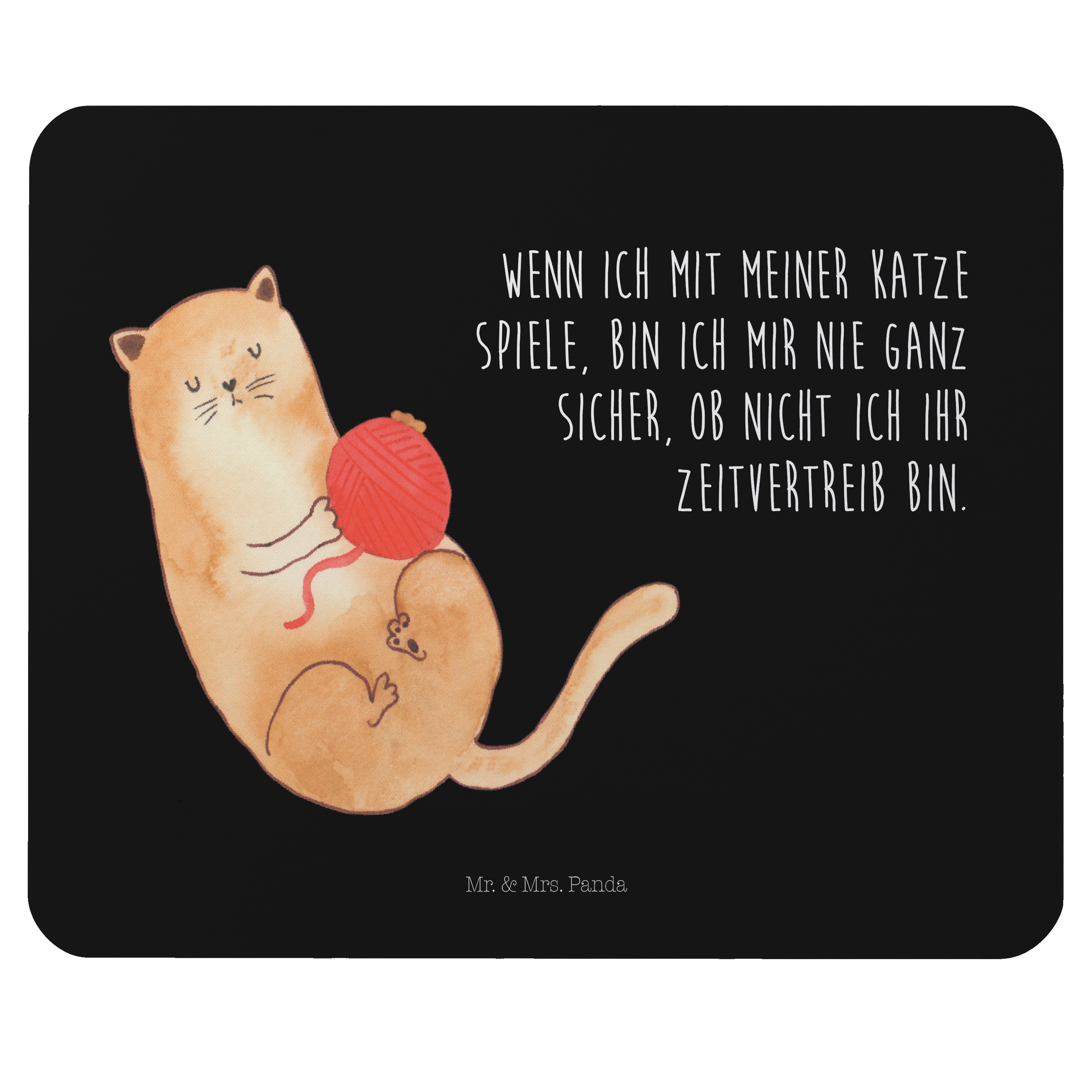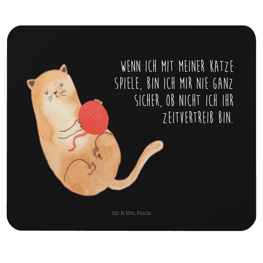 Mauspad Katzen Wollknäul - mit Spruch - Schwarz