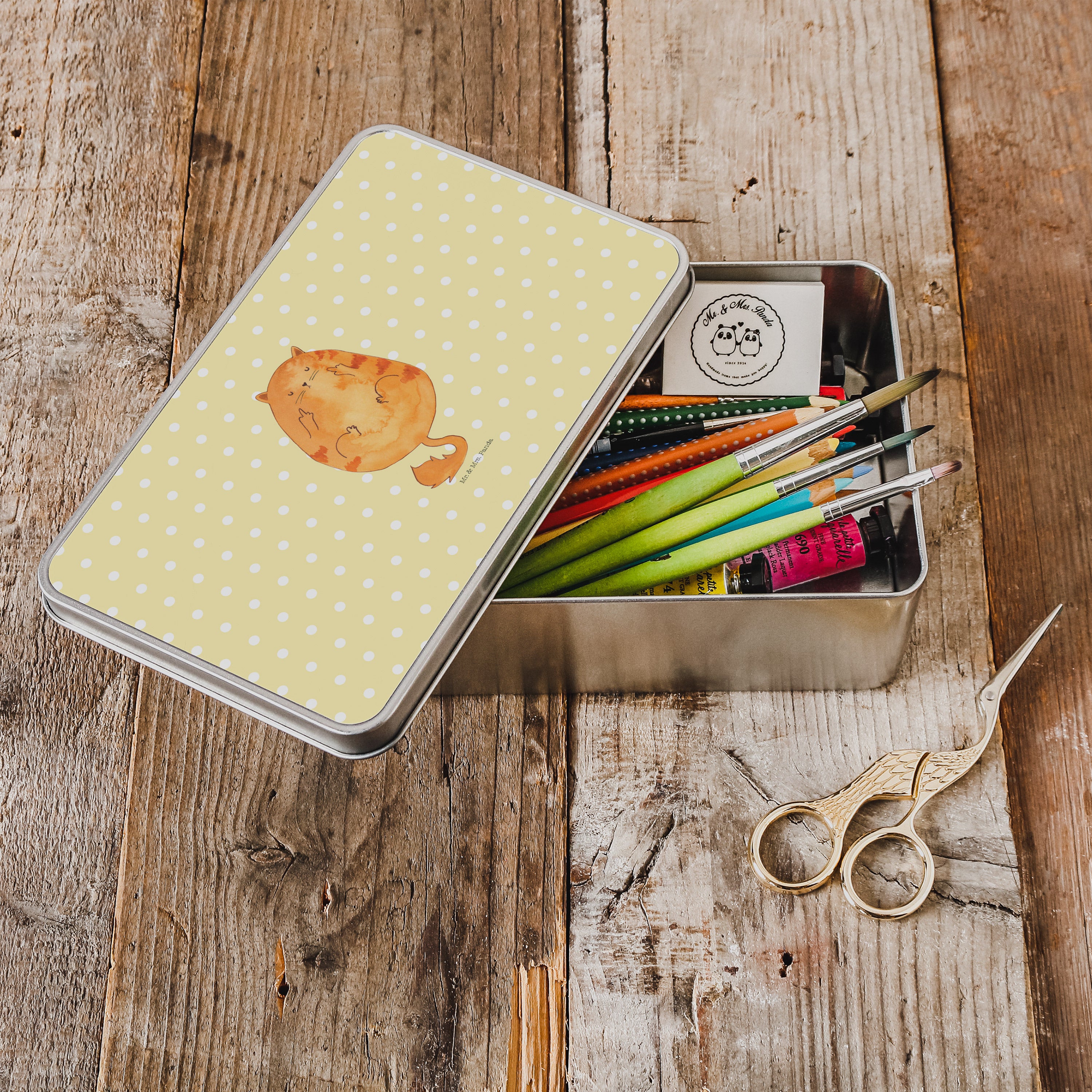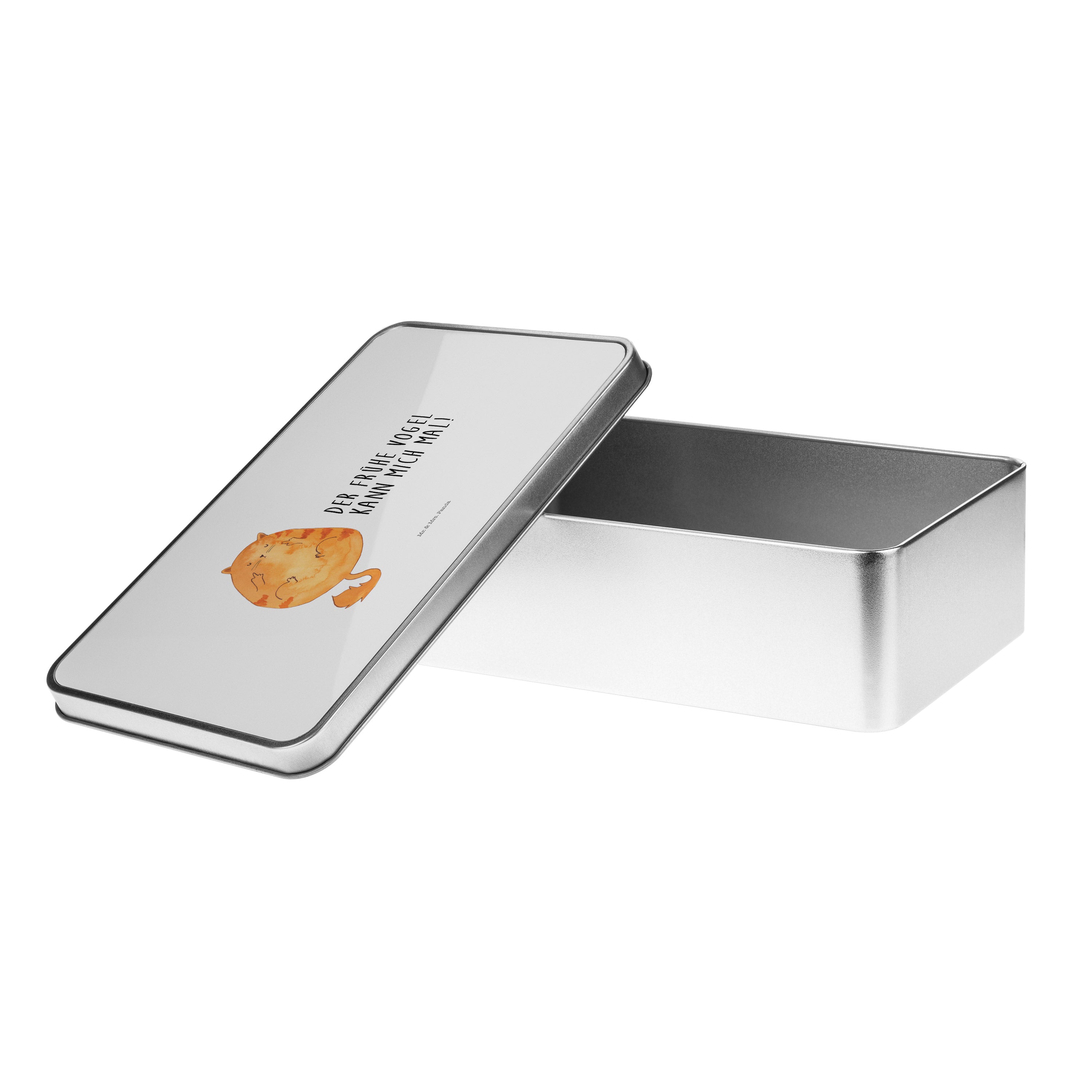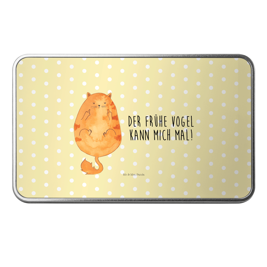 Metalldose rechteckig Katze Frühaufsteher - mit Spruch - Gelb Pastell