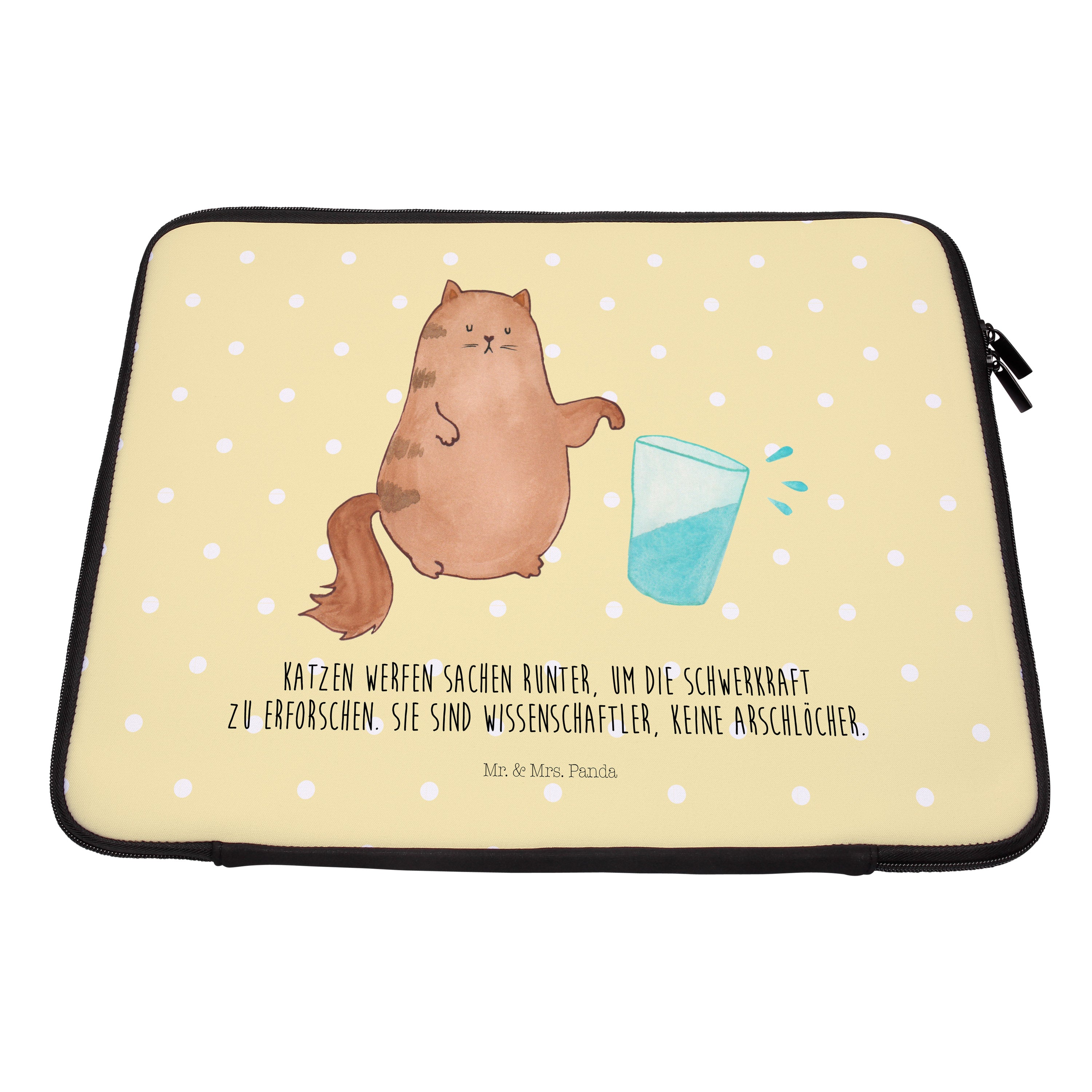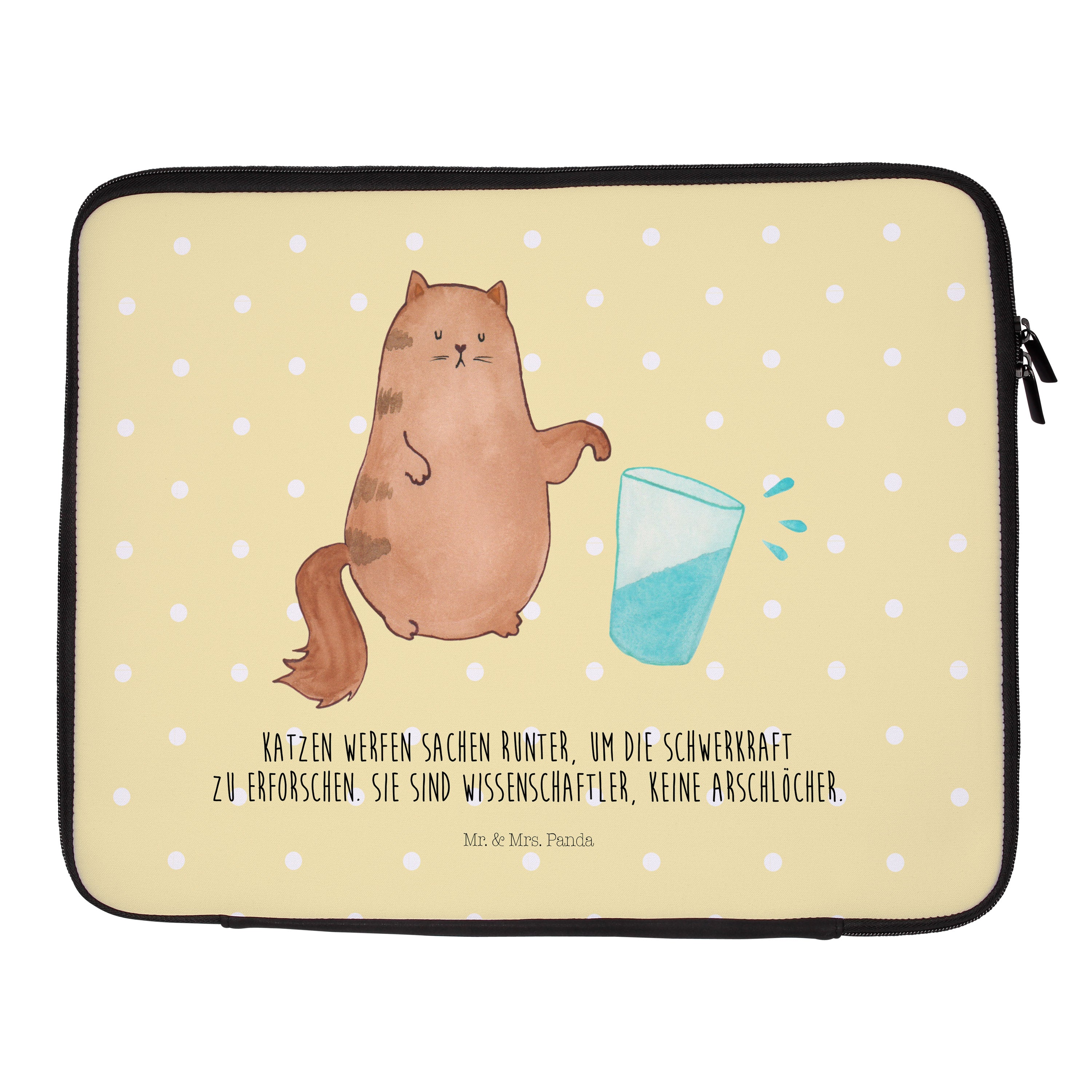 27 x 36 Notebook Tasche Katze Wasserglas - mit Spruch - Gelb Pastell