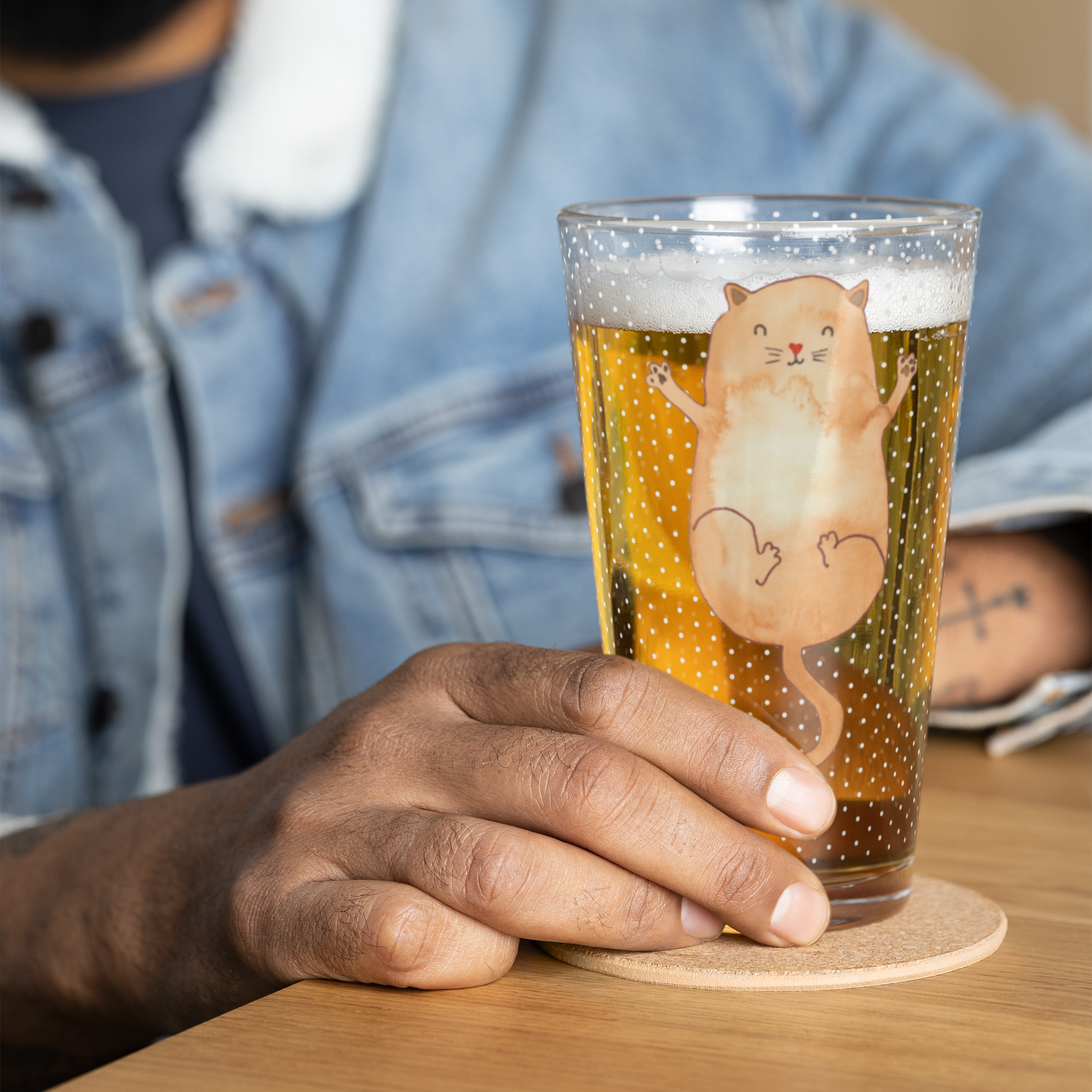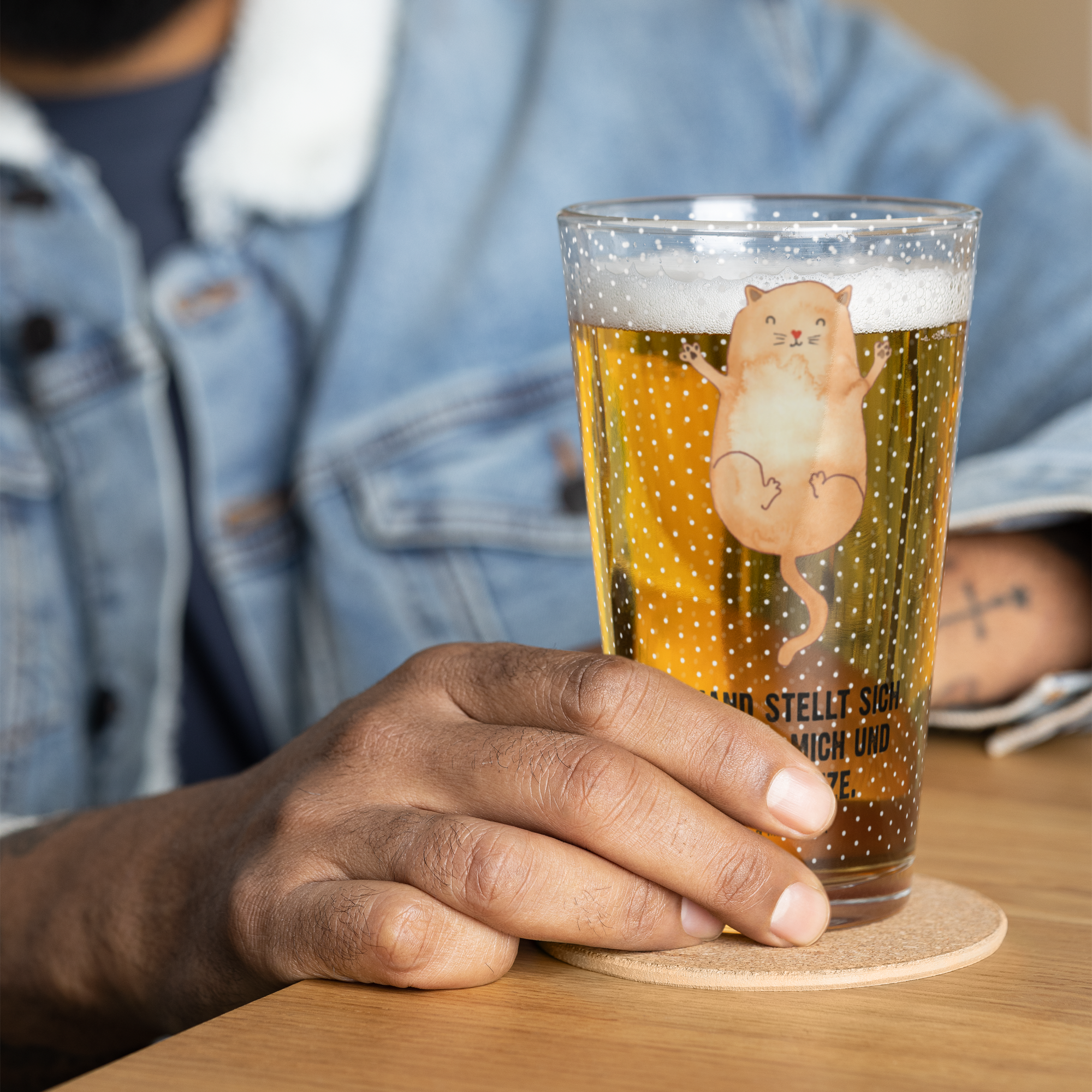 Premium Trinkglas Katzen Umarmen - mit Spruch
