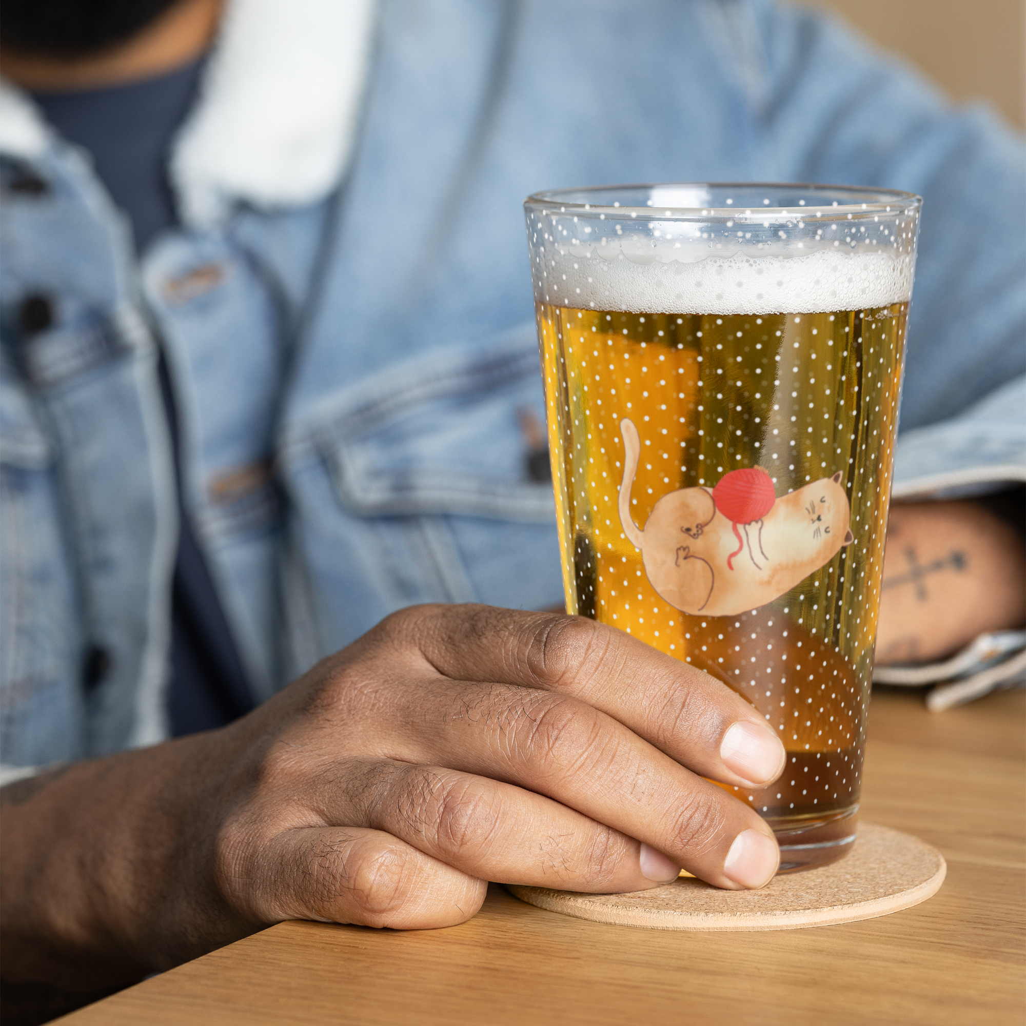 Premium Trinkglas Katzen Wollknäul - mit Spruch