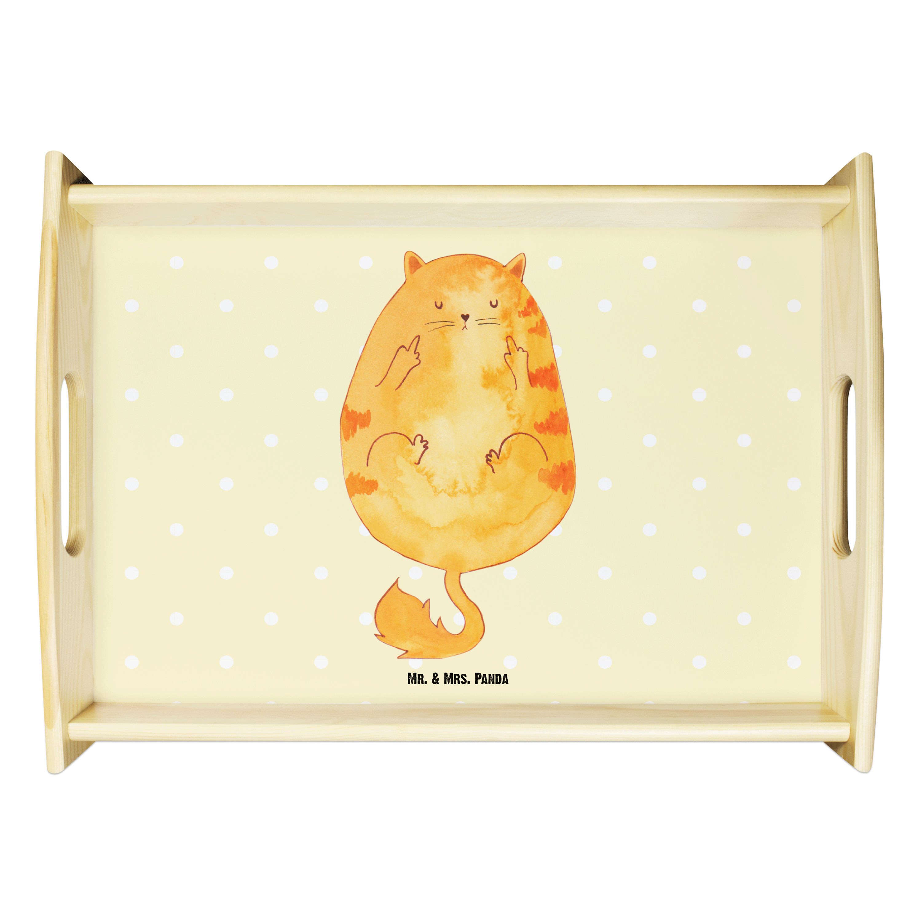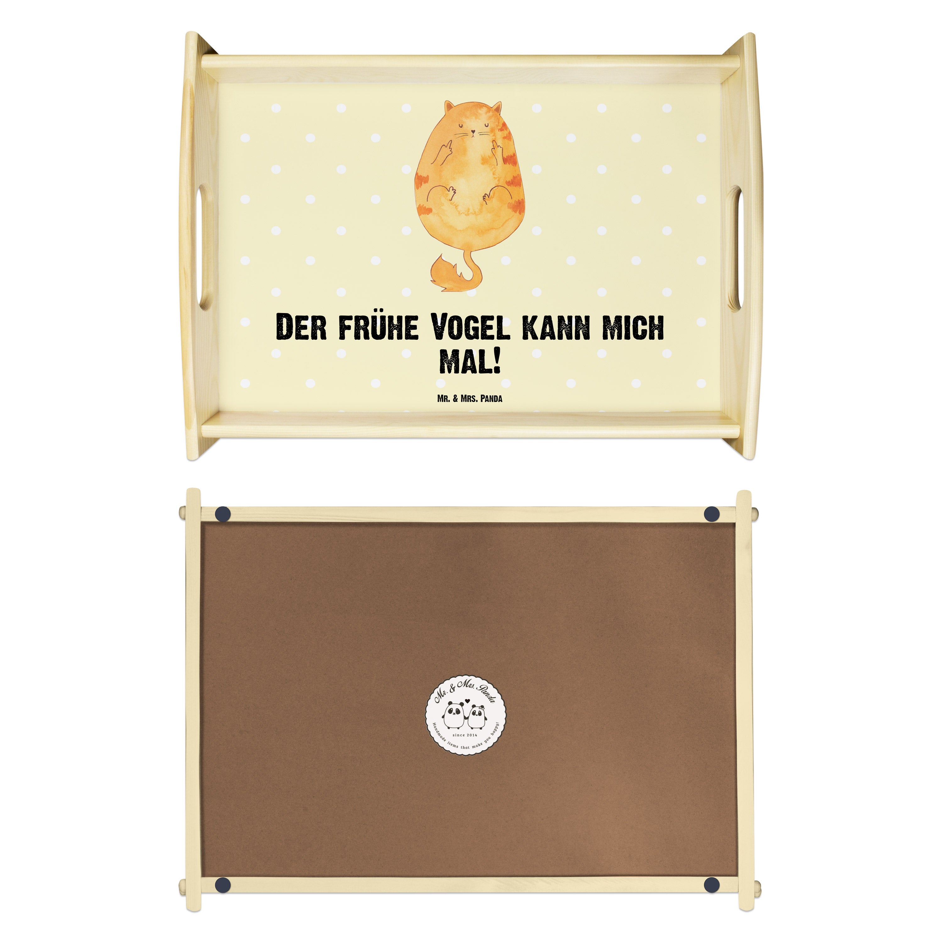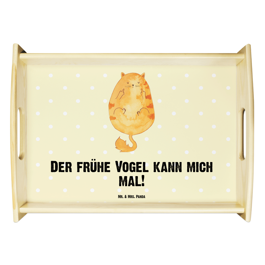 Serviertablett Katze Frühaufsteher - mit Spruch - Gelb Pastell