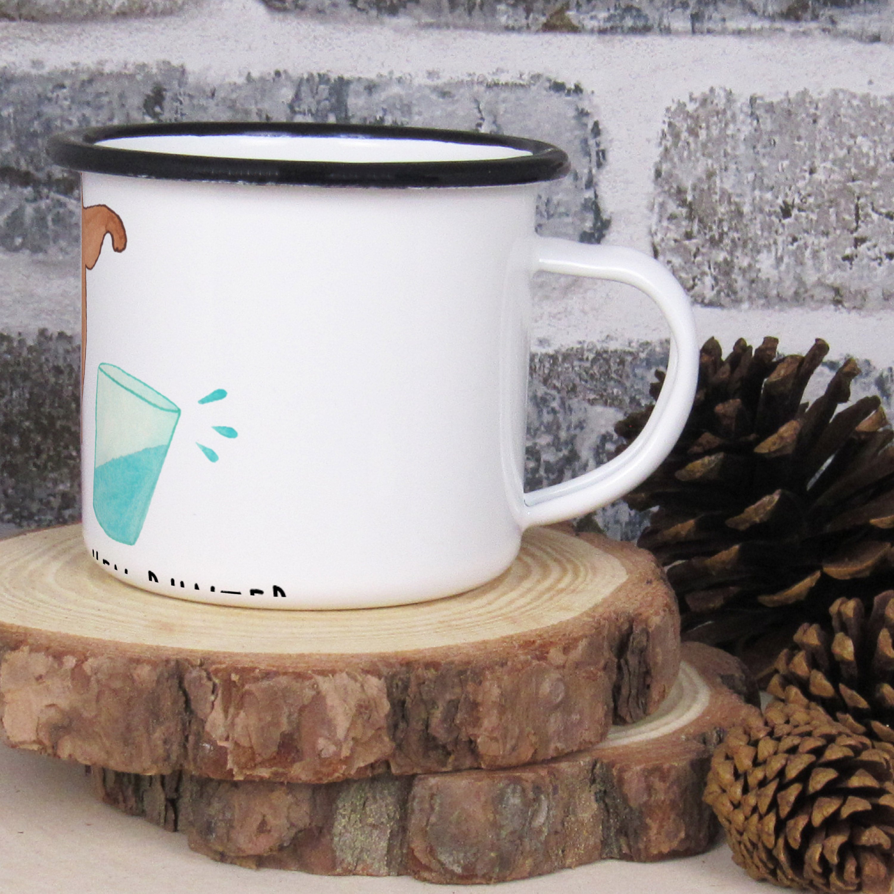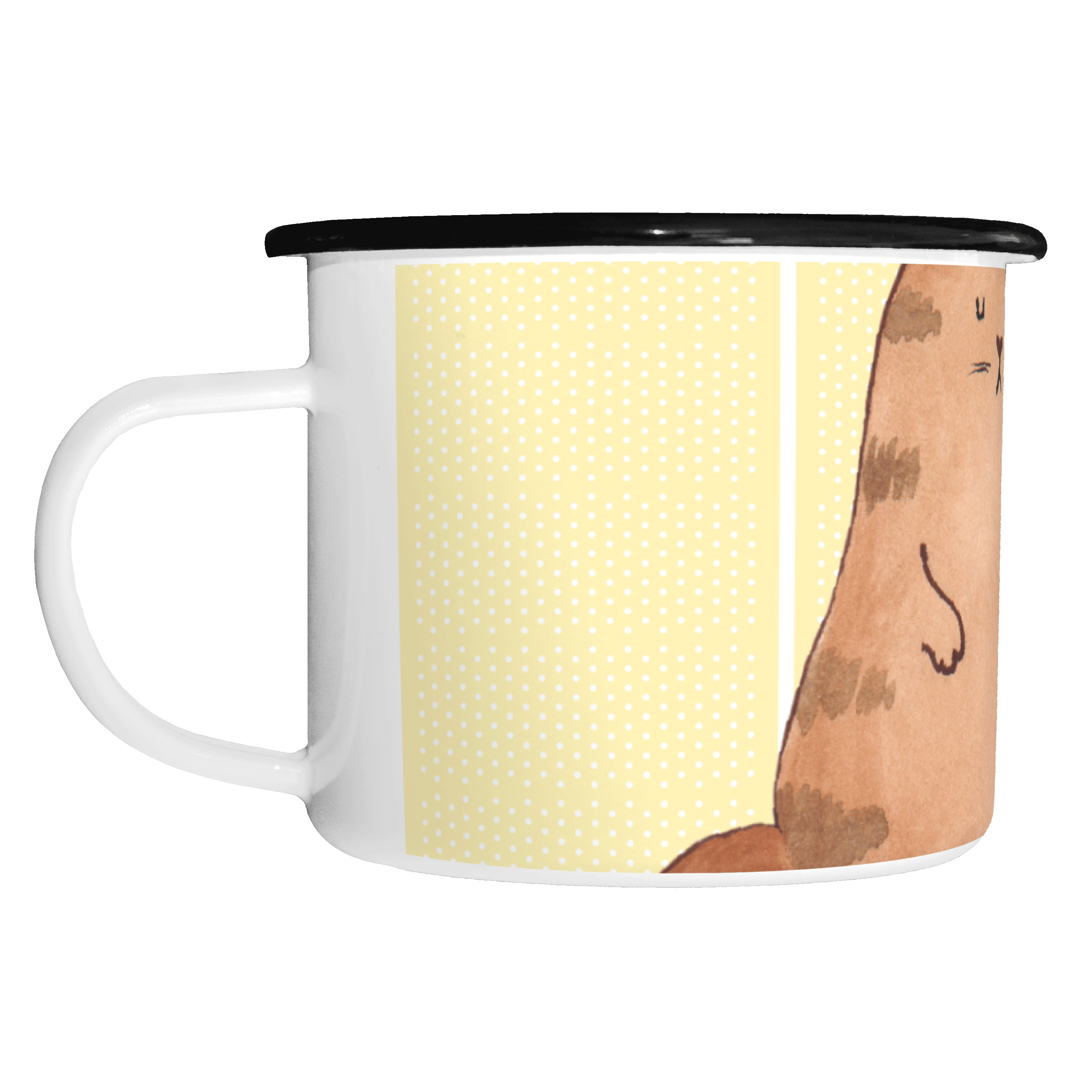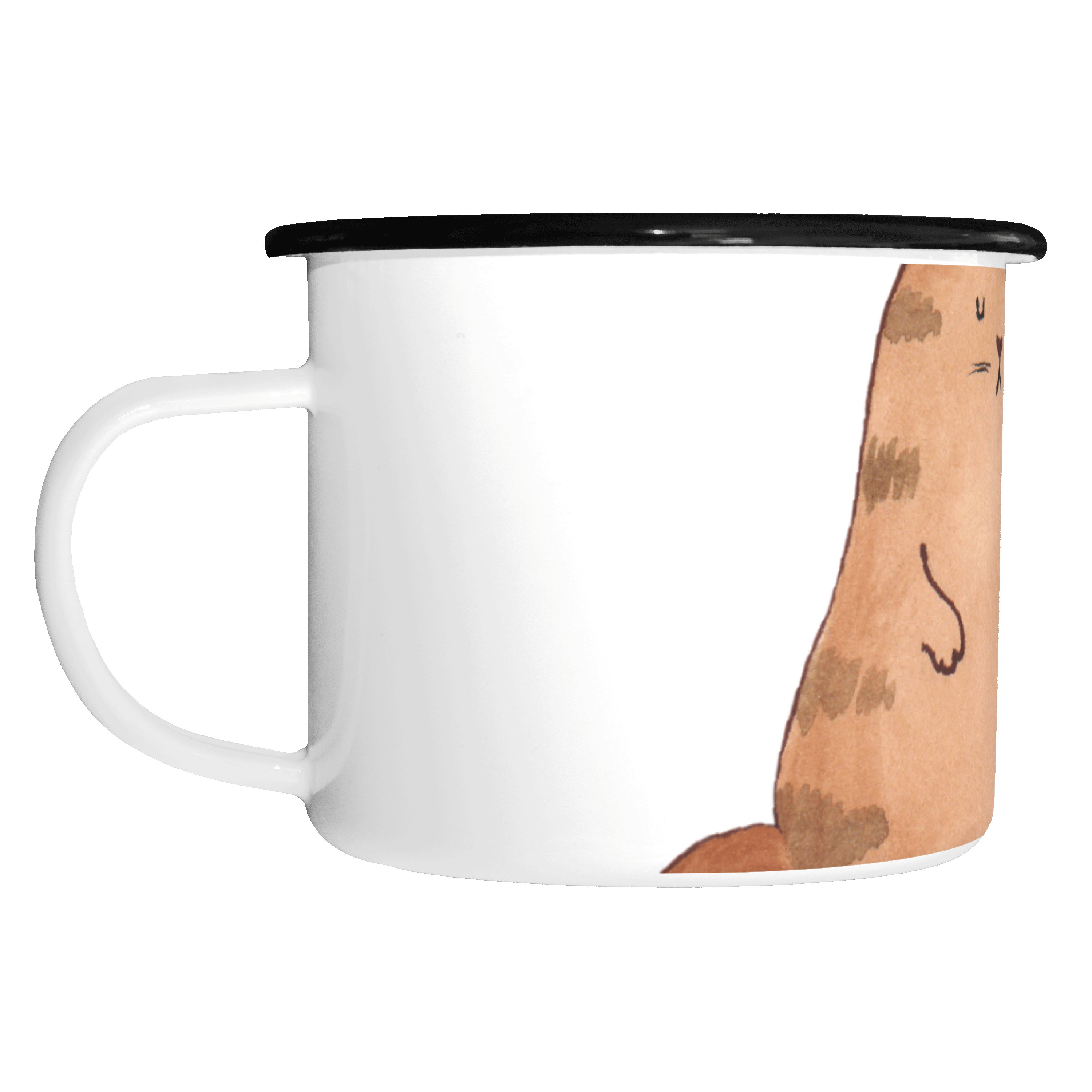 XL Emaille Tasse Katze Wasserglas - mit Spruch - Weiß