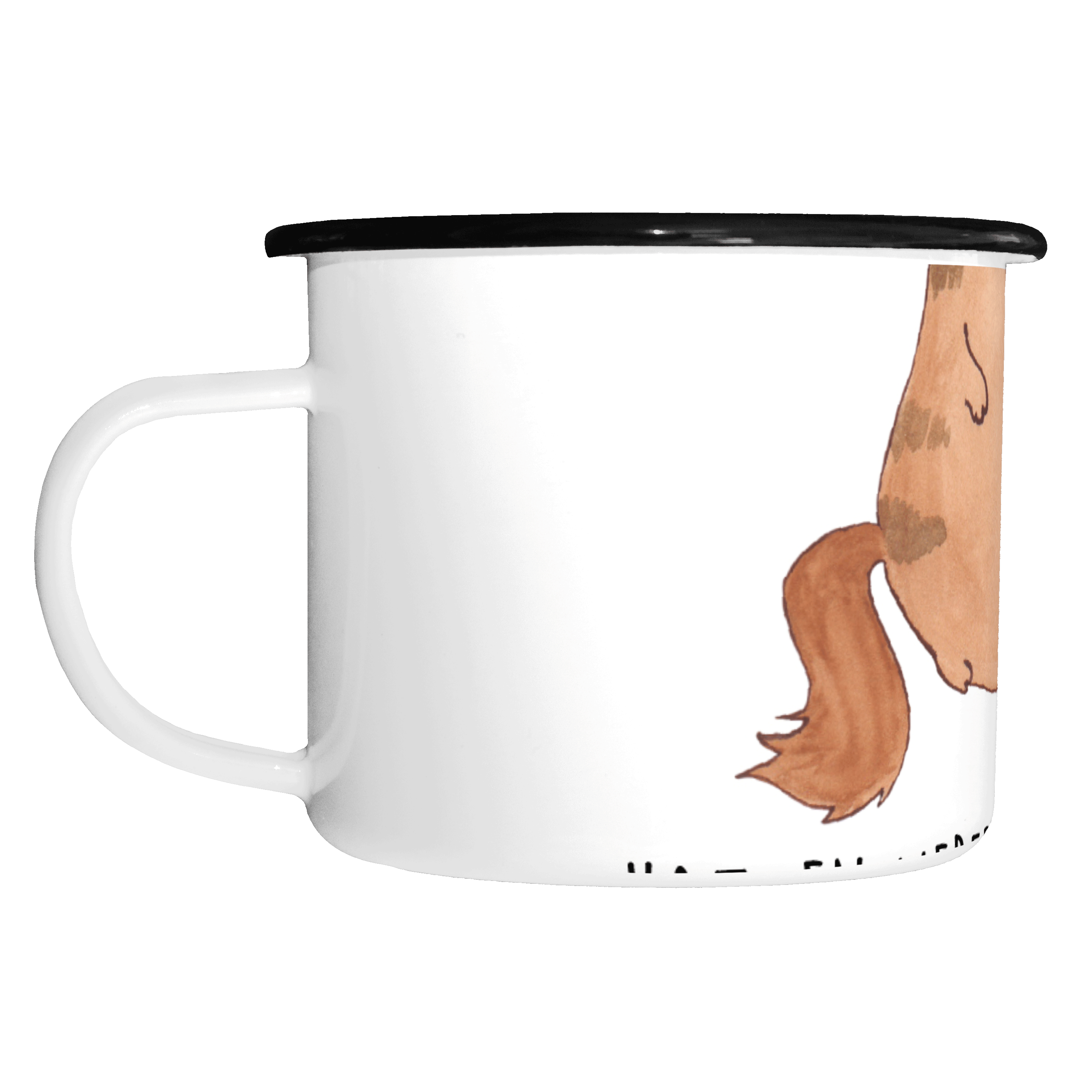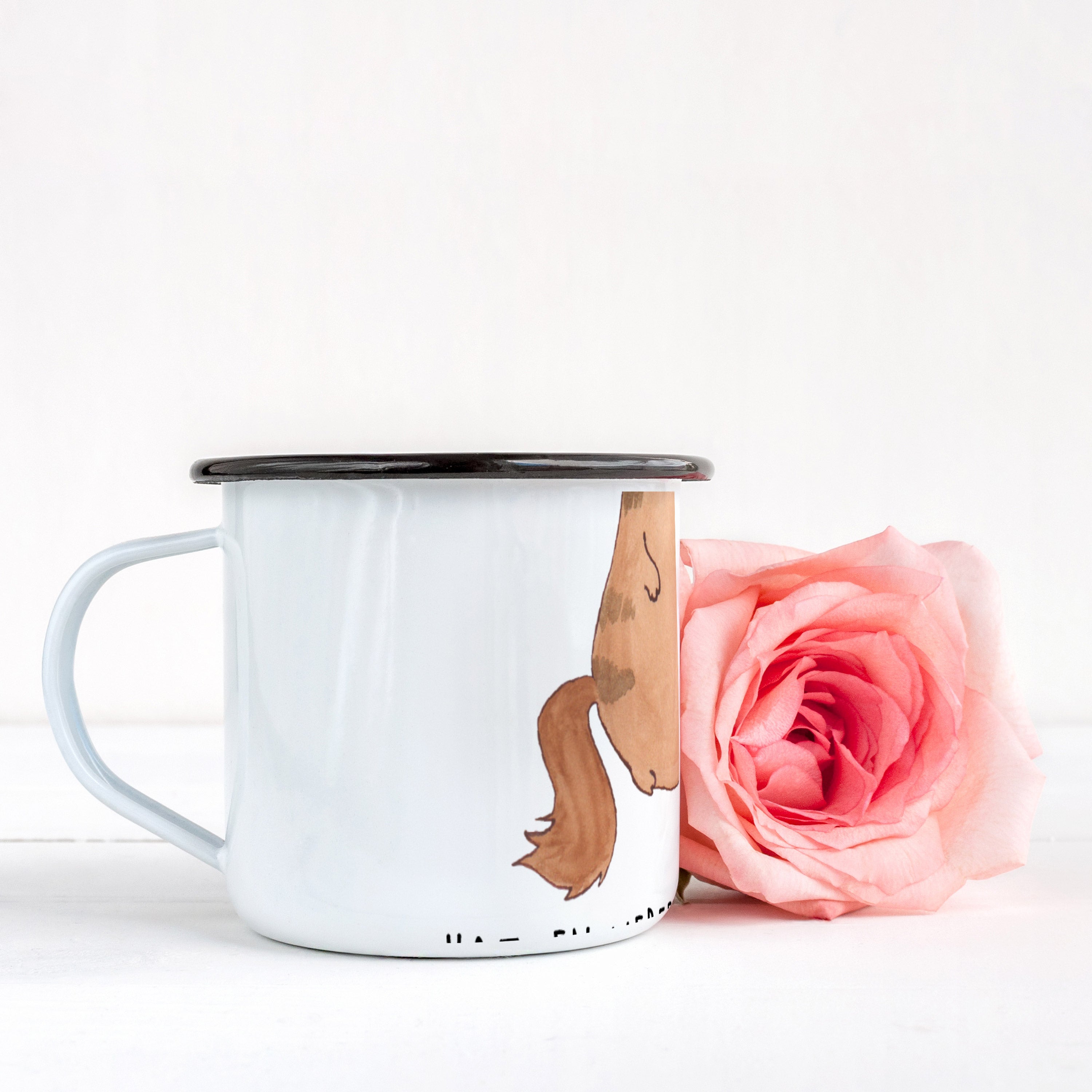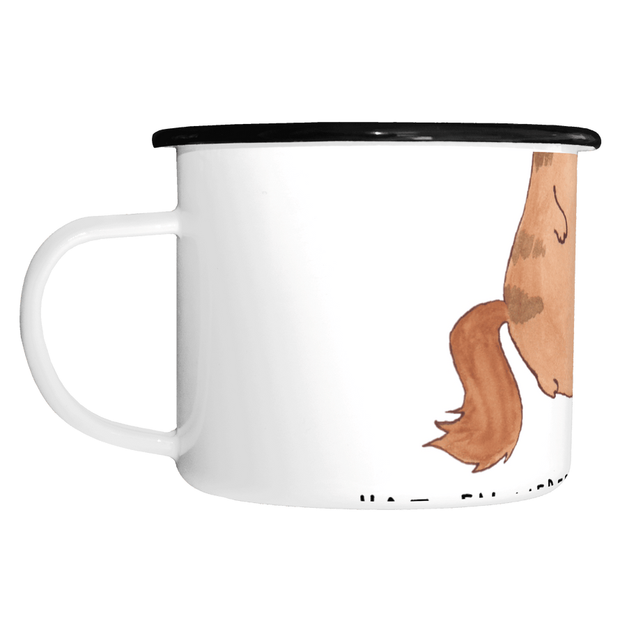 XL Emaille Tasse Katze Wasserglas - mit Spruch - Weiß