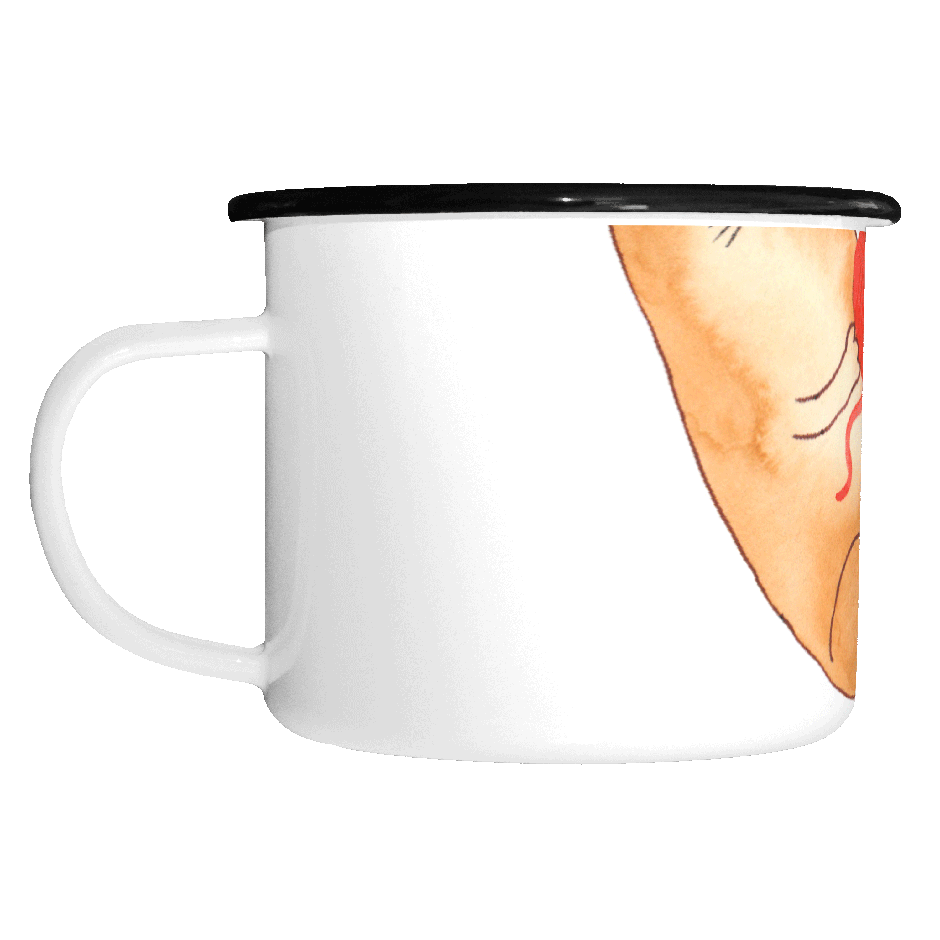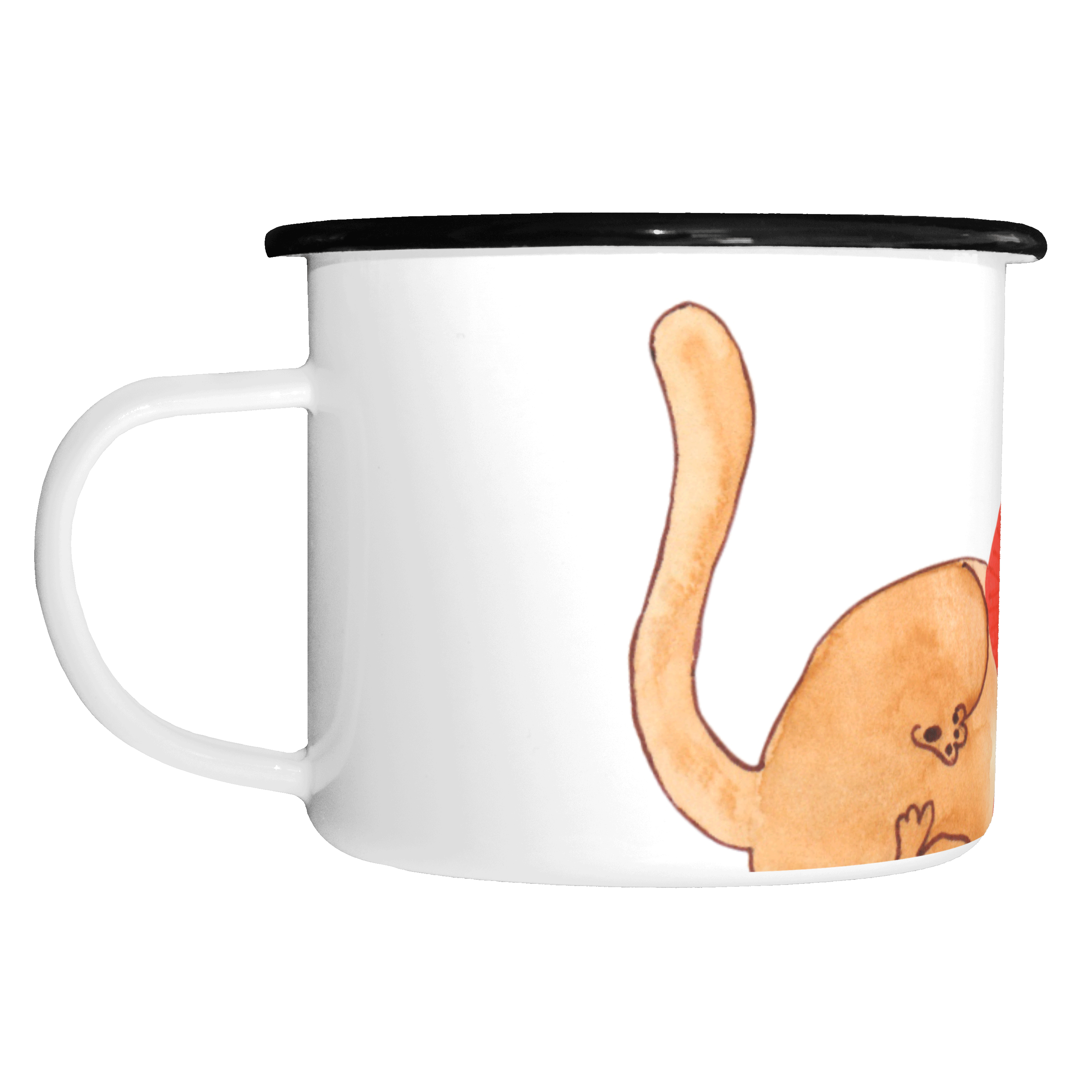 XL Emaille Tasse Katzen Wollknäul - mit Spruch - Weiß