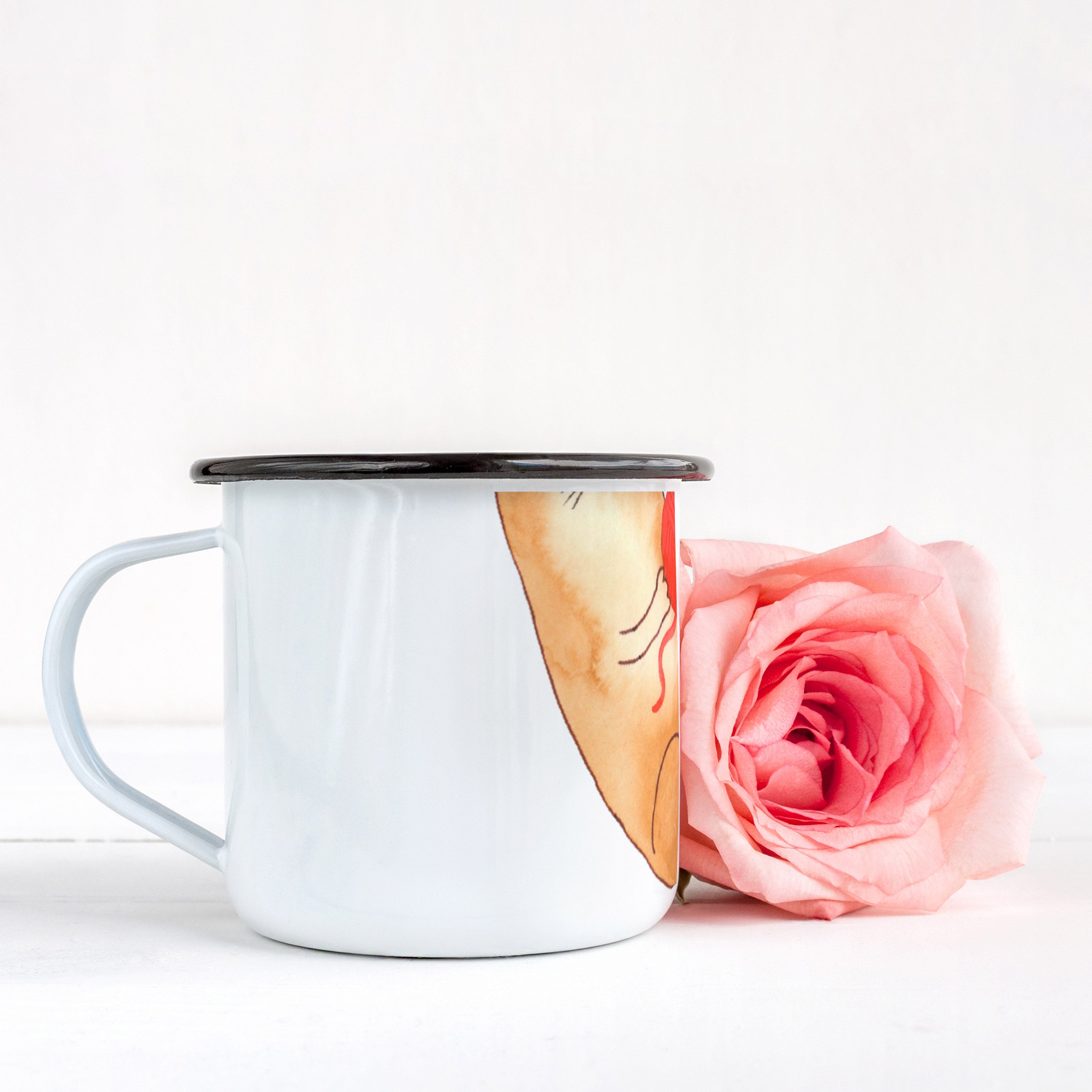 Als Kaffeetasse ist dieser Emailletasse ein echter Hingucker.