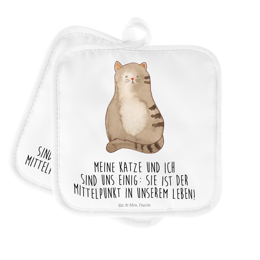 2er Set Topflappen Katze sitzend - mit Spruch - Weiß