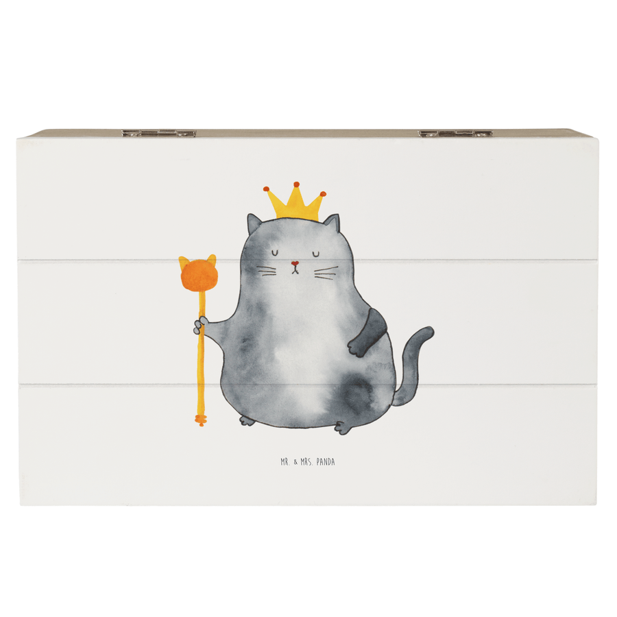 Holzkiste Katzen Koenig - 19 x 12 cm - ohne Spruch - Weiß