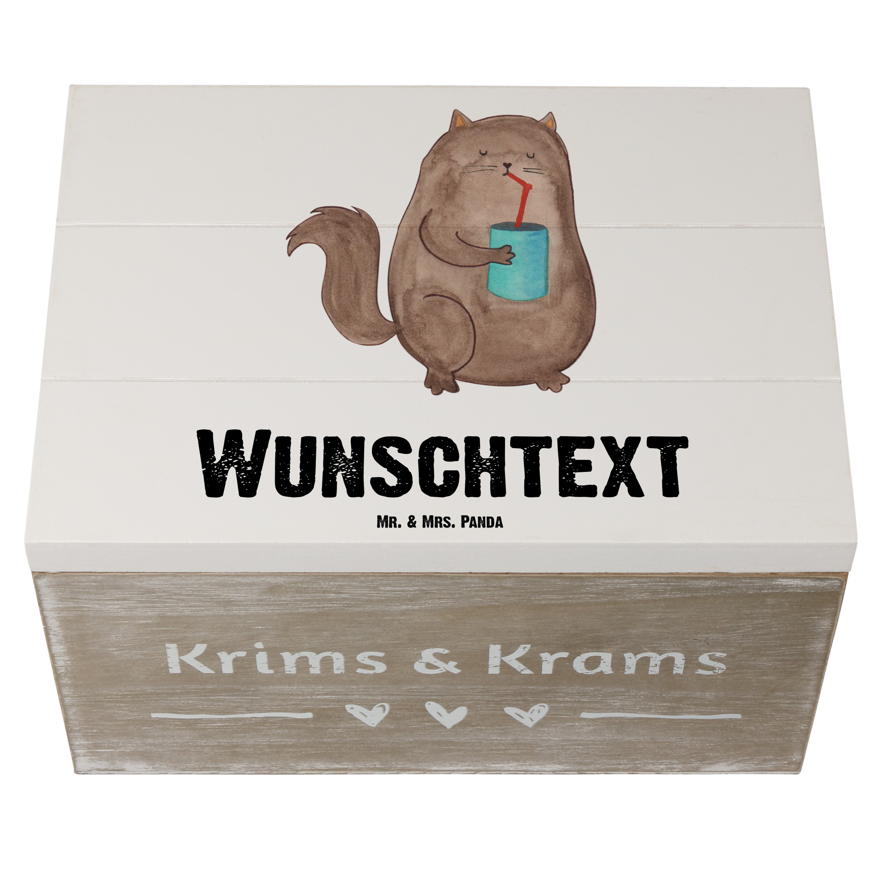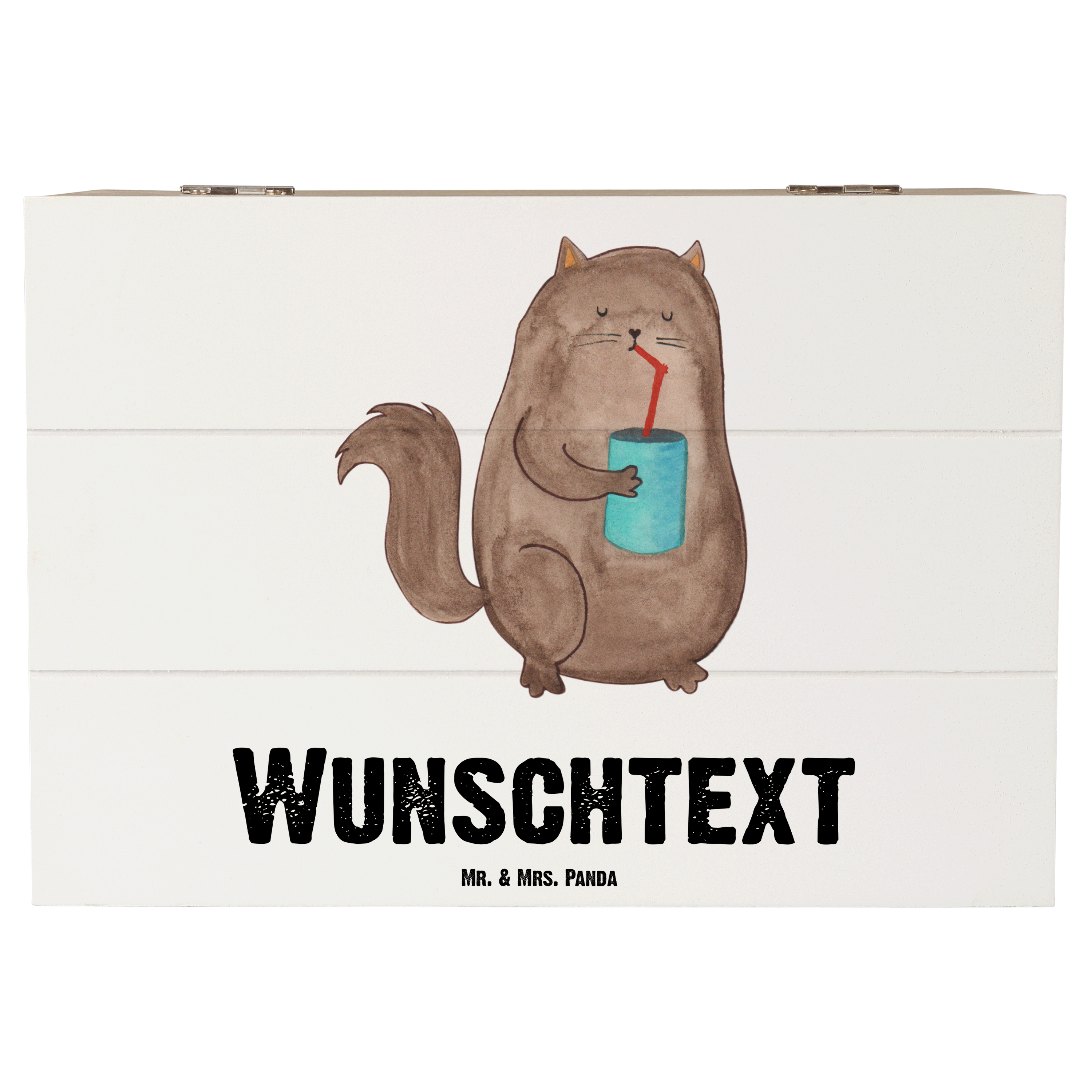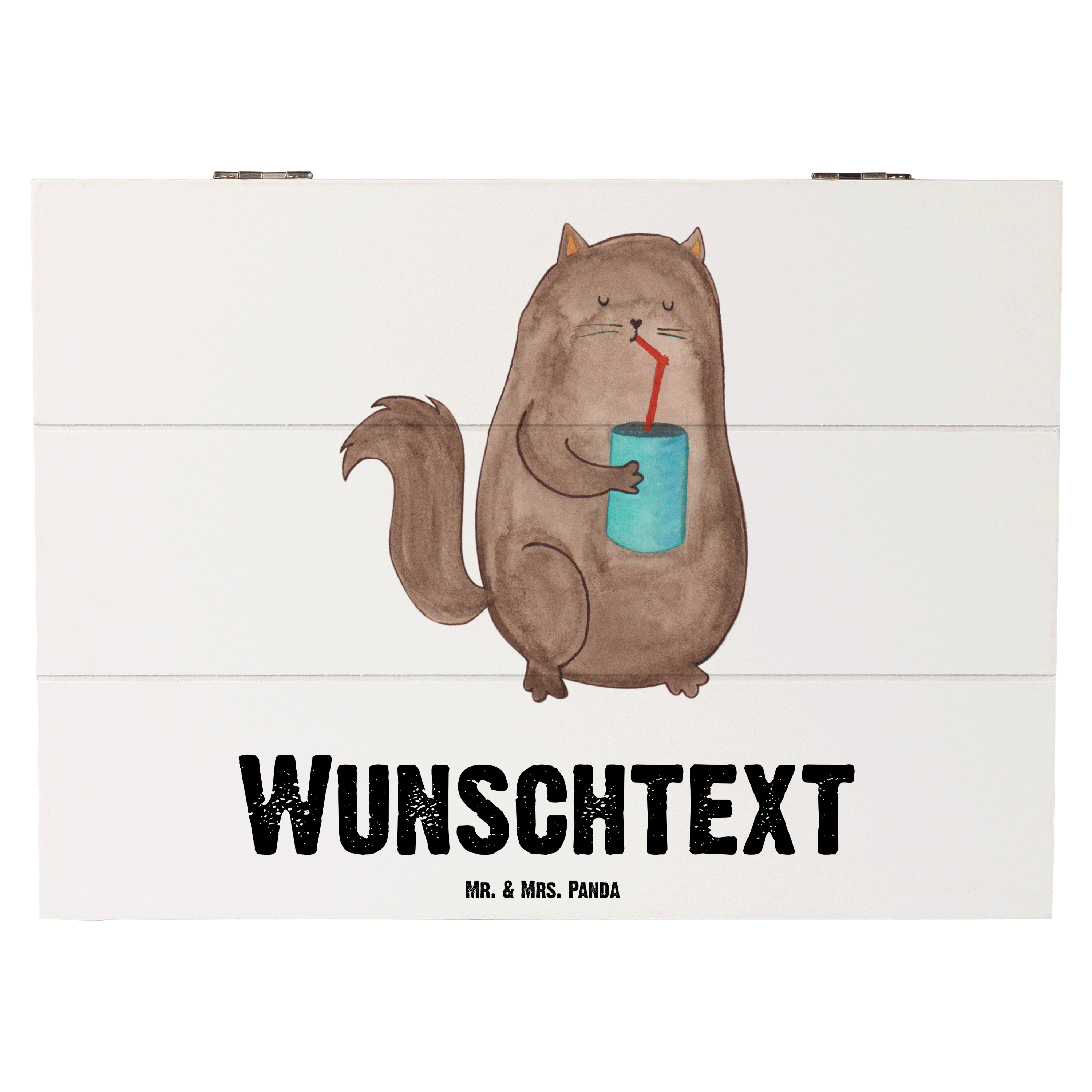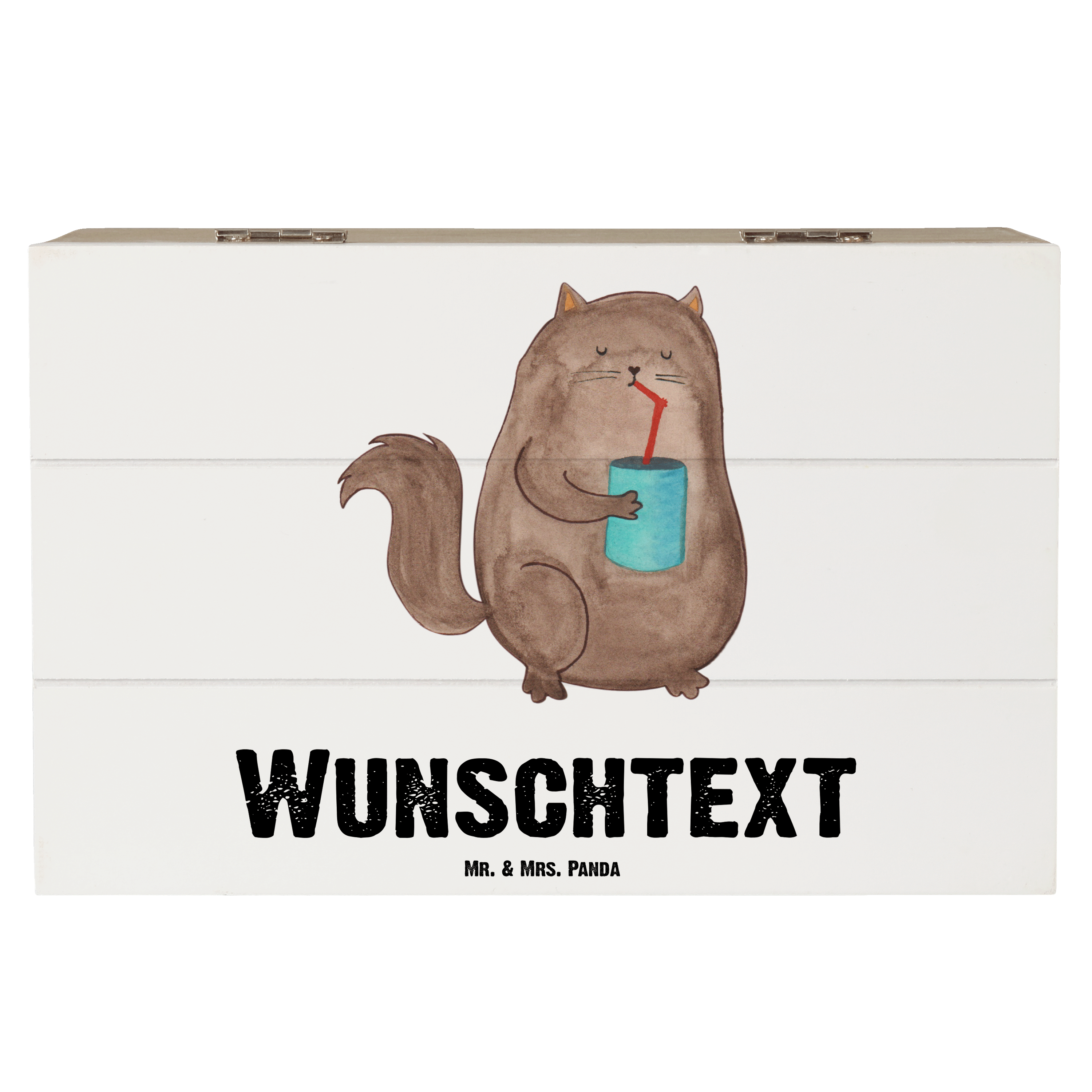 Personalisierte Holzkiste Katze Dose - Weiß - 19 x 12 cm