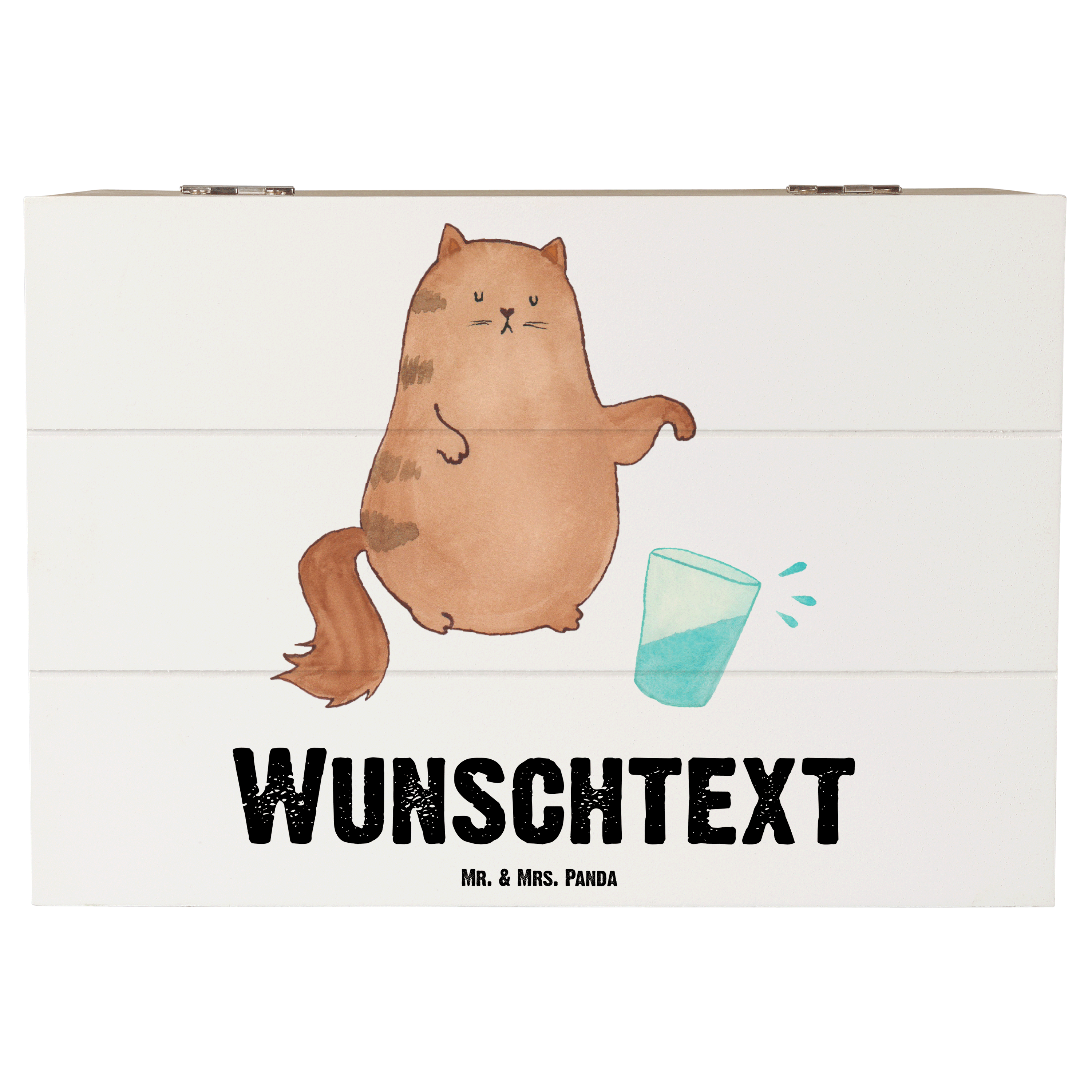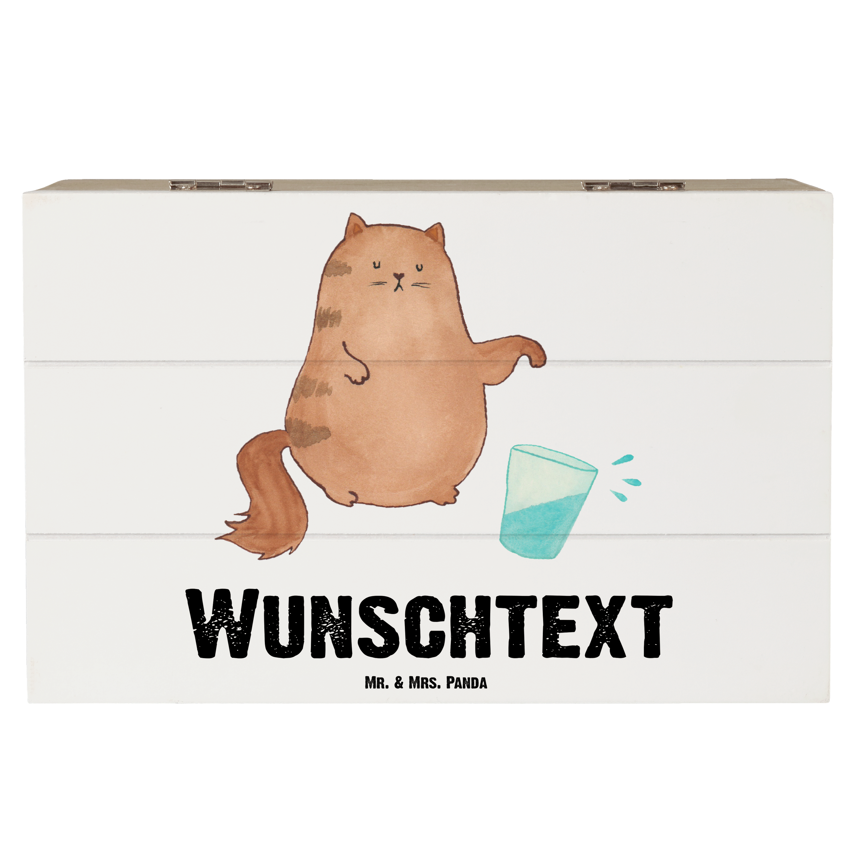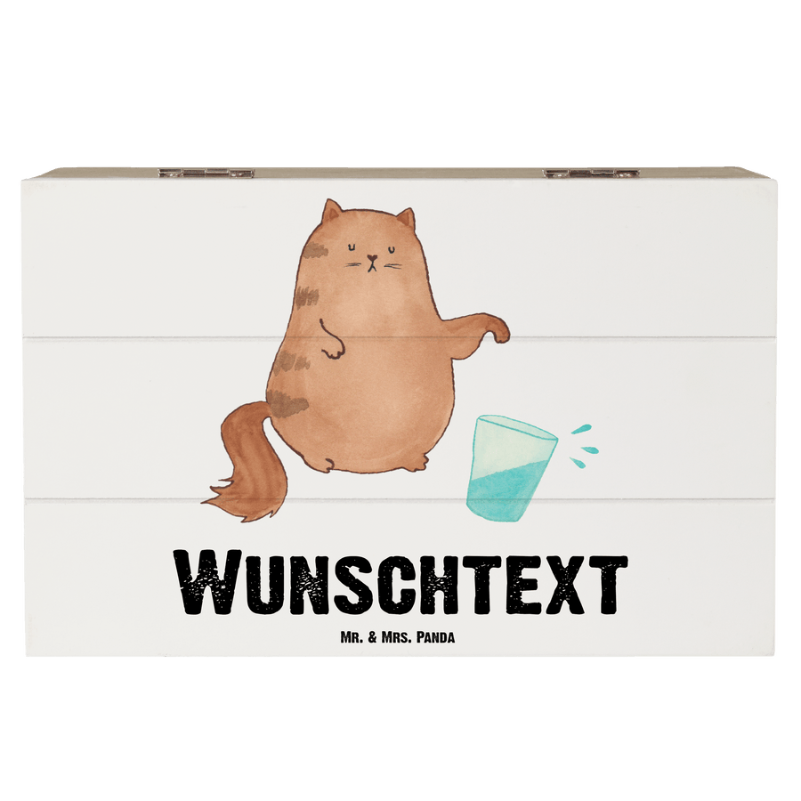 Personalisierte Holzkiste Katze Wasserglas - Weiß - 19 x 12 cm